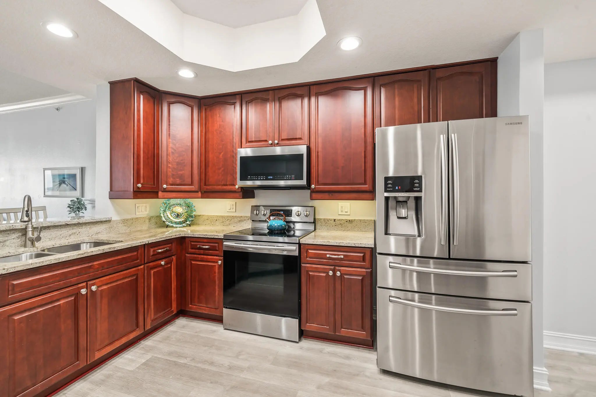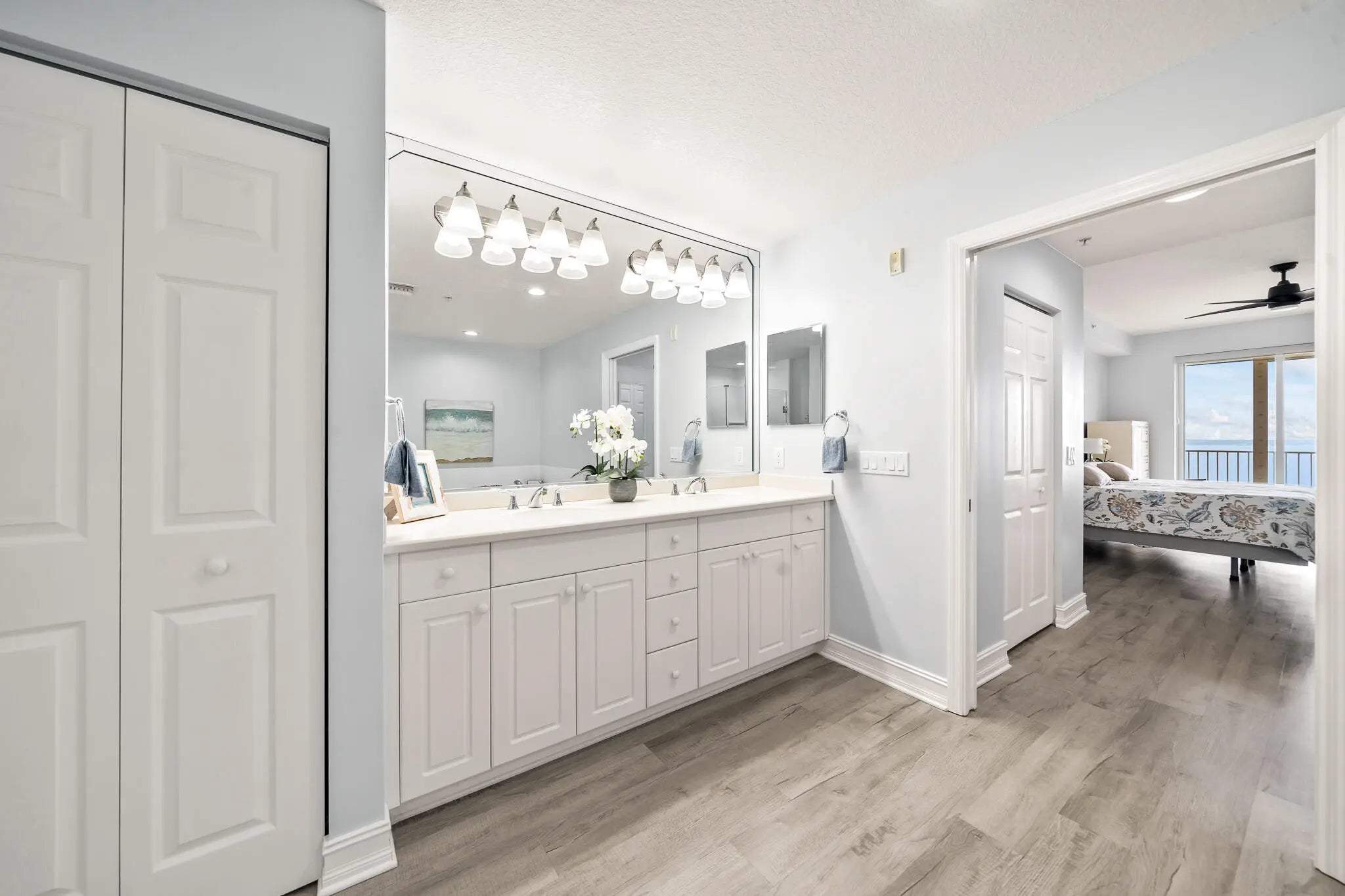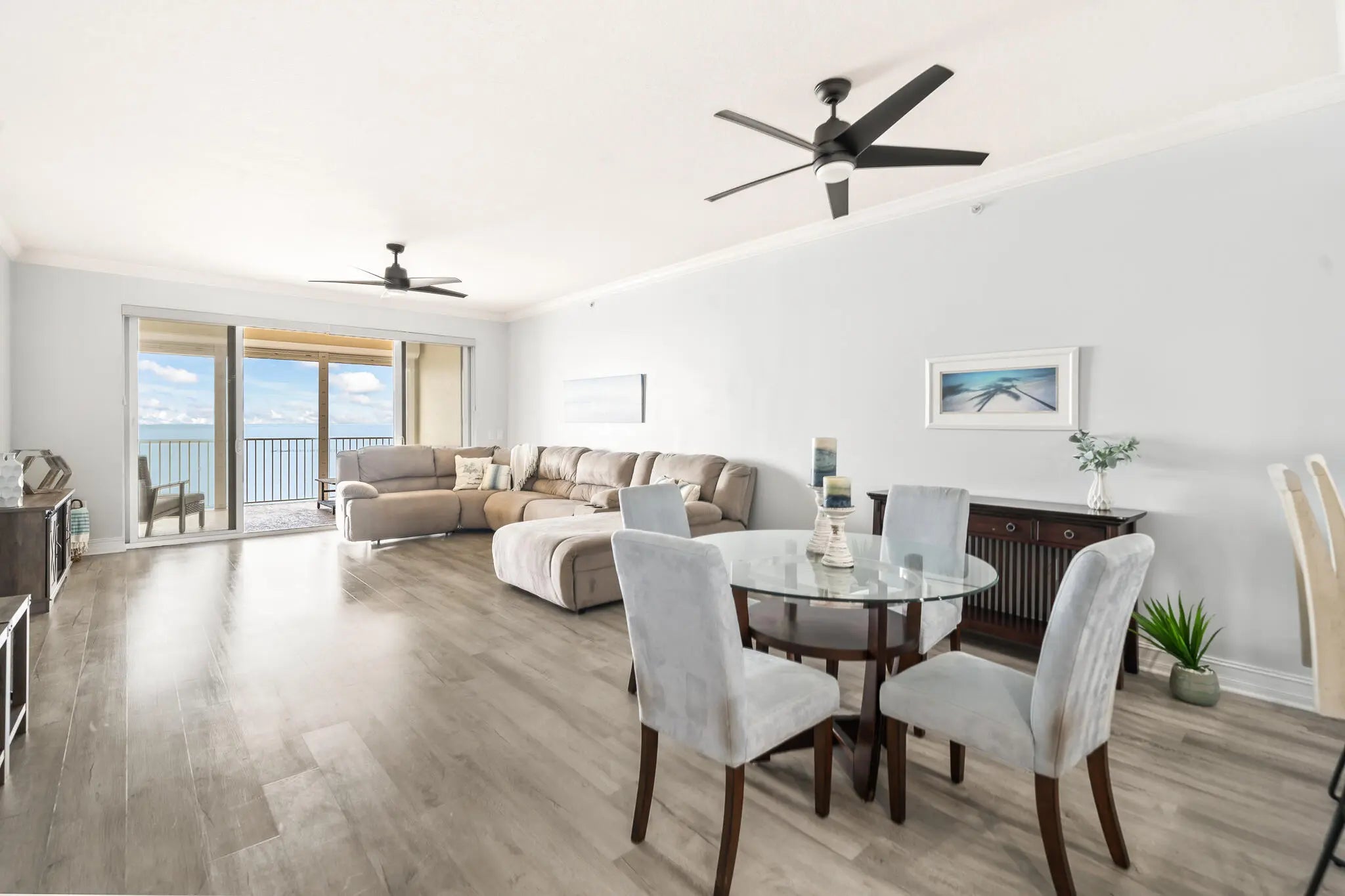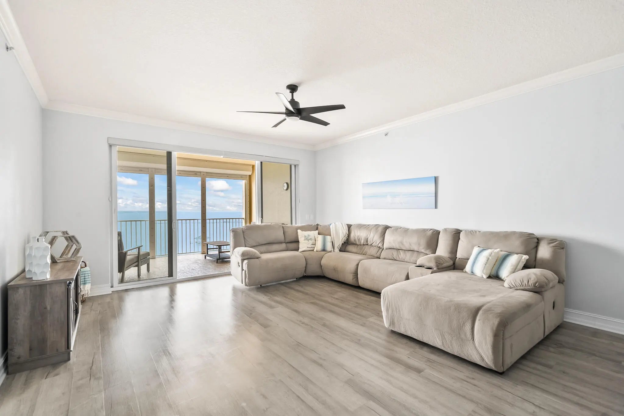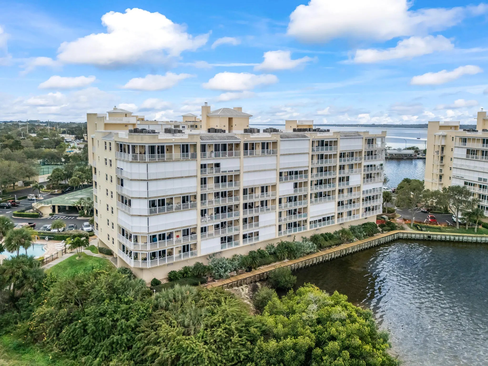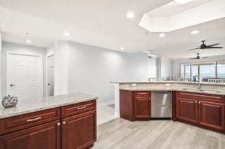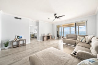 From the moment you step through the door, endless Intracoastal Waterway views unfold before you in this 3-bed 2-bath luxury penthouse on Florida's Space Coast. With over 2,000 sf, the open layout lives large. Updated interior with LVP flooring throughout and fresh designer paint is move-in ready. The kitchen offers 42'' cherry cabinetry, granite countertops, stainless appliances, and Fisher-Paykel dishwasher drawers. Deep covered balcony overlooks the Intracoastal--ideal for morning coffee, dolphin watching, or viewing rocket launches. Ample storage and a private one-car garage add convenience. Community amenities include two pools, fitness center, sauna, and tennis courts. Minutes to beaches, boating, waterfront dining, and shopping--come live the island life! sauna, tennis, and riverfront boardwalk. Mere minutes to beaches, oceanside and riverfront dining, and shopping. Come live the island life!