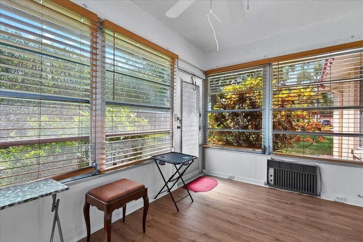 SELLER MOTIVATED!Move-In Ready! Spacious 1-Bedroom in Vibrant 55+ Community - Lake Worth, FL Don't miss this beautifully maintained and incredibly spacious 1-bedroom, 1-bath fully furnished, turn-key pet friendly villa located in the highly sought-after Covered Bridge community. This light-filled home features newer vinyl flooring throughout, a large open-concept living and dining area, and a glass-enclosed Florida room with a dedicated A/C—perfect for year-round enjoyment or seasonal living. Enjoy the ease of in-unit washer and dryer, a new roof, and assigned parking right in front of your unit for maximum convenience. This home is move-in ready and ideal for those seeking comfort, community, and convenience. Community Highlights:Resort-style clubhouse with 2 heated pools, Tennis, bocce, pickleball, shuffleboard courts, Billiards room, fitness center, library, and computer rooms, Walking and biking paths amid lush landscaping and scenic lakes, Pet-friendly and well-maintained Just a short drive to downtown Lake Worth with charming shops, dining, and the beach over the Intracoastal bridge! Whether you're looking for a full-time residence or a seasonal getaway, Covered Bridge offers it allwith a low-maintenance lifestyle and vibrant social atmosphere. Schedule your private showing today.
