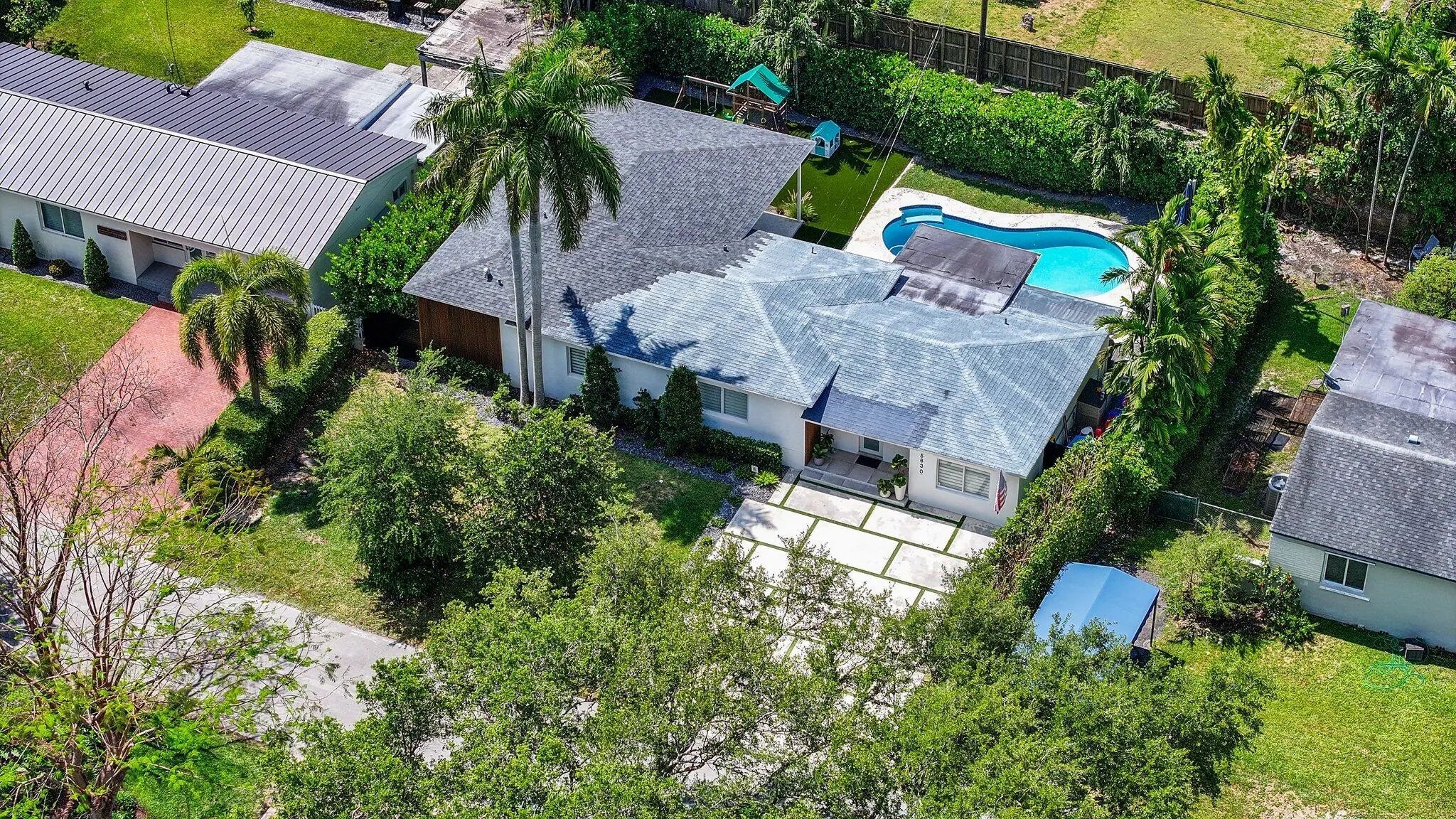 Welcome to your dream home in the highly sought-after Biltmore Heights community, perfectly situated at the crossroads of South Miami and Coral Gables! This stunningly renovated residence combines luxury, comfort, and everyday convenience in one of Miami's most desirable neighborhoods. Offering over 2,100 sq. ft. of living space, the home features 4 bedrooms, 3 bathrooms, plus a dedicated office—ideal for modern living. The split-bedroom layout provides both privacy and flow, creating a spacious yet functional design. Originally renovated in 2019 and expanded with a major addition in 2021, the property showcases meticulous attention to detail. Recent upgrades include a new roof and new A/C (2021), impact windows and doors for maximum storm protection, and a redesigned driveway (2020). Additional highlights include a whole-home interior and exterior sound system as well as a comprehensive security system, ensuring peace of mind and effortless living.