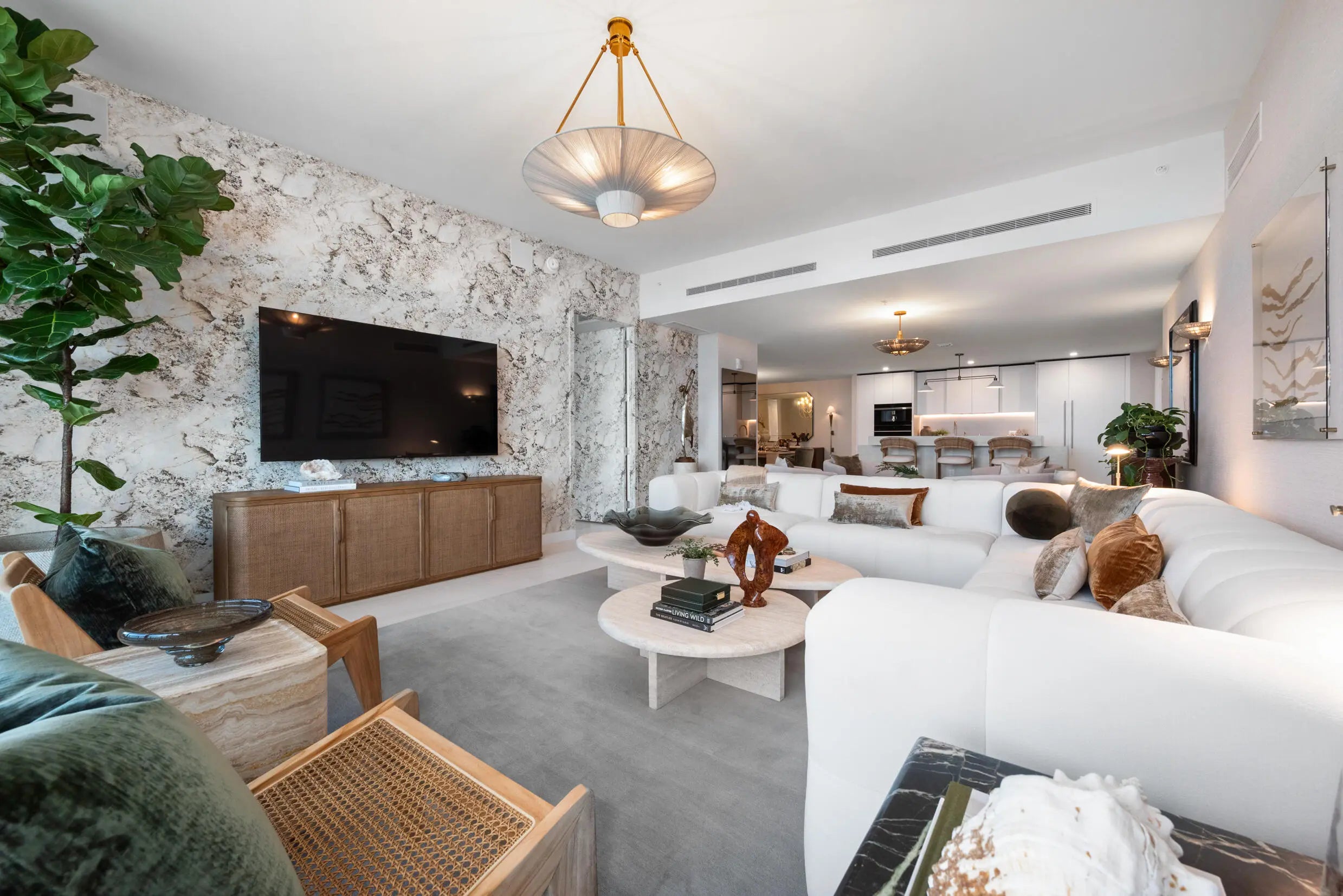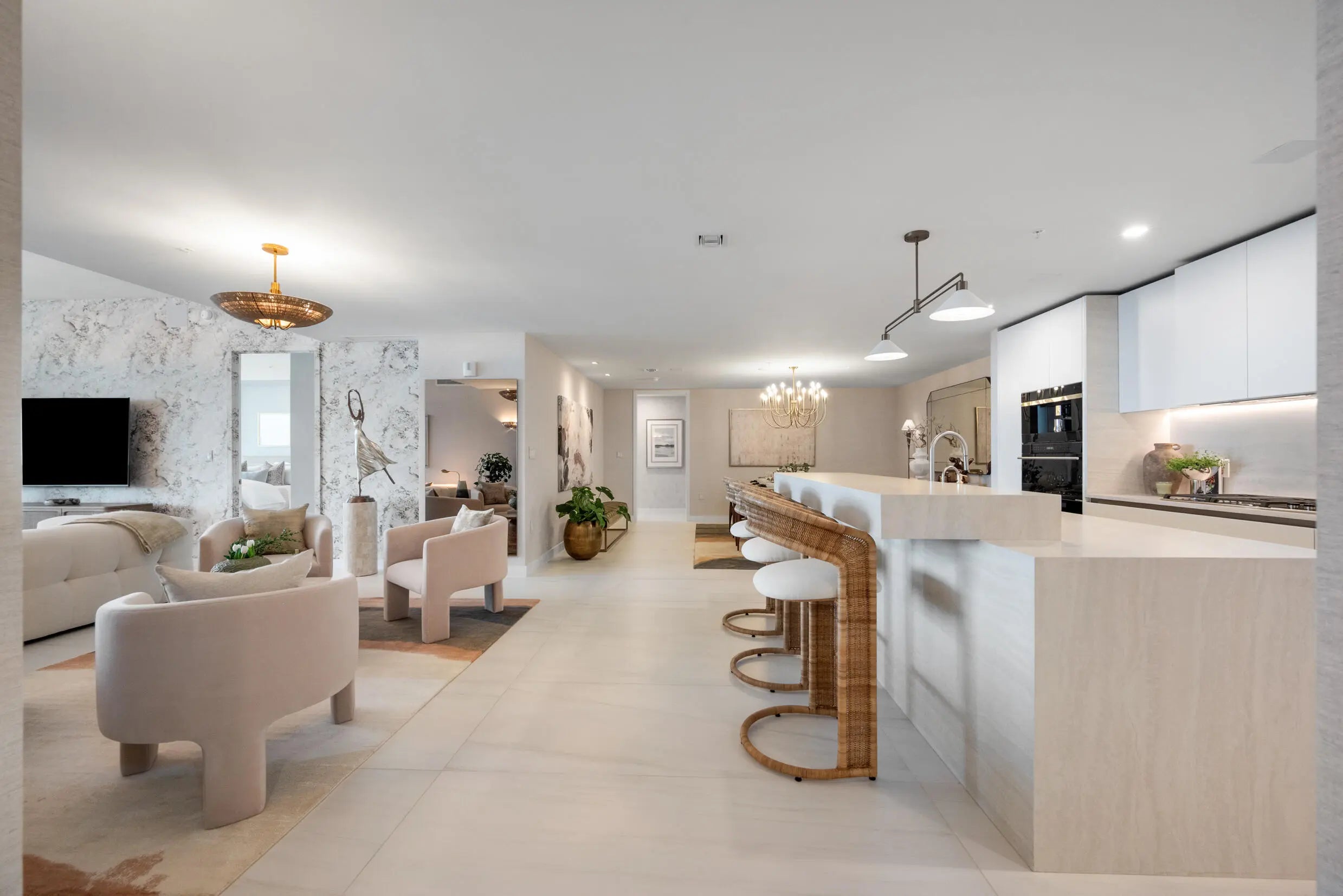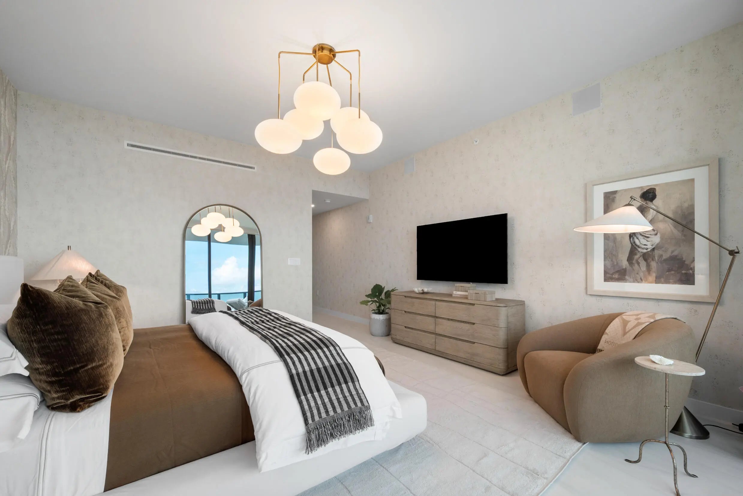 Welcome to this impeccable turnkey middle penthouse at Casamar, a rare opportunity to purchase a brand-new, never-before-lived-in residence in Pompano Beach's newest oceanfront development. This turnkey furnished 3-bedroom plus den, 3.5-bath home has been thoughtfully designed by a Brazilian designer, featuring hand-selected furnishings that blend modern coastal style with refined comfort. Situated directly on the sand, the residence offers breathtaking, unobstructed ocean views with a striking outlook toward the iconic Hillsboro Lighthouse. Floor-to-ceiling glass fills the home with natural light, while the expansive terrace—accessible from every bedroom—creates a private outdoor retreat ideal for sunrise mornings, sunset lounging, and effortless entertaining. The open-concept layout is enhanced by private elevator entry, a gourmet kitchen, designer closets, automatic window treatments with blackout shades, and a fully integrated Sonos home sound system. Additional conveniences include a 113-square-foot temperature-controlled storage unit located on the same floor and assigned self first-floor parking, ensuring both comfort and ease of living. Casamar offers a full suite of resort-style amenities, including an oceanfront pool with cabanas, state-of-the-art fitness center, spa treatment rooms, residents' lounge, wine room, club room, golf simulator, pickleball courts, 24/7 concierge and valet services, and direct beach access. Impeccably furnished and never lived in, this designer-curated penthouse is ideal for the discerning renter seeking a sophisticated beachfront home with unmatched views, brand-new interiors, and world-class amenities. Experience elevated coastal living in one of South Florida's most coveted new developments.