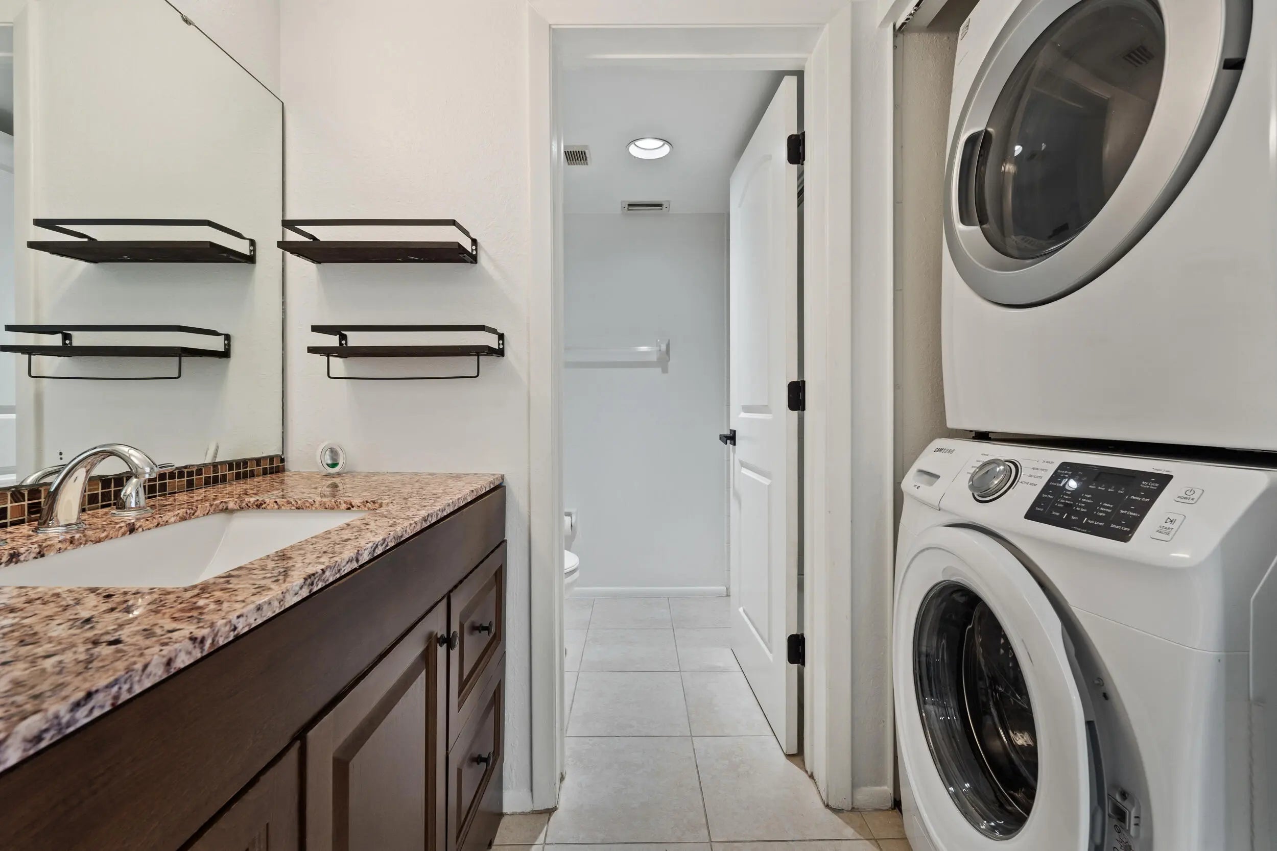 Welcome to this well-maintained 2-bedroom, 2-bath condo in the desirable Evergreen Condominiums of Port St. Lucie. This inviting unit features tile flooring throughout and an open, functional layout ideal for comfortable everyday living or seasonal enjoyment. The kitchen and bathrooms are appointed with attractive granite countertops, offering both style and durability. Enjoy the convenience of a full-size washer and dryer located inside the unit. Evergreen Condominiums provides a relaxed community lifestyle with two swimming pools, including one that is heated for year-round use. Centrally located near shopping, dining, medical facilities, and major roadways, this condo offers easy access to everything Port St. Lucie has to offer.