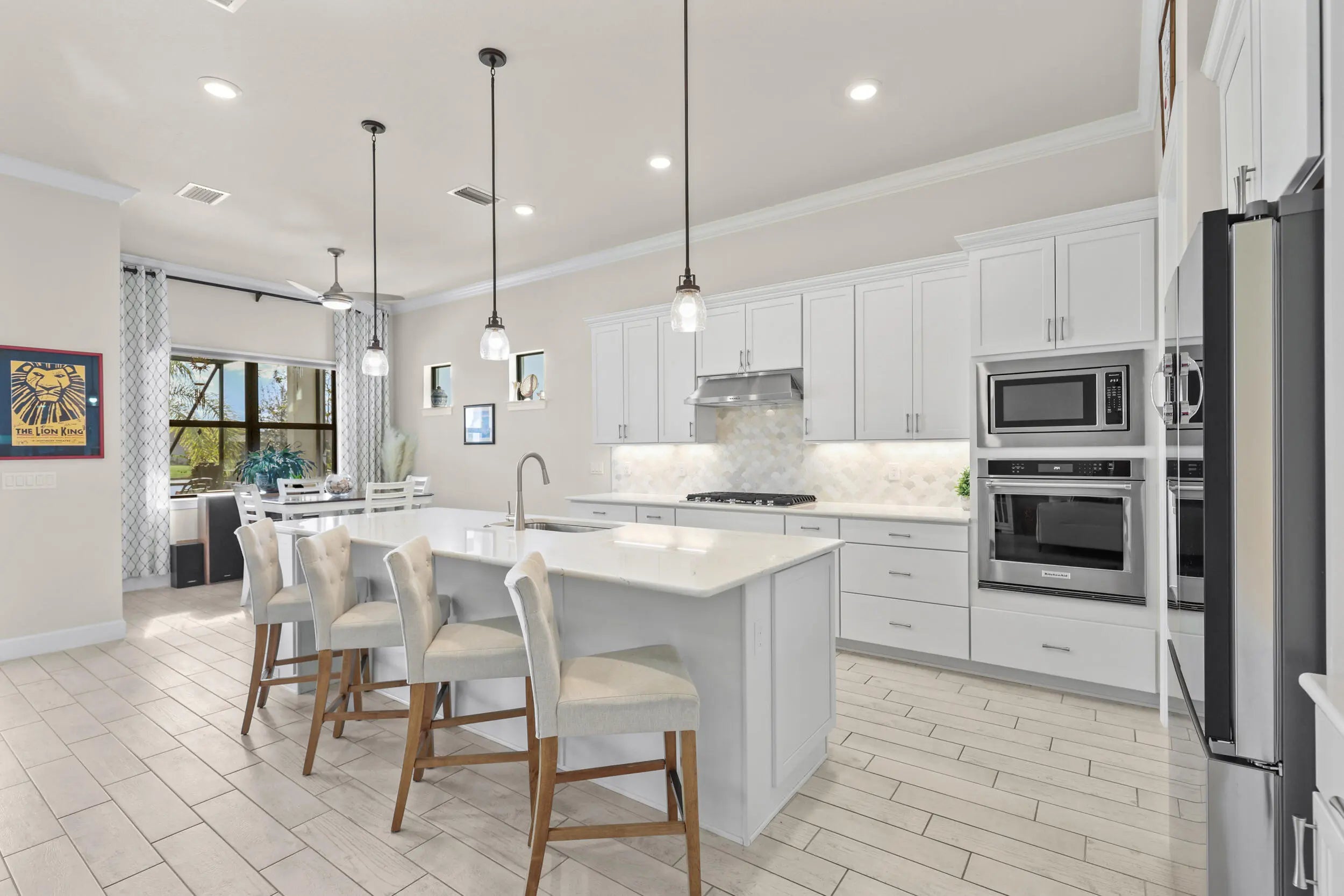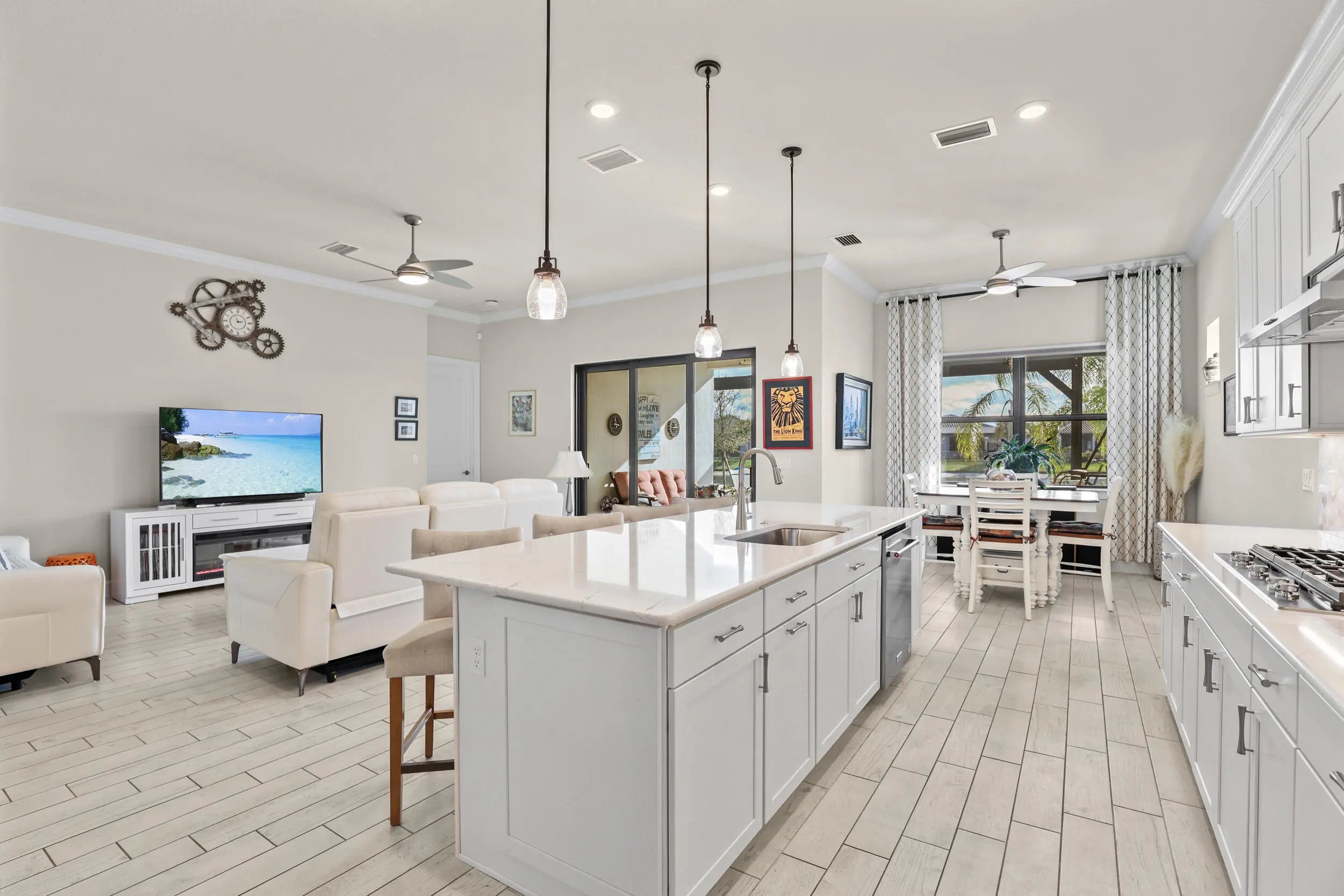 New. construction without the CDDs!!! Lakefront resort-style living in Veranda Gardens. This 2023-built 3-bedroom, 2-bath home with a 2-car garage offers an open-concept floor plan, impact windows throughout, and modern upgrades designed for everyday living. The gourmet kitchen features stainless KitchenAid appliances, a gas range, quartz countertops, upgraded cabinetry, designer backsplash, a large center island, and pantry. The primary suite includes a spacious ensuite with walk-in shower and bench, dual sinks, two oversized walk-in closets, and a linen closet. A well-appointed laundry room includes washer, dryer, cabinetry, and utility sink. Step outside to a covered patio and additional screened, cage-enclosed lanai overlooking a peaceful lake with sunset views. Veranda Gardens is a gated, amenity-rich community offering lawn maintenance, a clubroom, resort-style pool, lap pool, fitness center, tennis, pickleball, bocce, basketball courts, dog park, and playground. Ideally located in South Port St. Lucie with easy access to major highways, the Florida Turnpike, Palm City, Stuart, beaches, shopping, dining, and Palm Beach County. A move-in-ready lakefront home built in 2023 with resort amenities and commuter-friendly access.