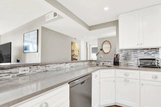 Come live in this beautiful 4th-floor corner unit on the north side of the building, offering desirable north-facing views and abundant natural light. Step out onto the balcony and take in beautiful ocean views. This spacious 2-bedroom, 2-bathroom condo has been updated throughout and features impact windows and sliding glass doors, a large open kitchen ideal for entertaining, and tastefully renovated bathrooms. The guest bathroom includes a walk-in shower, and both bedrooms are generously sized with professionally redesigned closets. Additional highlights include a washer and dryer in the unit and the convenience of being offered fully furnished. No detail has been overlooked—this move-in-ready residence delivers quality, functionality, and elegance in every space.