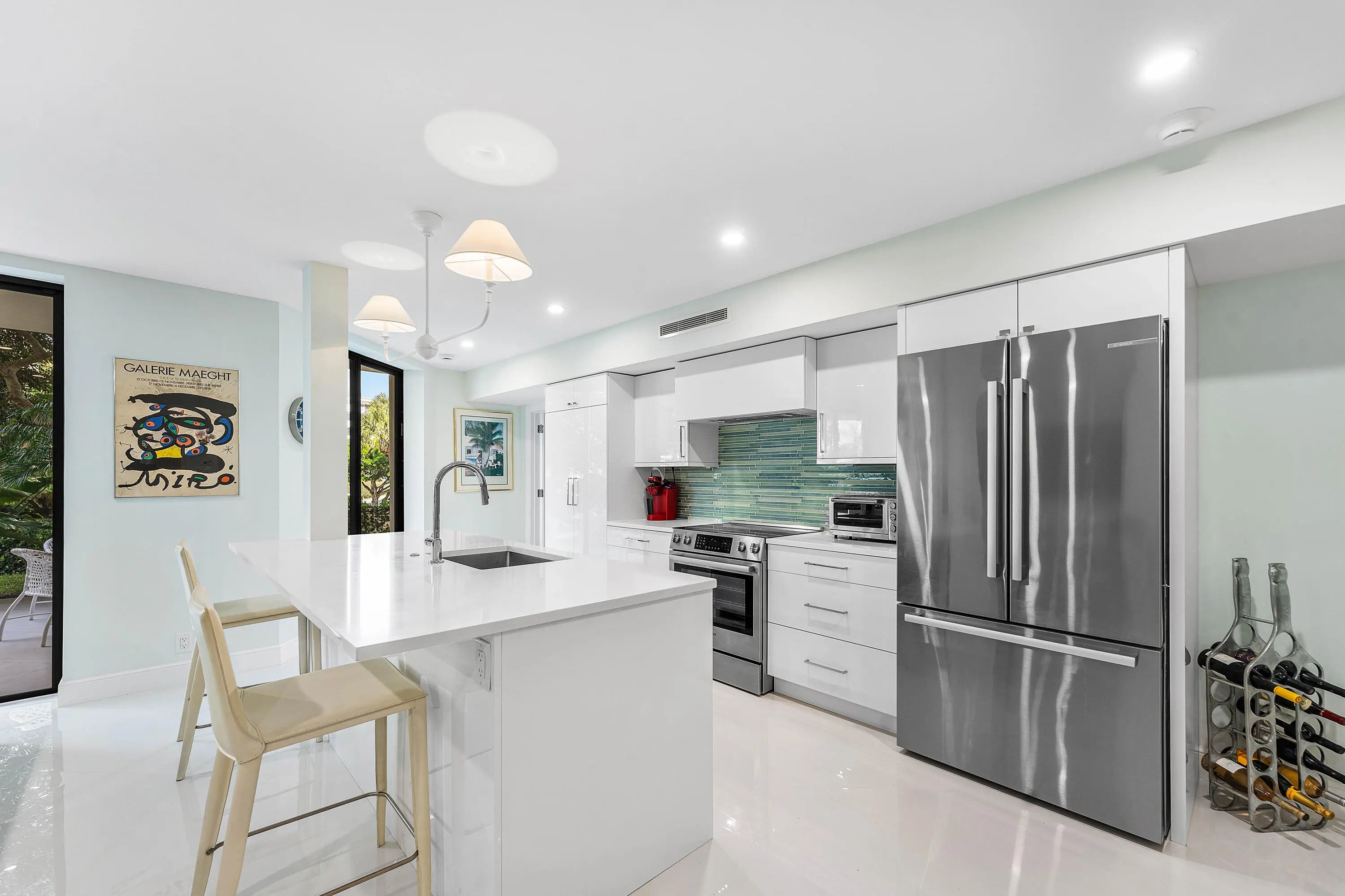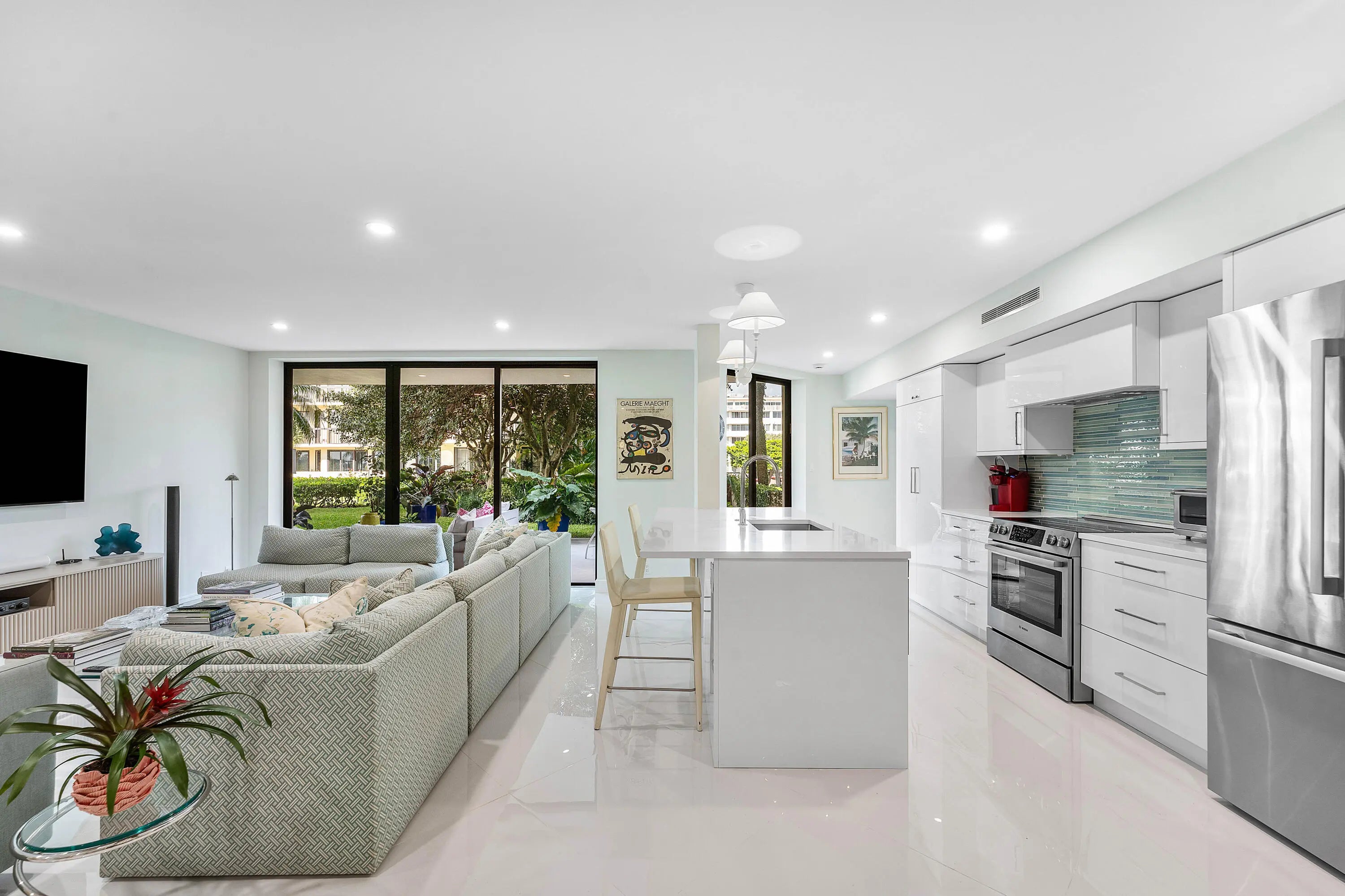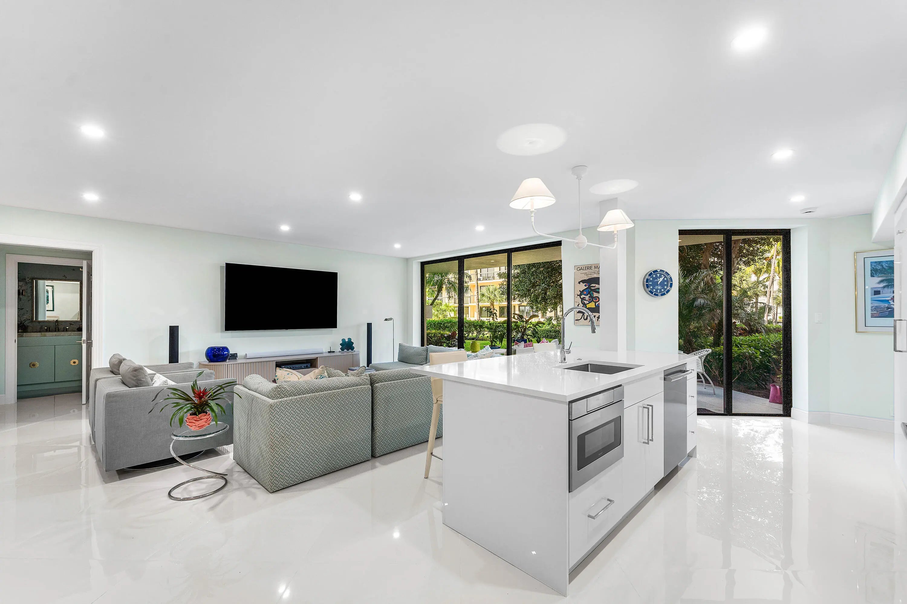Exceptional coastal living in this spacious, redesigned 2BR/2BA residence with a large lanai offering tranquil Intracoastal and garden views. Renovated to the highest standards, floor-to-ceiling sliders in every room create a seamless indoor-outdoor lifestyle perfect for relaxing or watching the boats go by. Designed in crisp white and neutral tones, the chef's kitchen features top-of-the-line appliances and opens to the great room, ideal for entertaining. The expansive primary suite offers spa-like luxury with a beautifully appointed bath and custom walk-in closets. Sutton Place is a highly desirable full-service building with a doorman, deeded beach access, fitness center, waterfront pool, and community room, located near Palm Beach Par 3 Golf, the Tennis Center, and five-star hotels.