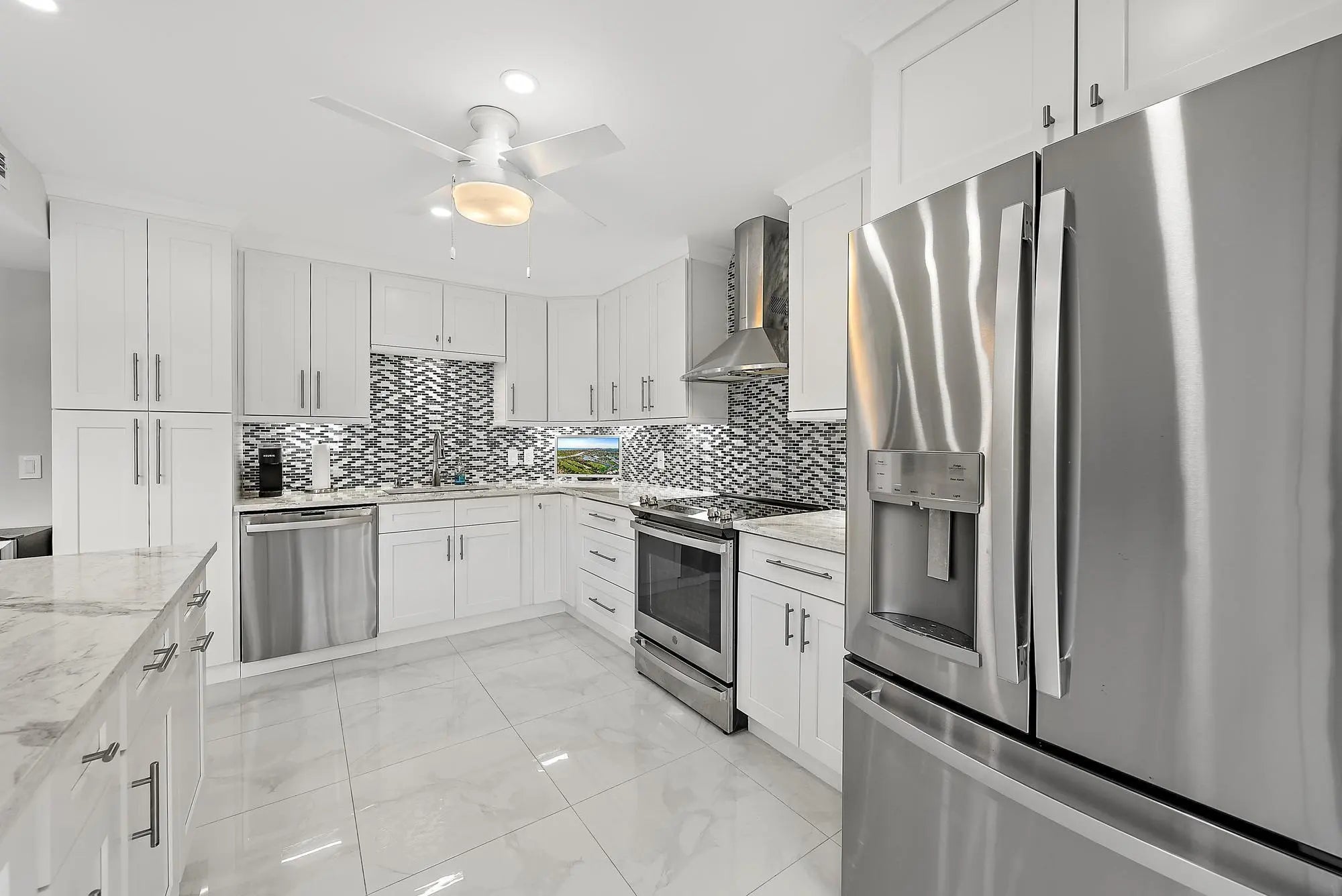 Desirable 1st floor 3-bedroom, 2-bath residence with tranquil golf, garden, & pool views. Completely renovated down to the studs--new plumbing, electrical, walls, flooring, and custom solid wood millwork-- true move-in-ready peace of mind. Full impact windows (2025). The light-filled interior features shiplap ceilings in main living areas, shaker-style cabinetry in kitchen and baths, quartz countertops, & high-end appliances. Additional upgrades include Lutron dimmable recessed lighting, ceiling fans throughout, a walk-in primary closet, A/C with mold-preventative UV light, & an extended courtyard! Offered fully furnished & turnkey, with a one-year home warranty included. Enjoy world-class golf, dining, & an active social lifestyle at The Club at Quail Ridge. Immediate enjoyment awaits
