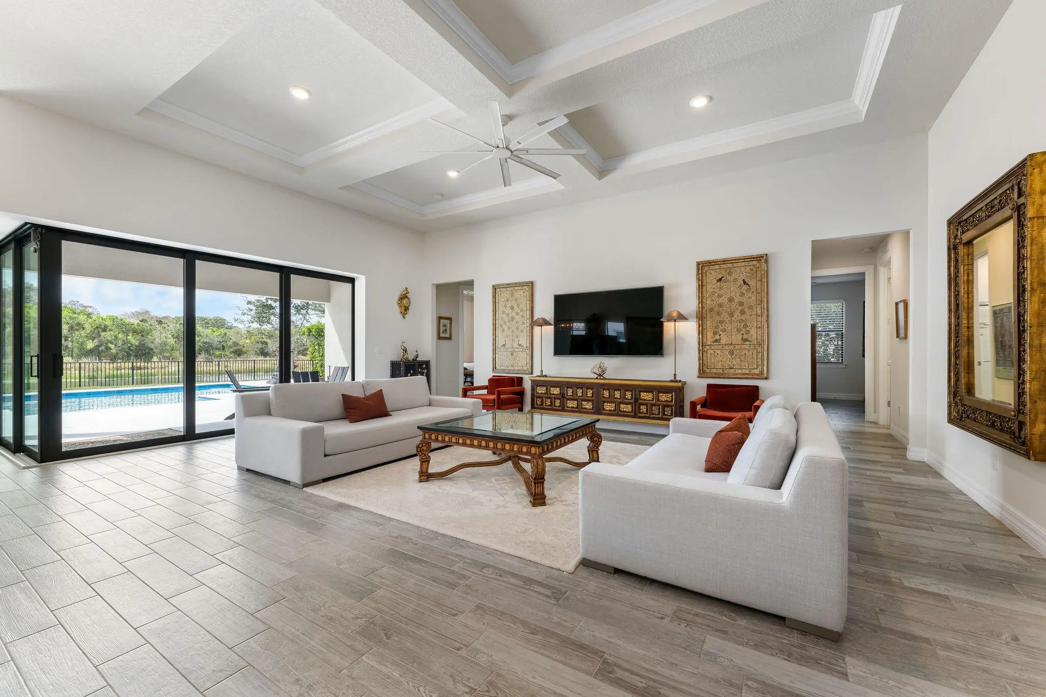 Nestled within the gated community of Sonoma Isles, this DiVosta-built, single-story residence is tucked away in a quiet corner of the neighborhood, offering exceptional privacy and breathtaking lake and sunset views. Ideally located just minutes from Jupiter's finest beaches, championship golf courses, upscale dining, shopping, and major airports. This impeccably maintained Pinnacle model offers a thoughtfully designed floor plan with a neutral color palette to fit any decor, featuring three bedrooms, three bathrooms, and a versatile flex space with glass French doors - perfect for a home office, den, or creative studio. Designed for effortless living and entertaining, the bright open-concept layout highlights a spacious gourmet kitchen with upgraded cabinetry, an expansive center island, adjacent dining area, and a large pantry. Additional features include porcelain tile flooring throughout, custom closets, hurricane-impact windows and doors, zero-corner sliding glass doors, and a climate controlled oversized garage with ample storage space. Step outside to your private outdoor oasis and embrace true Florida living. Enjoy serene lake views and spectacular sunsets from the newly installed saltwater pool, ideally positioned in one of the most peaceful locations within the community. Lush tropical landscaping enhances privacy, creating a relaxing retreat ideal for year-round living or as a second home. Sonoma Isles offers resort-style amenities including a clubhouse, fitness center, lap pool, spa, fire pit, tennis and pickleball courts, tot lot, and scenic walking paths. Residents also have the option to purchase a social or other memberships at Jupiter Country Club, located just steps away from the community entrance. Schedule your private tour today to experience this exceptional property firsthand. See Video Tour.