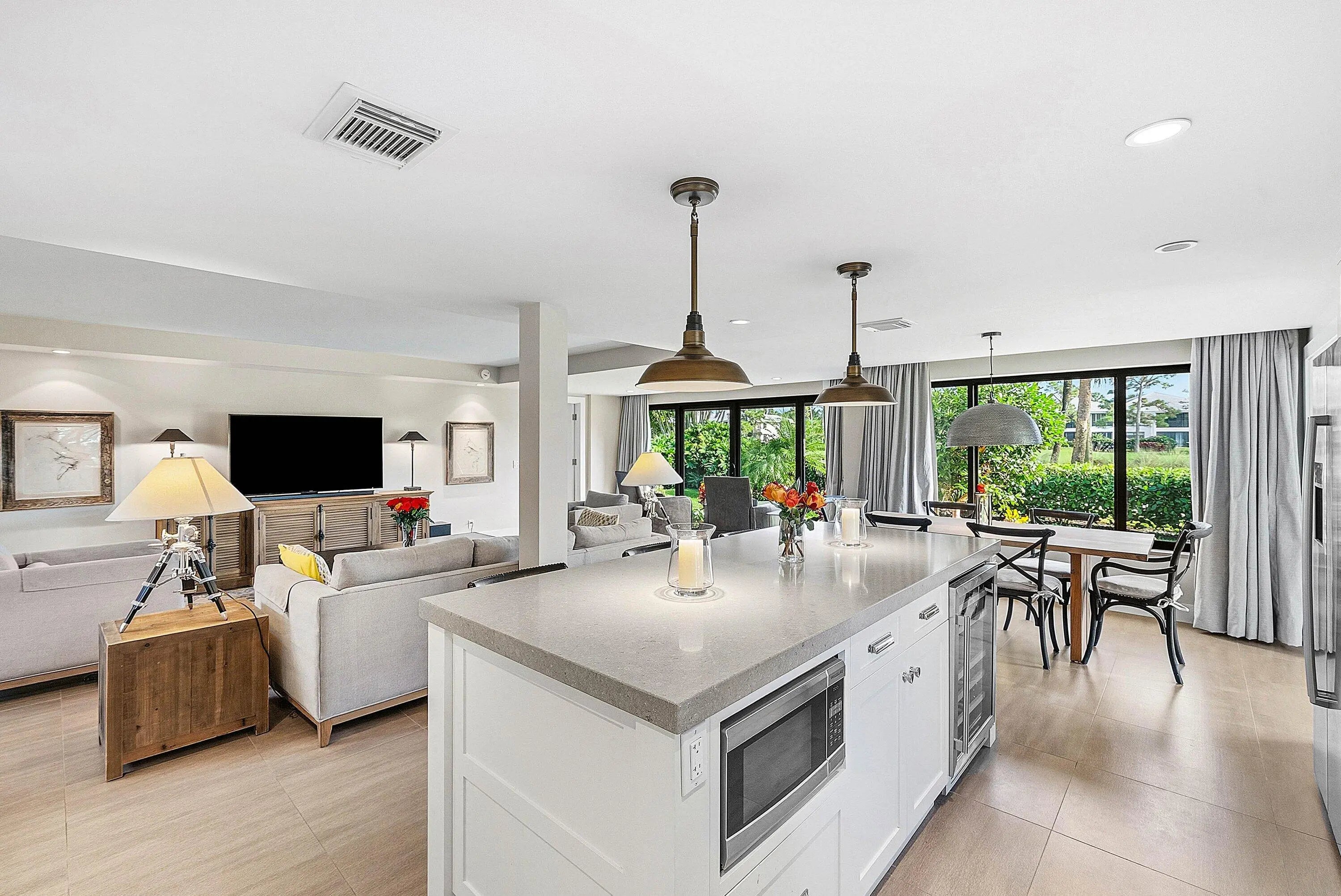 Elegant, completely renovated ground-floor residence located in the desirable Egret area of Quail Ridge. An open front patio with sliding glass doors creates seamless indoor-outdoor living. Impact glass throughout and wood-look tile flooring provide both style and peace of mind. The open-concept kitchen features a center island ideal for entertaining. The primary suite offers a spa-inspired bath with a deep soaking tub. Serene golf course views complete this exceptional retreat. Furnishings negotiable. Enjoy access to world-class amenities including two championship golf courses, racquet sports center, fitness center and spa, and a clubhouse offering fine dining and more. Quail Ridge is a mandatory membership, private club community.