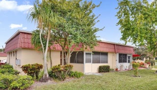 Desirable corner unit villa with 2 bedrooms and 2 full bathrooms is located in the 55+ community of Covered Bridge. Spacious eat-in kitchen has loads of cabinets and counter space along with a passthrough to the dining area. Being a corner unit, there are additional windows allowing for more natural light. The en-suite primary bedroom features a full shower and plenty of closet space.The guest bathroom features a bathtub and shower combo. Enjoy an enclosed patio that leads to the backyard area and additional guest parking. Covered Bridge is a pet friendly, active adult community with an abundance of clubhouse and outdoor amenities as follows: 2 large pools, tennis/pickleball courts, fitness center, shuffleboard, bocce ball, card room, library, auditorium, workshop, outdoor picnic area... ...picnic area and much, much more. Conveniently located near many shopping venues, restaurants and is only minutes to PBIA, Florida's Turnpike and everything the Palm Beaches has to offer.