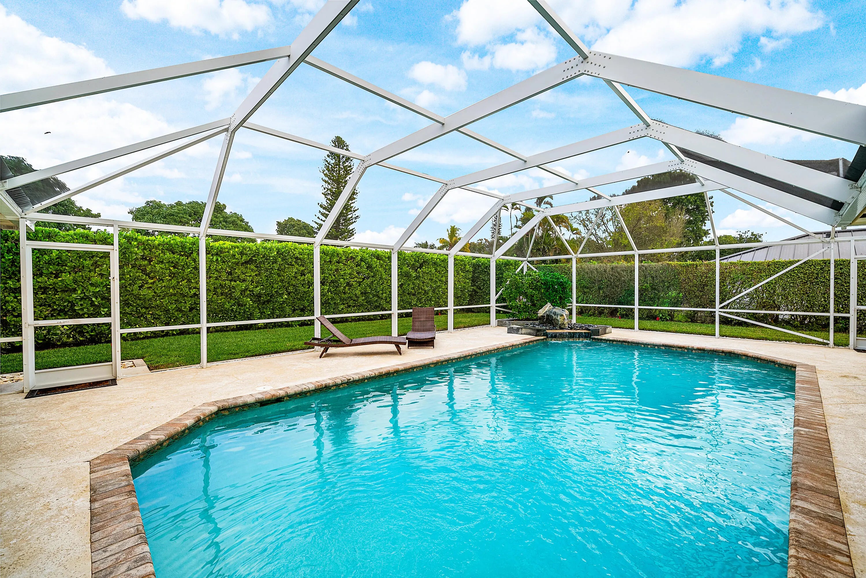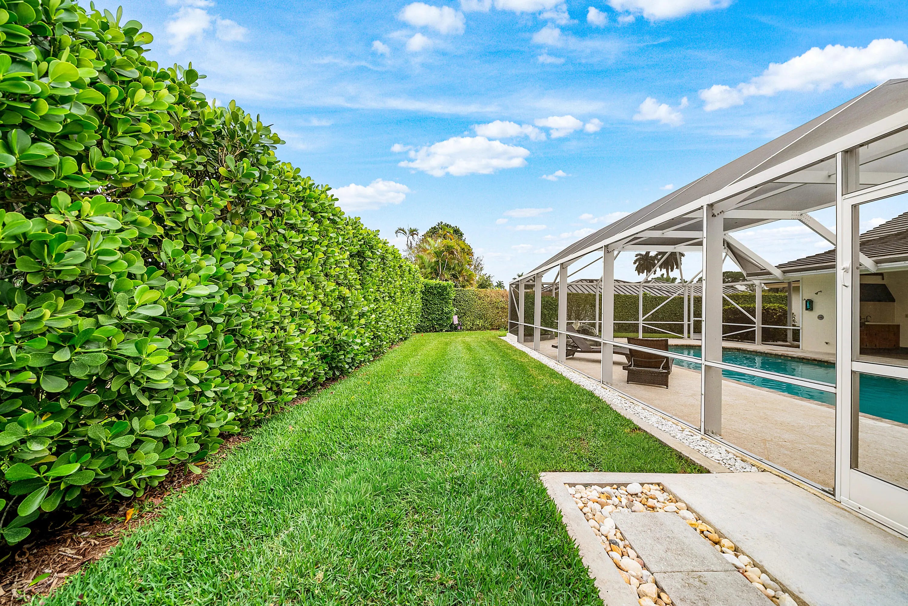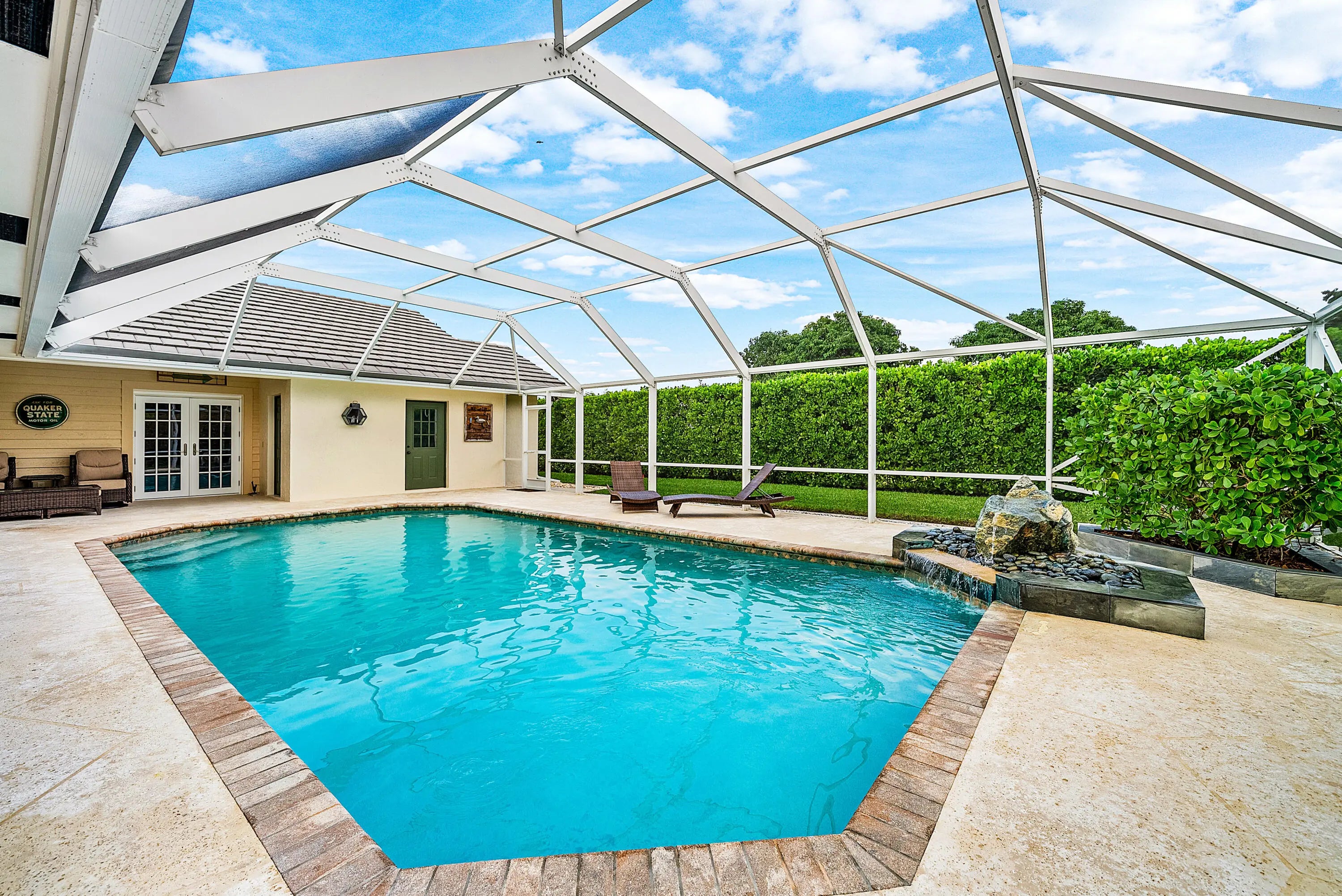 Welcome to 420 Muirfield Drive, a charming 3-bed, 3-bath + den single-family home located within the non-HOA, guard-gated City of Atlantis. Offering nearly 2,900 square feet of living space and expansive one-third-acre lot, this home is sited on a quiet cul-de-sac and features an oversized driveway, lush mature landscaping, and exceptional privacy. Designed for effortless South Florida living, the outdoor space is a true retreat— highlighted by a large private pool, summer kitchen, built-in sauna, and multiple areas for al fresco dining beneath a covered overhang. The property offers outstanding egress, with access to the backyard from nearly every area of the home. Fully retractable sliders from the main living and dining rooms, along with French doors from the primary suite, seamlessly connect indoor and outdoor living and lead to a tranquil rock waterfall and outdoor shower. Inside, the home features oversized bedrooms, abundant storage and closet space, an indoor laundry room, and an oversized two-car garage plus a dedicated golf cart garage. Thoughtfully laid out and impeccably positioned, this residence is ready for its new and proud owner. A must see! Nestled in the heart of Palm Beach County, the City of Atlantis is a unique, non-mandatory country club, gated community renowned for its quiet elegance, safety, and resort-style lifestyle. At the center of it all is The Lost City Golf Club - a private, 27-hole championship course known for its pristine fairways and welcoming yet refined atmosphere. Home to fewer than 2,500 residents, Atlantis is cherished for its privacy, lush landscaping, and two golf courses that wind gracefully through the community, offering rolling greens, shimmering lakes, and mature trees. A rare gem in South Florida, the City of Atlantis offers the perfect blend of exclusivity, natural beauty, and convenience.