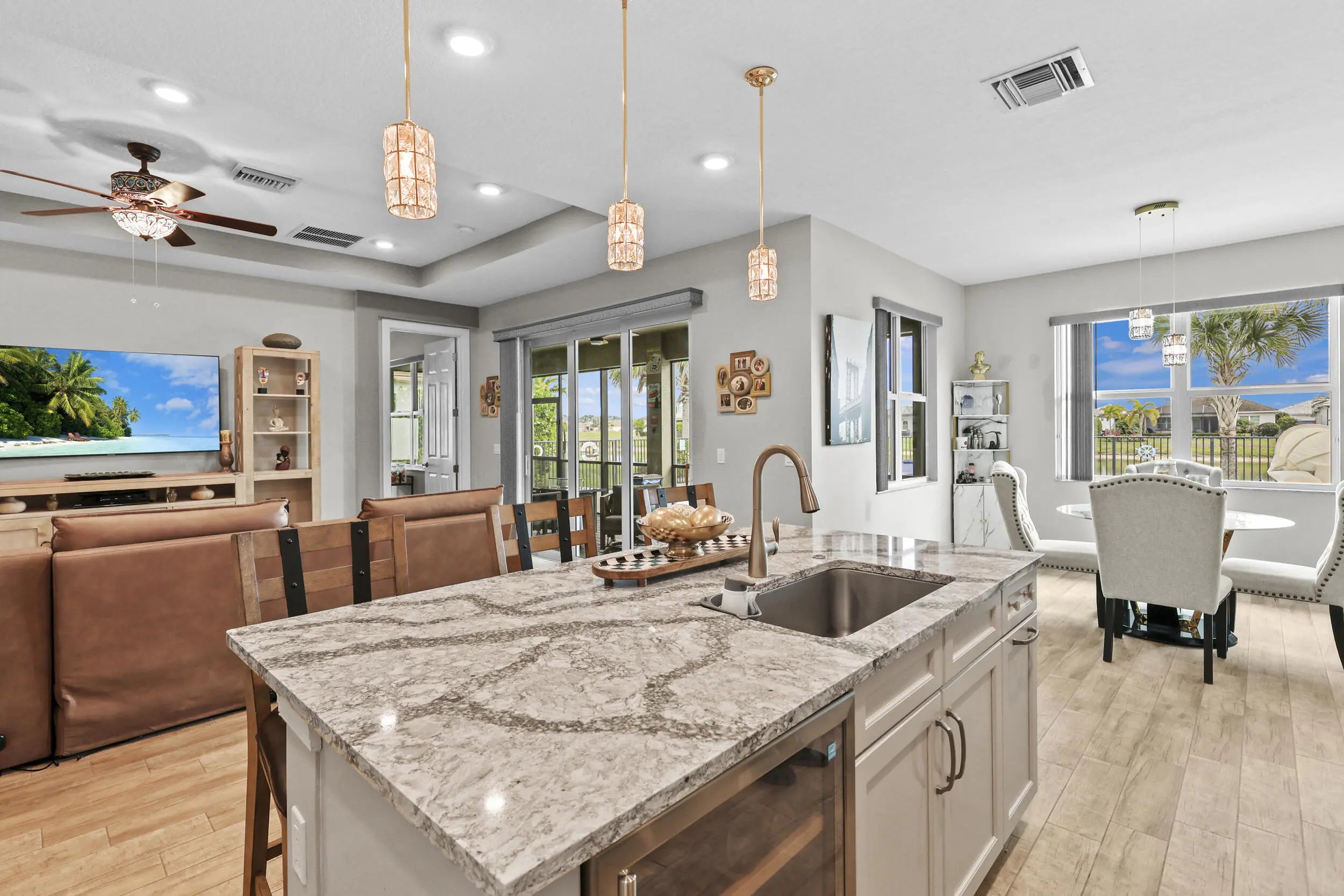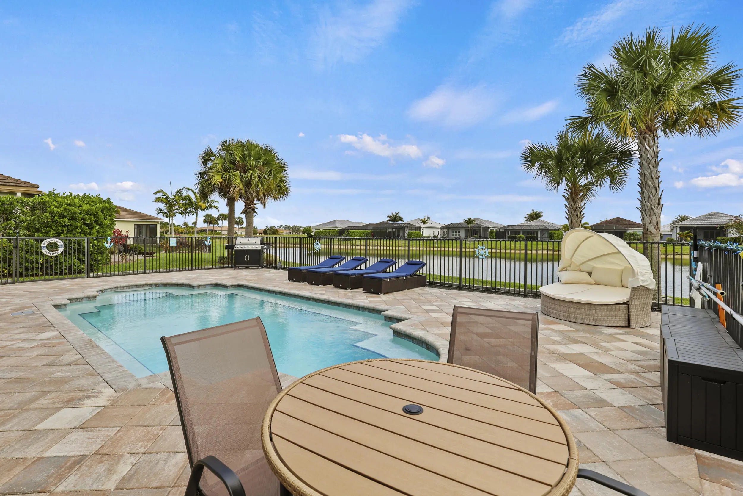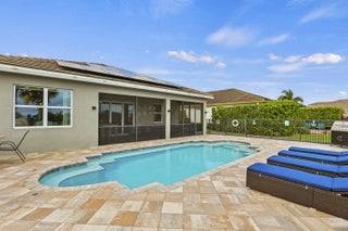 Stunning 2019 Kolter Homes residence featuring the desirable Conner model in the highly sought-after PGA Village Verano community. This well-maintained 2 bed / 2 bath + flex room home offers 1,731 sq ft of open living space with tile roof and a premium waterfront lot showcasing serene lake views. Enjoy true Florida living with a private heated pool and solar panels for added energy efficiency. The functional floor plan provides excellent flow for everyday living and entertaining. Located in a gated, resort-style community with access to pools, fitness centers, tennis, pickleball, and more. A rare opportunity for waterfront living.