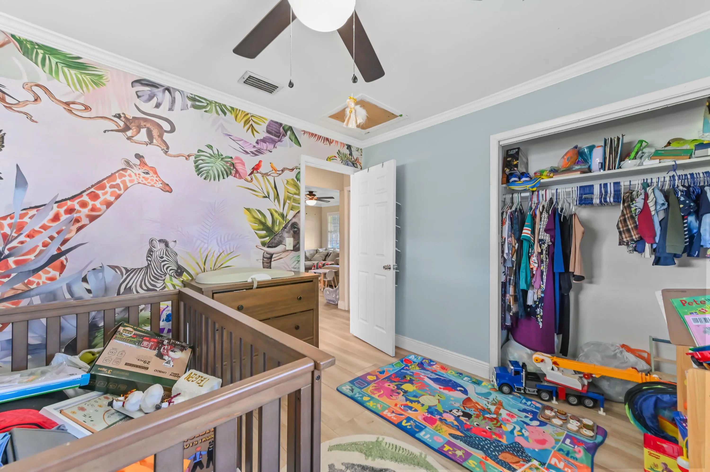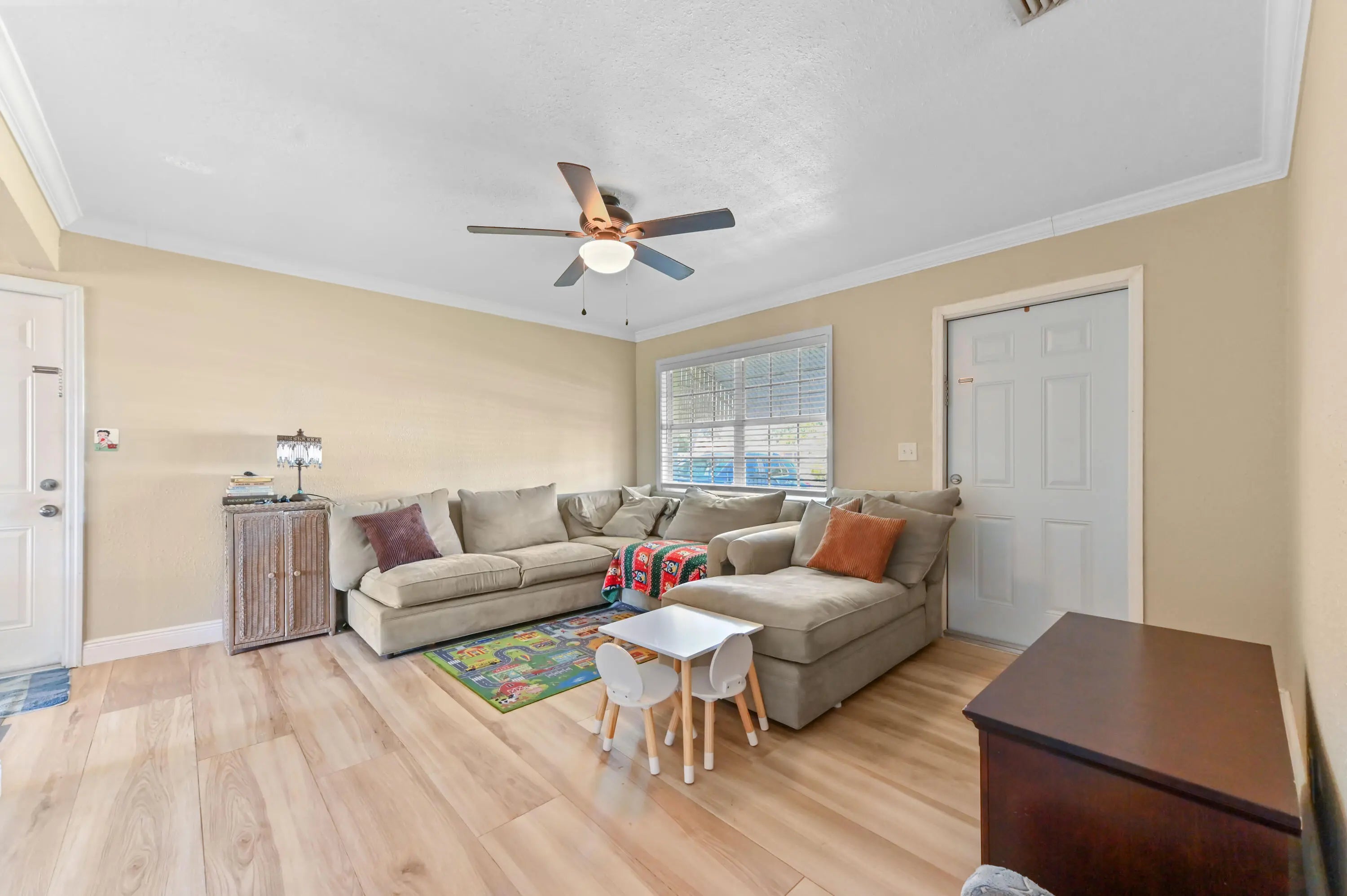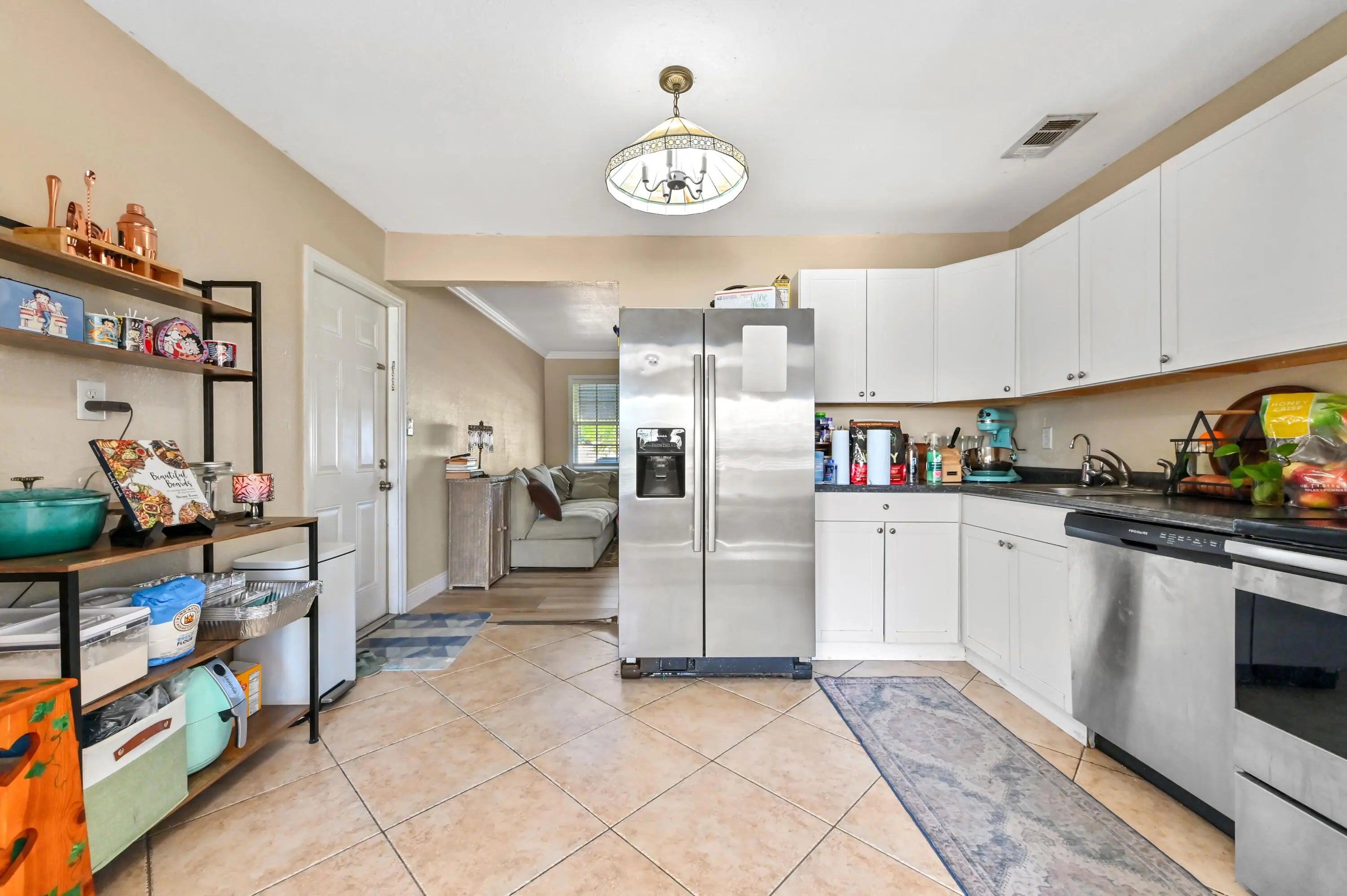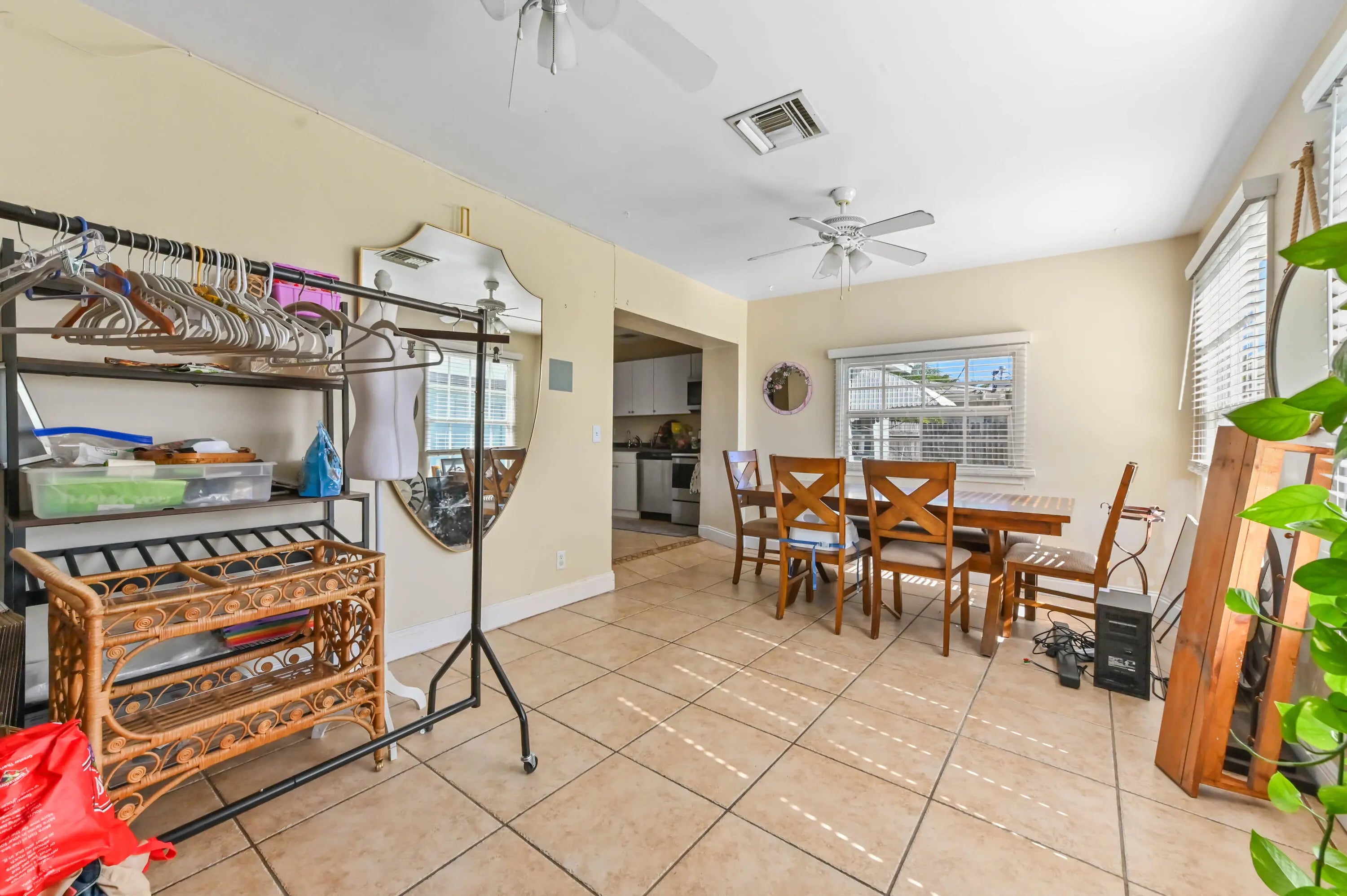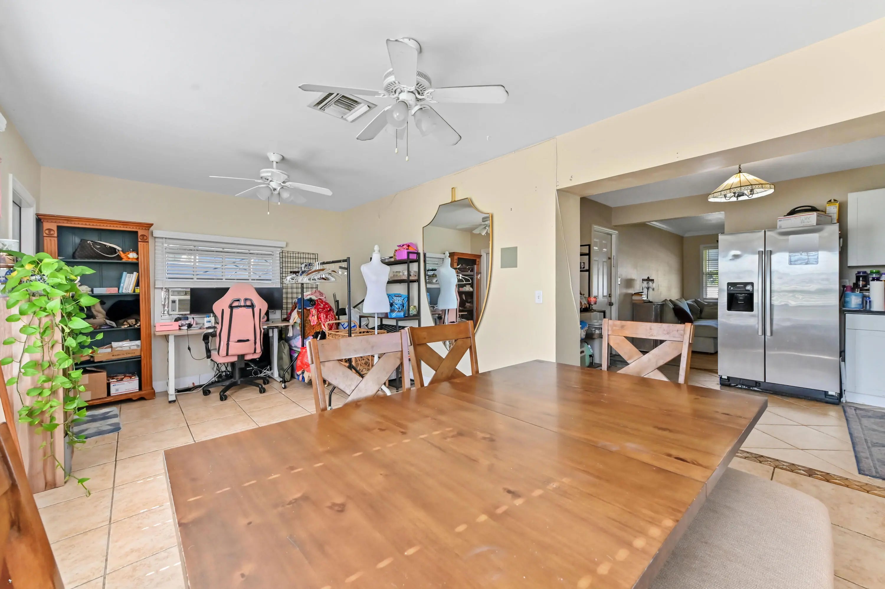 Discover the essence of relaxed Florida living in this charming single-family home, nestled amidst a lush landscape of swaying palm trees in Lake Worth. A welcoming white front door opens into a bright living space, where warm wood-look flooring and abundant natural light create an inviting atmosphere for relaxation. The versatile floor plan flows effortlessly from the cozy living room into a dedicated dining area, perfect for intimate meals or family gatherings. The heart of the home is the kitchen, featuring crisp white cabinetry and stainless steel appliances. This home offers comfortable accommodations with spacious bedrooms that serve as peaceful retreats. The primary bedroom is bathed in sunlight, while the additional rooms provide flexibility for a guest room, home office, or nursery, complete with ample closet space and ceiling fans for year-round comfort. The bathrooms are tastefully appointed, including a tub/shower combination. Step outside to your private backyard sanctuary, a fully fenced green space that promises endless outdoor enjoyment. The lawn offers a serene backdrop for gardening, play, or simply soaking up the sun. A storage shed/utility room provides extra space for tools and beach gear, while the paved driveway ensures ample parking. Ideally located in a quiet neighborhood with no HOA, this delightful property is just moments away from local shops, dining, and the beautiful Lake Worth beaches.