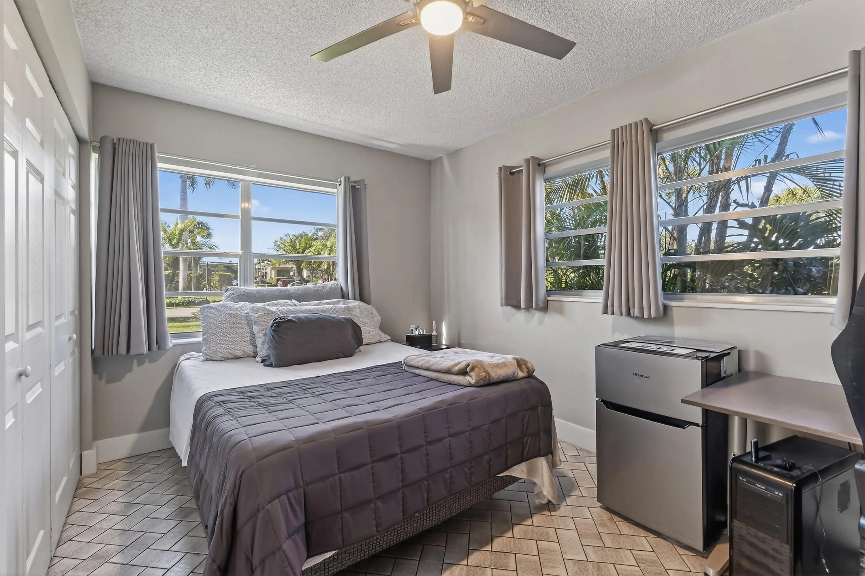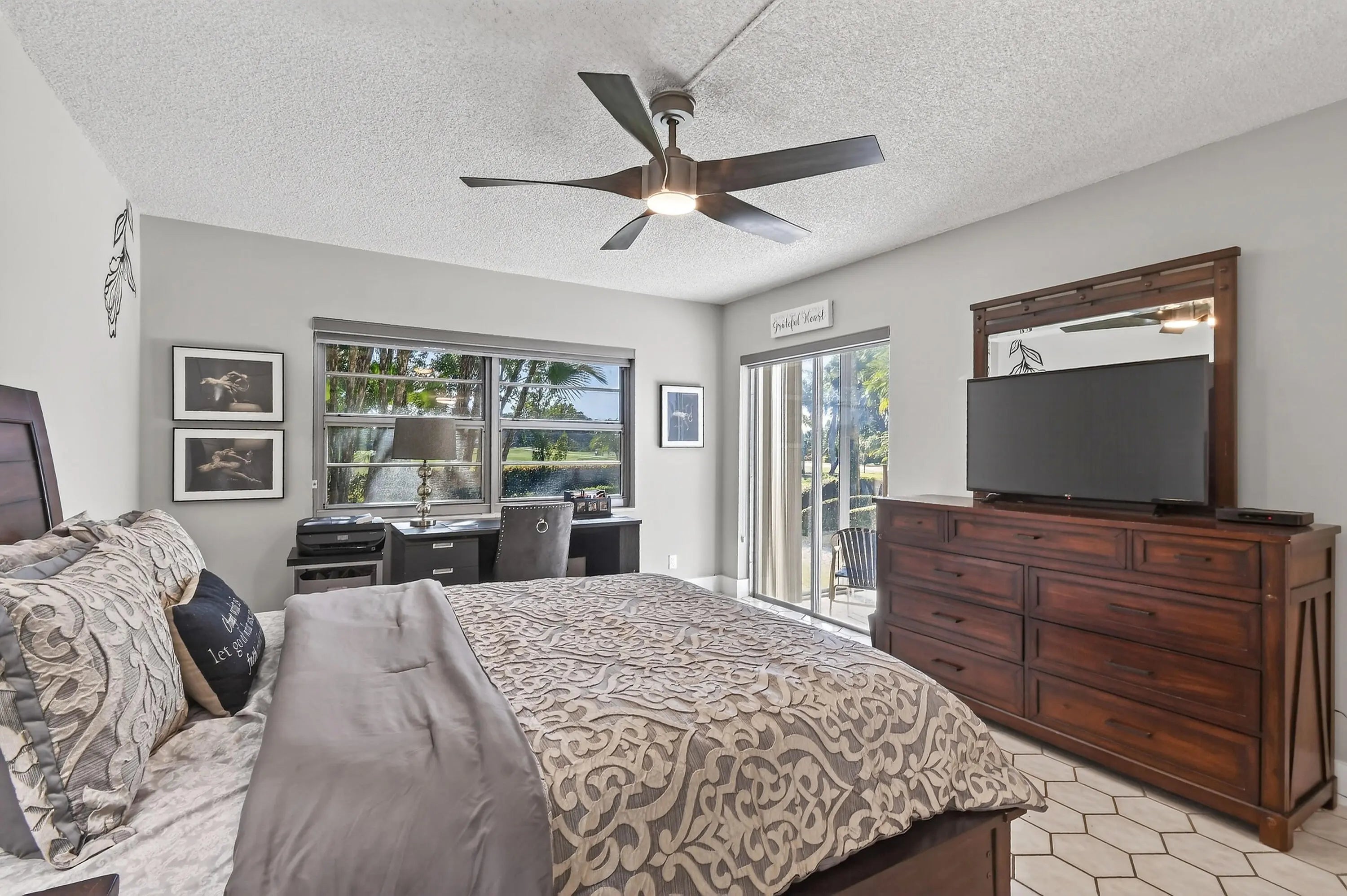 Price-to-sell corner condo in Fountains of Palm Beach! This largest unit in the building offers 2 beds (+1 CONVERTIBLE BEDROOM), ~1,700 SF, and is one of only 18 units. Updates include a new laundry room (W/D allowed), guest bath renovation, refreshed moldings/door frames, wallpaper removed and painted, and impact windows in the primary suite. HOA covers water, cable TV & internet, 24-hr manned gate & lobby security, roof and structural insurance. No mandatory club membership; optional social/golf/tennis available. Community amenities include golf, clubhouse, pool, fitness center, tennis & pickleball courts, bocce, dining and active social events. Great Lake Worth location near shopping, dining, and beaches.