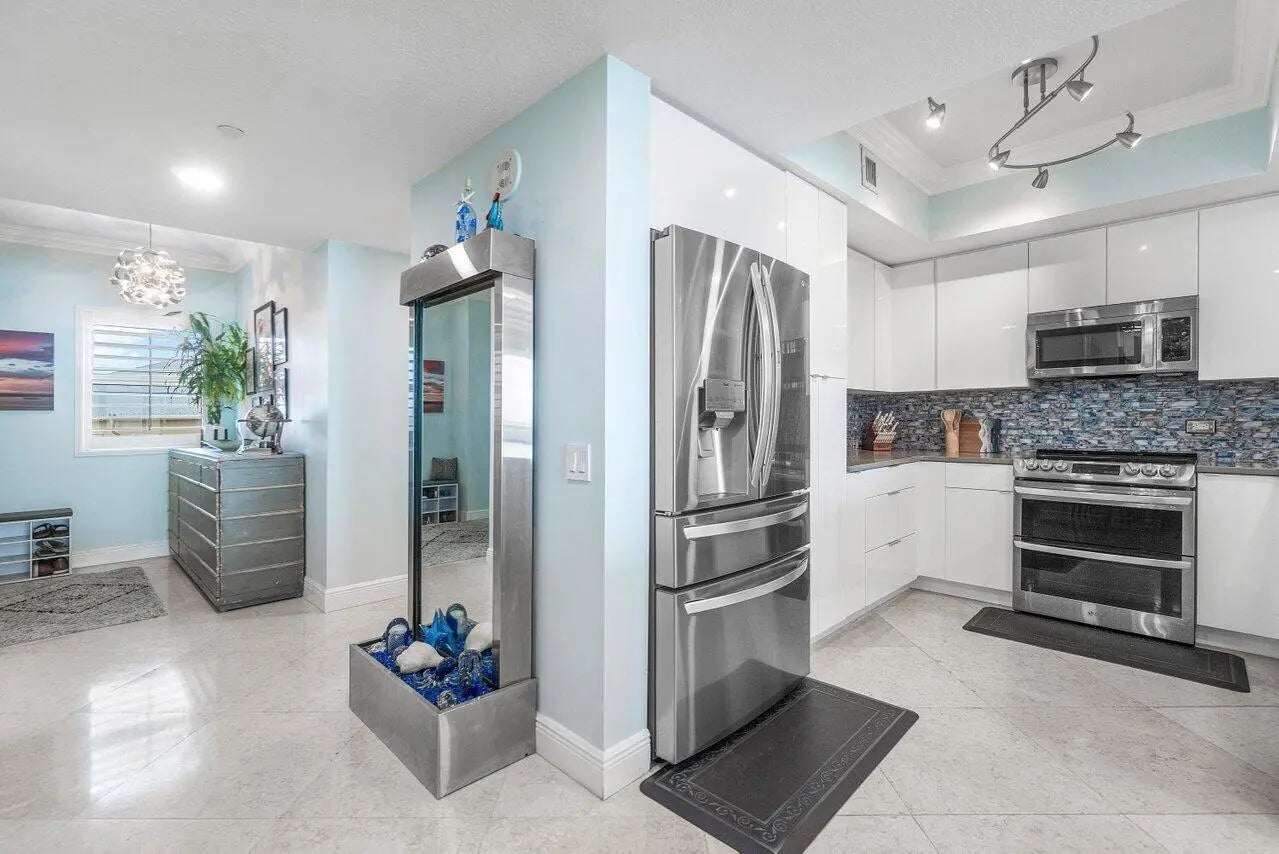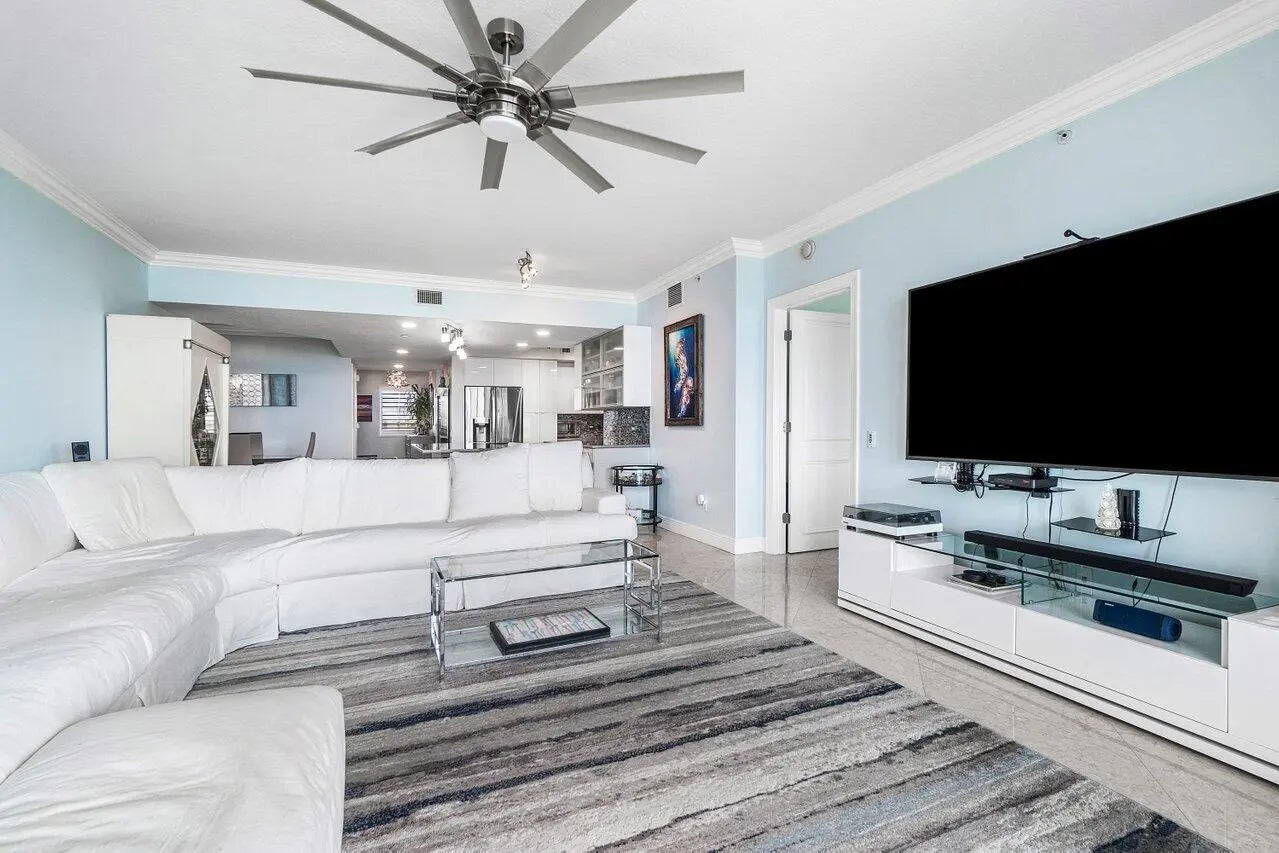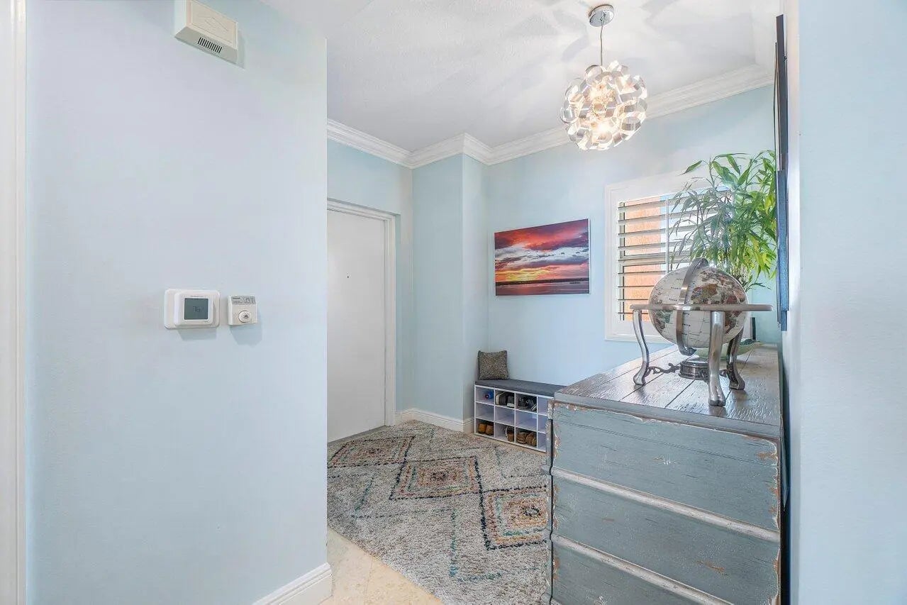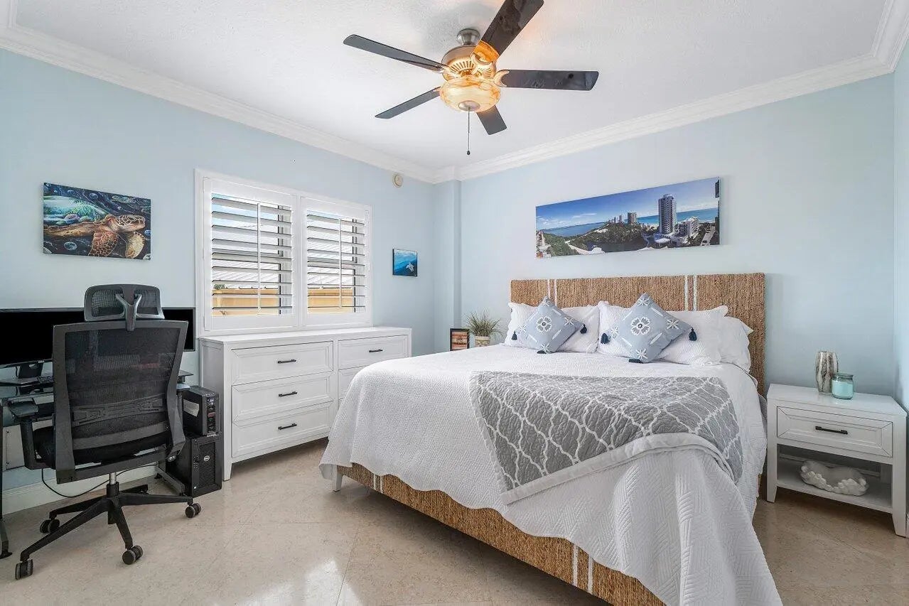 Impeccably maintained CORNER UNIT w/2BR+den, 2BA overlooking the Intracoastal & ocean! Impact glass, semi-private elevator access. Open concept, split floor plan w/spacious owners suite w/his & her walk-in closets. primary bathroom with large stand alone shower and walk in tub. This light and bright coastal inspired unit has a fabulous renovated kitchen that opens up the space and allows for easy entertaining with family and friends. Unit 701 is tiled throughout with crown molding accents and plantation shutters on all windows. Assigned garage parking & climate-controlled storage unit. 24/7 manned gate, valet, NEW tennis, NEW pickleball, walking path w/gazebo, Newly renovated rooftop oasis w/pool, spa, BBQ areas, clubhouse, billiard room & fitness center. Adjacent marina w dry docks