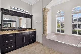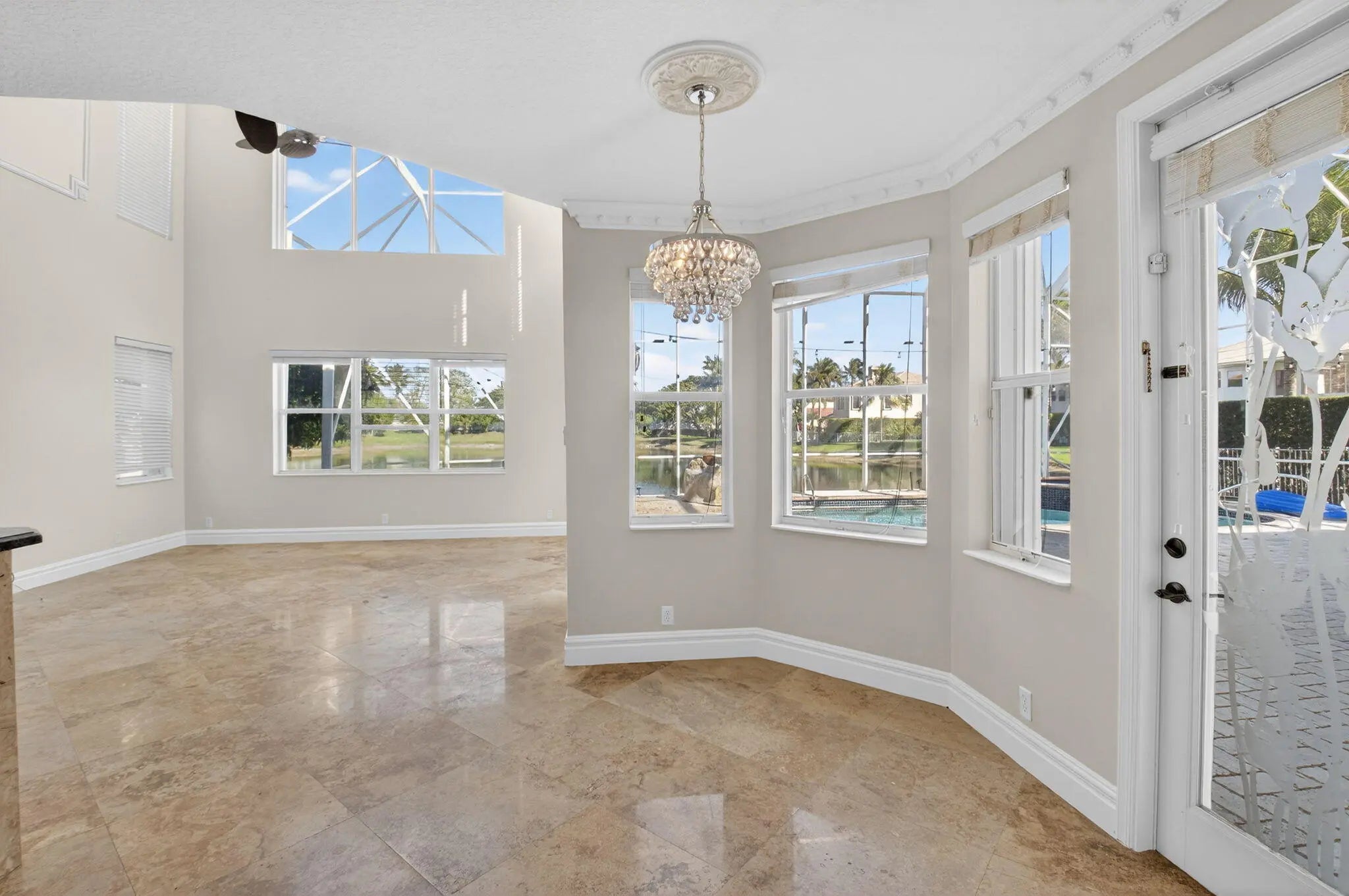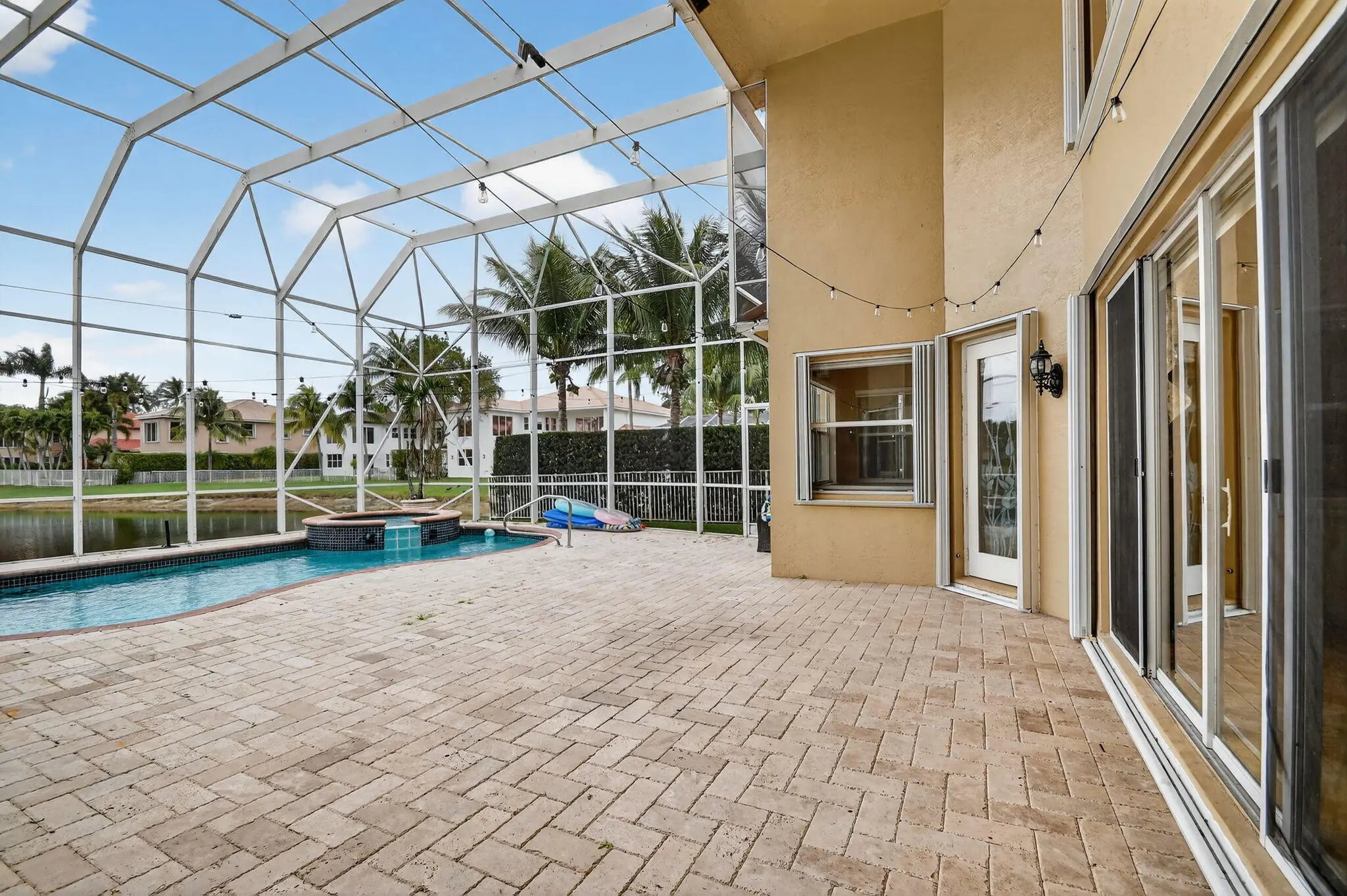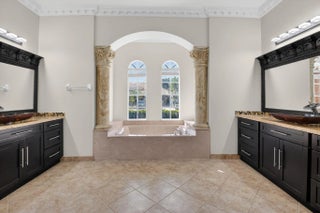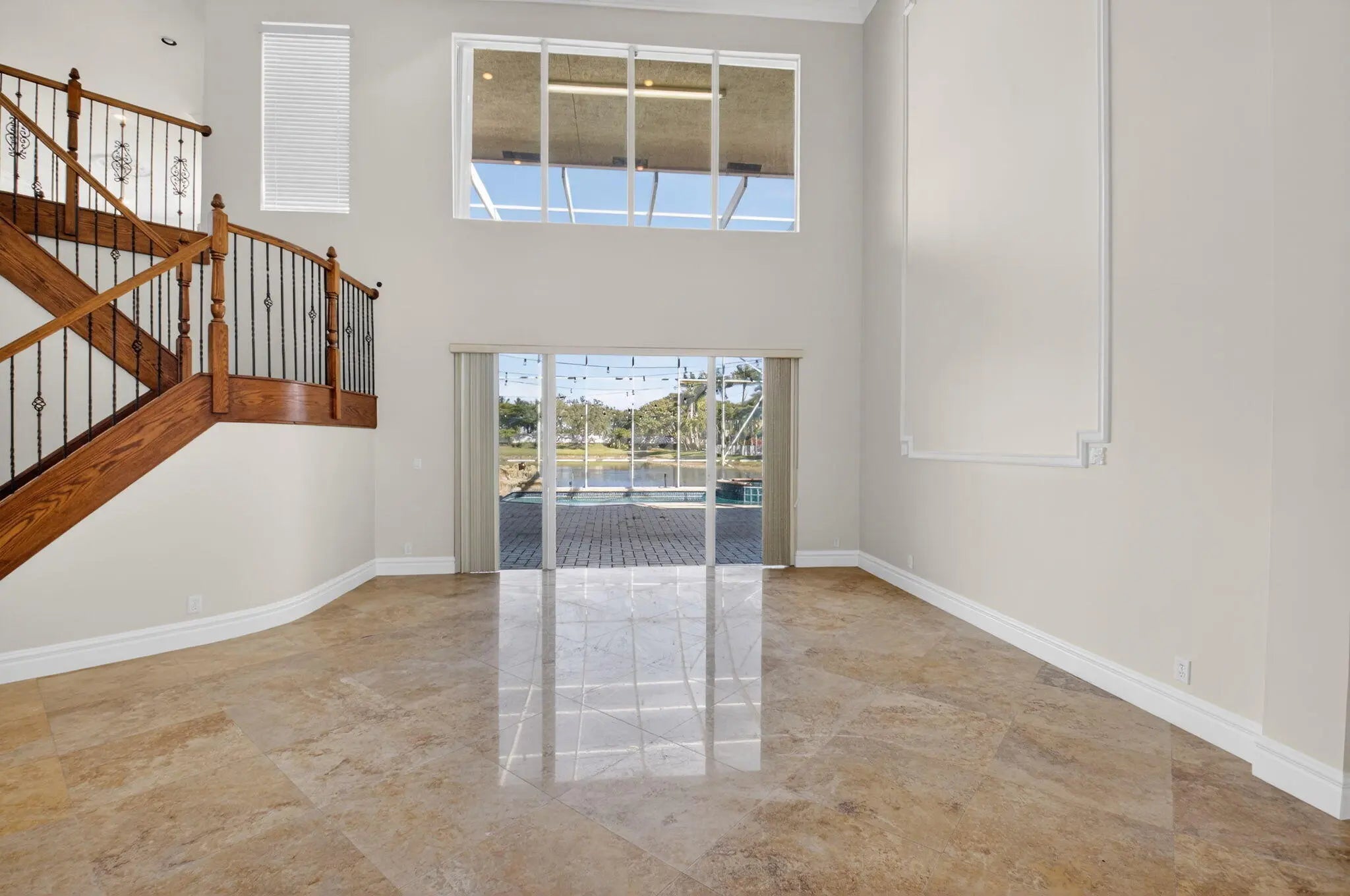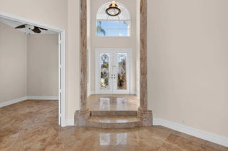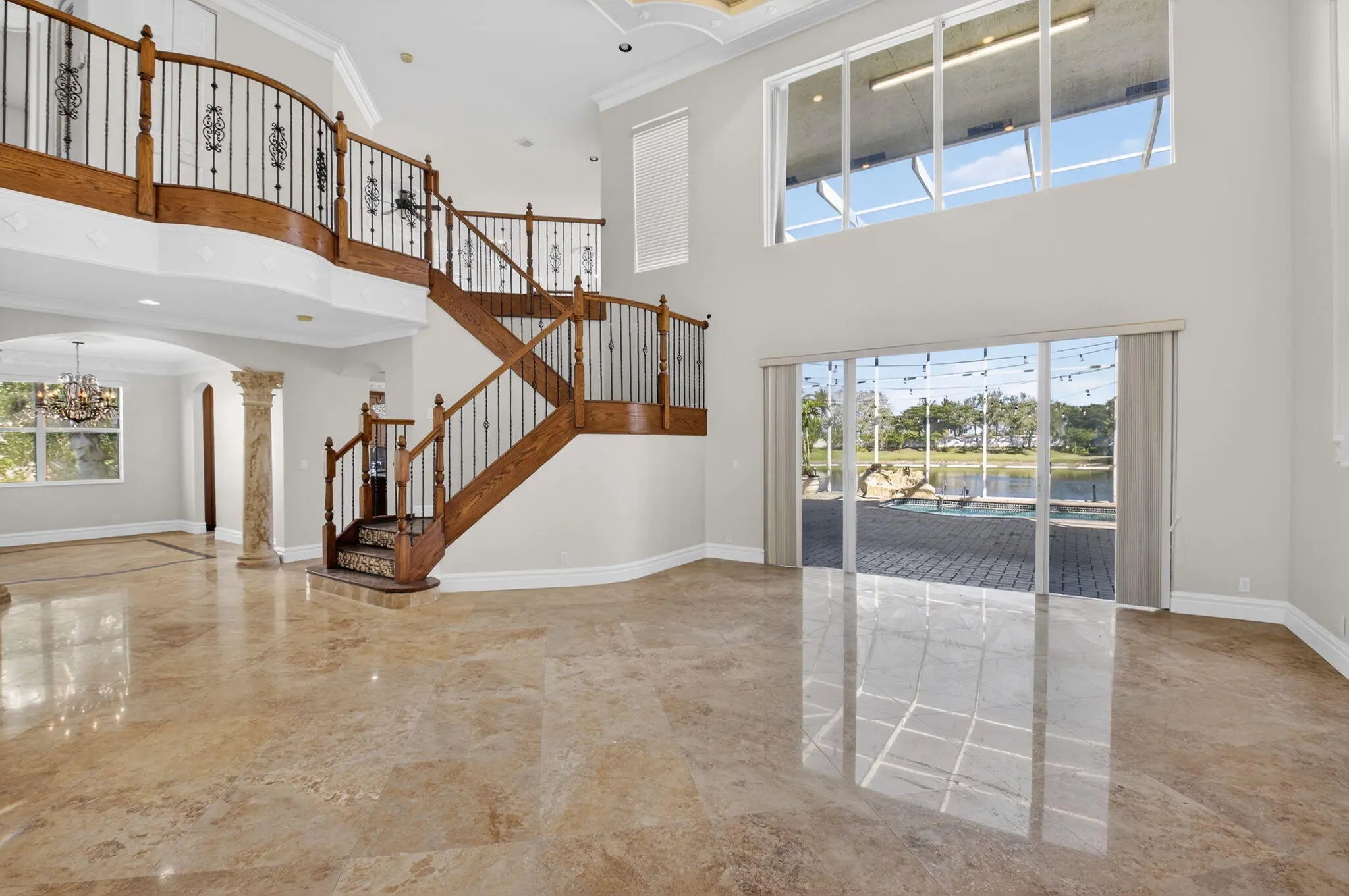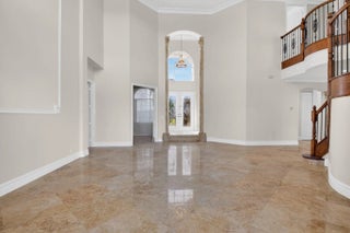 Welcome to refined lakefront living in the prestigious, 24-hour man-gated enclave of Isola Bella Estates. This exceptional two-story residence offers 5 bedrooms with a den, 4 bathrooms, and a 3-car garage, thoughtfully designed for both elegant entertaining and everyday comfort. No detail has been overlooked in this beautifully upgraded home. Interior has fresh paint that elevates the entire home. The main level is adorned with luxurious marble flooring, custom crown molding, and bespoke built-in closets, reflecting a level of craftsmanship rarely found in a rental. The primary suite, along with an additional bedroom and full bath, is conveniently located on the first floor—ideal for privacy and flexibility. Up stairs is loft space and 3 more bedrooms. Step outside to a serene lakefront setting highlighted by a screen-enclosed pool and an impressive two-story screened lanai that dramatically enhances the outdoor living experience. The expansive screened backyard provides abundant space for hosting guests, relaxing poolside, or enjoying tranquil water views year-round. Accordion shutters offer added peace of mind. Residents of Isola Bella Estates enjoy access to a resort-style clubhouse featuring state-of-the-art amenities, including a newly upgraded fitness center with brand-new equipment. Landscaping, lawn and pool maintenance are all included, allowing for truly effortless living. This is a rare opportunity to lease a meticulously upgraded lakefront home in one of the area's most sought-after luxury communities.