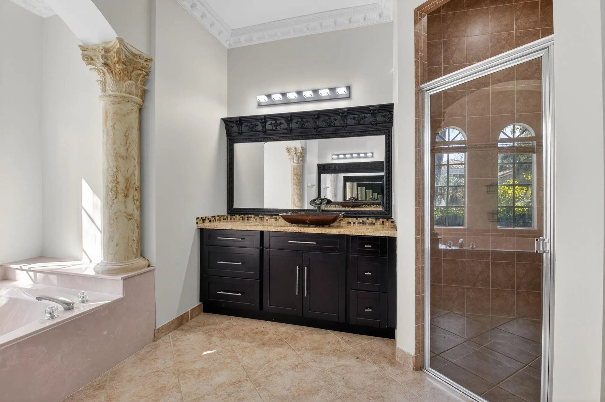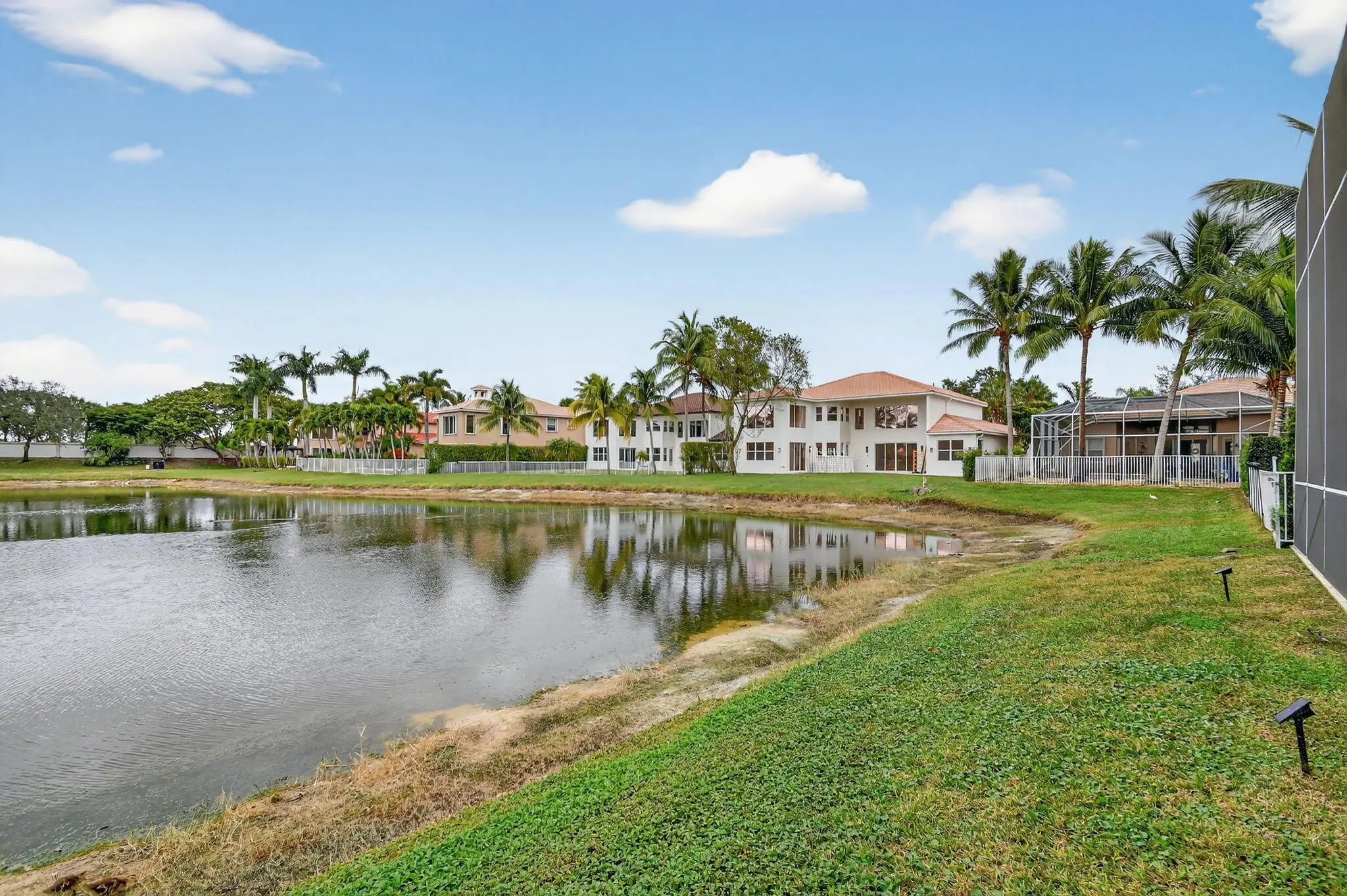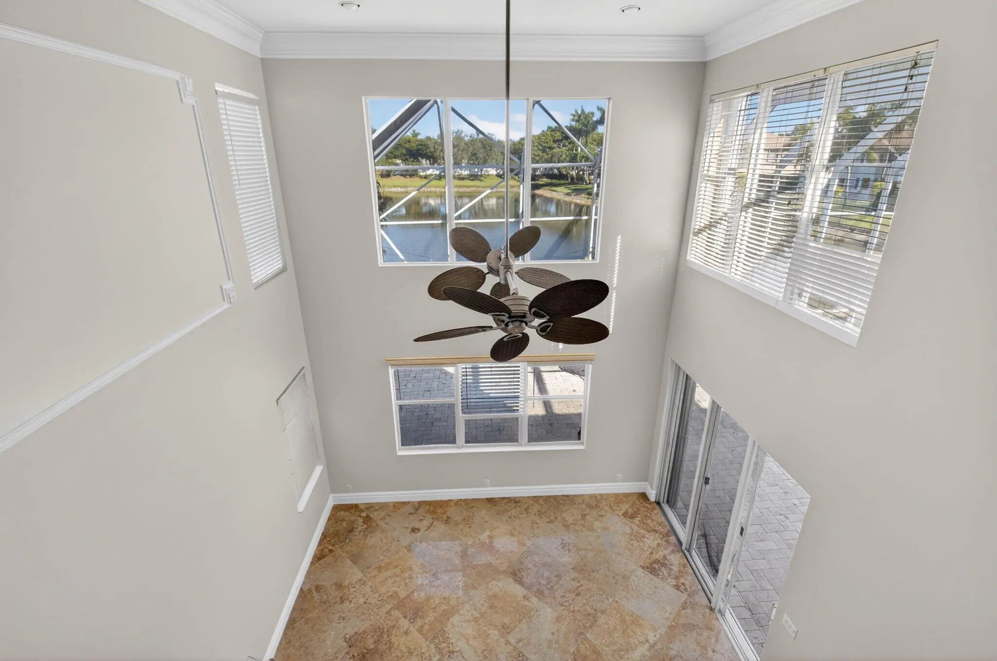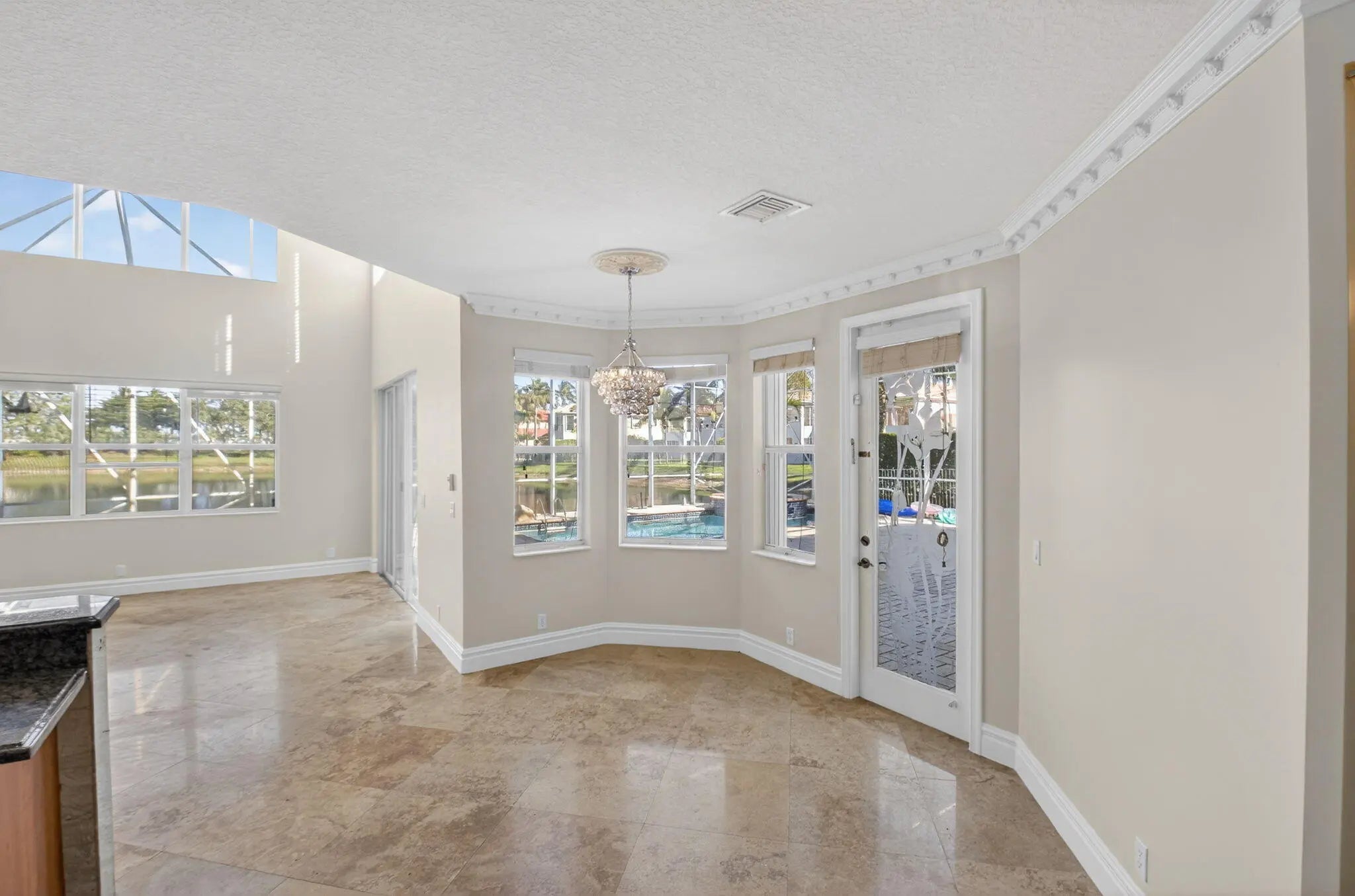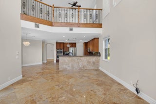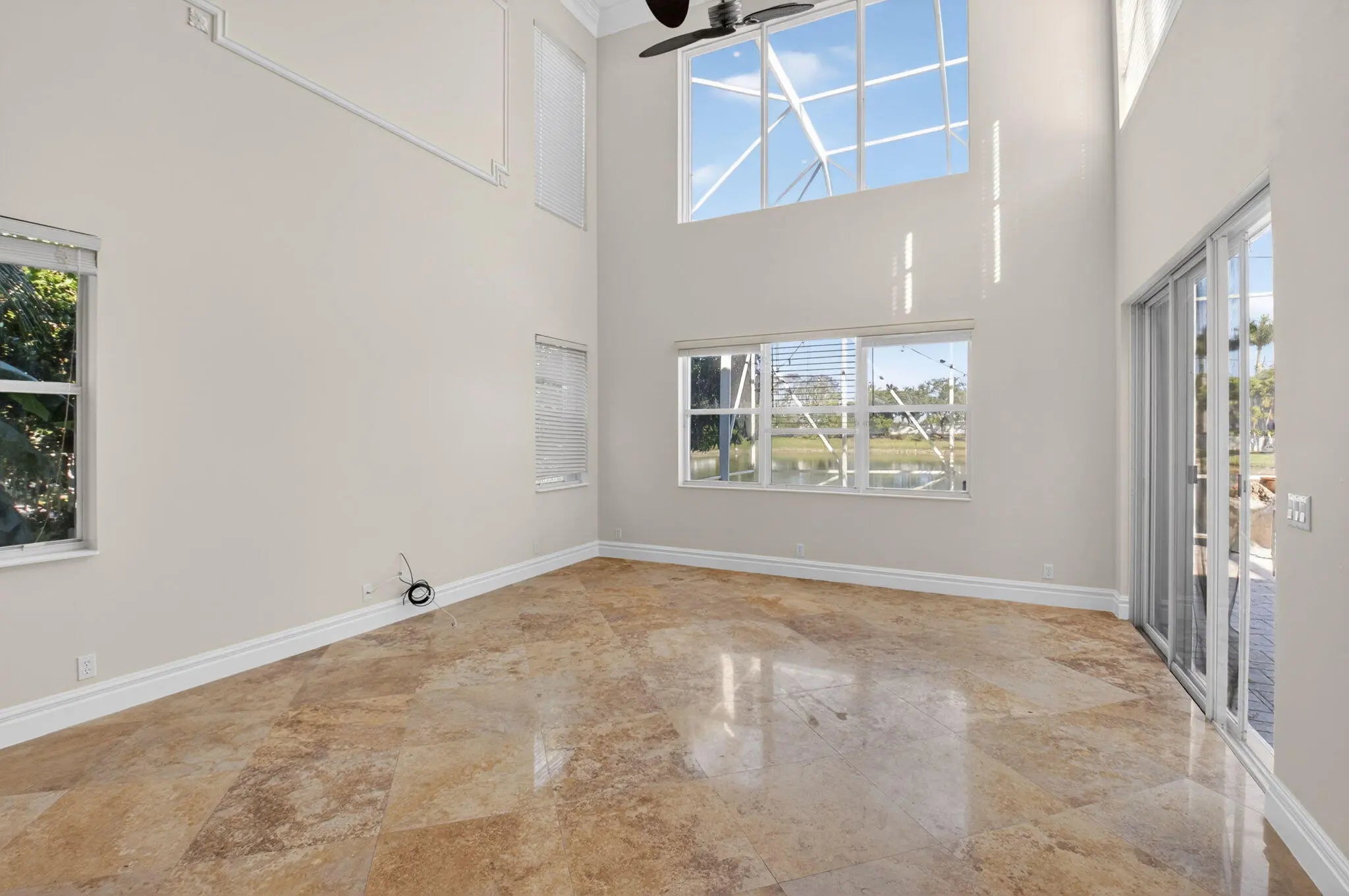 Welcome to refined lakefront living in the prestigious, 24-hour man-gated enclave of Isola Bella Estates. This exceptional two-story residence offers 5 bedrooms with a den, 4 bathrooms, and a 3-car garage, thoughtfully designed for both elegant entertaining and everyday comfort. No detail has been overlooked in this beautifully upgraded home. Interior has fresh paint that elevates the entire home. The main level is adorned with luxurious marble flooring, custom crown molding, and bespoke built-in closets, reflecting a level of craftsmanship rarely found in a rental. The primary suite, along with an additional bedroom and full bath, is conveniently located on the first floor—ideal for privacy and flexibility. Up stairs is loft space and 3 more bedrooms. Step outside to a serene lakefront setting highlighted by a screen-enclosed pool and an impressive two-story screened lanai that dramatically enhances the outdoor living experience. The expansive screened backyard provides abundant space for hosting guests, relaxing poolside, or enjoying tranquil water views year-round. Accordion shutters offer added peace of mind. Residents of Isola Bella Estates enjoy access to a resort-style clubhouse featuring state-of-the-art amenities, including a newly upgraded fitness center with brand-new equipment. Landscaping, lawn and pool maintenance are all included, allowing for truly effortless living. This is a rare opportunity to lease a meticulously upgraded lakefront home in one of the area's most sought-after luxury communities.