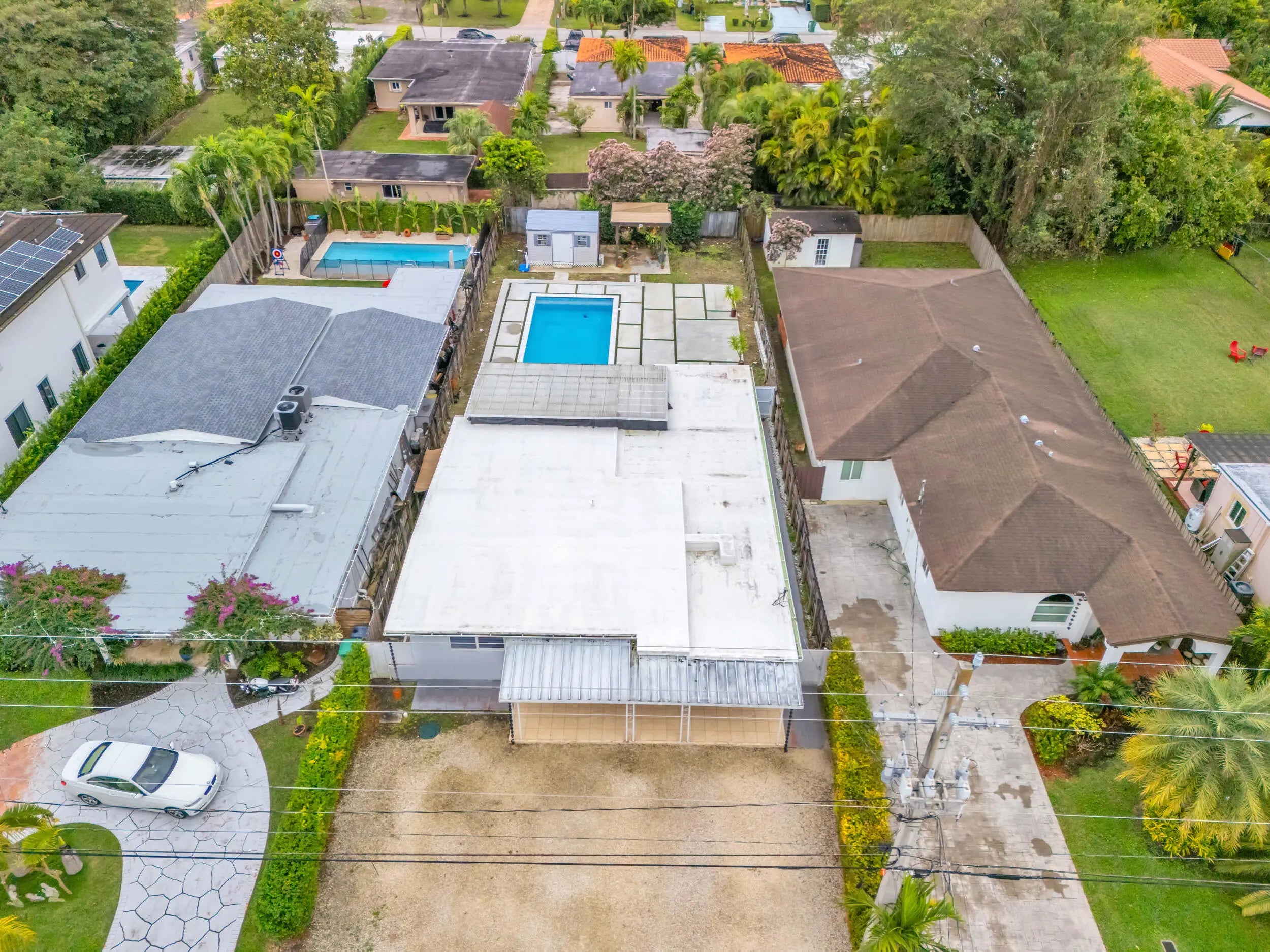 Beautiful 3-bedroom, 2-bath main home with a fully equipped 1-bedroom, 1-bath guest house featuring a full kitchen and refrigerator, ideal for rental income. Nicklaus Children's Hospital is located at the end of the street, with quick access to the Palmetto Expressway (826), Coral Gables, Coral Way, Tropical Park, Barnes Park, and multiple shopping centers. The location is extremely convenient and highly desirable. Upgrades and features include impact windows and doors, new tile flooring installed a few years ago, remodeled interior walls with new baseboards and interior doors, a brand-new 15X30 heated pool, a covered terrace seamless connect to an extendable pergola-style covered area with a solid roof for outdoor dining and entertaining, and a spacious paved backyard with artificial grass borders. The property also offers a 10x14 shed, great for storage, an orchid garden with pergola, a fenced back yard, and a driveway with stone finish accommodating up to 8 vehicles. The septic system drain field is completely new. The home has been very well maintained by the owner. This property is ideal for a primary residence or a great investment opportunity, offering excellent potencial for rental income in a prime location.