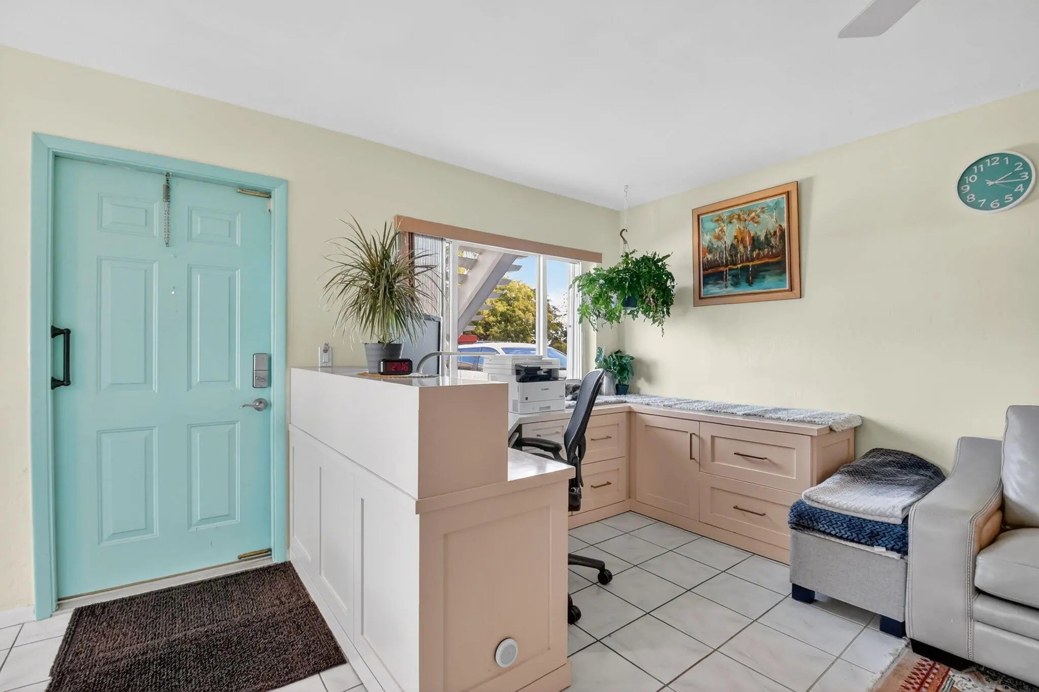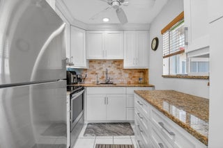 Coveted ground floor 2-bedroom/1 bath unit w/ walk-in-closet. Large custom desk in LR & custom Murphy Bed/shelving/second desk system in Guest BR. Stunning, renovated kitchen w/ large pantry & water filtration system. Walk-in shower/bidet toilet. Wall mounted 65'' TV and soundbar included. View of lake from LR and backyard garden space. You will absolutely LOVE Murry Hills. Centrally located to everything .... downtown Lake Worth Beach, Delray Beach, WPB. Ocean is 8 minutes away. Amenities galore here...gigantic, heated pool, 2 gyms, pickleball court, bocce ball court, shuffleboard, putting green. saunas, ping pong/billiards tables, craft room, auditorium showing first rate movies every Saturday! Active community if that's what you enjoy. Quiet too if that's more your style. Grab this one!