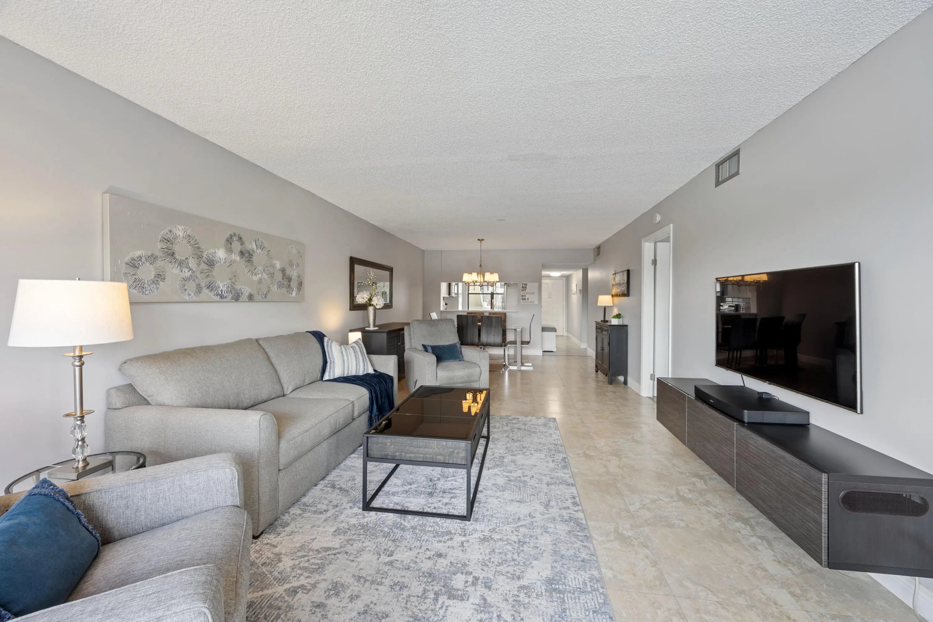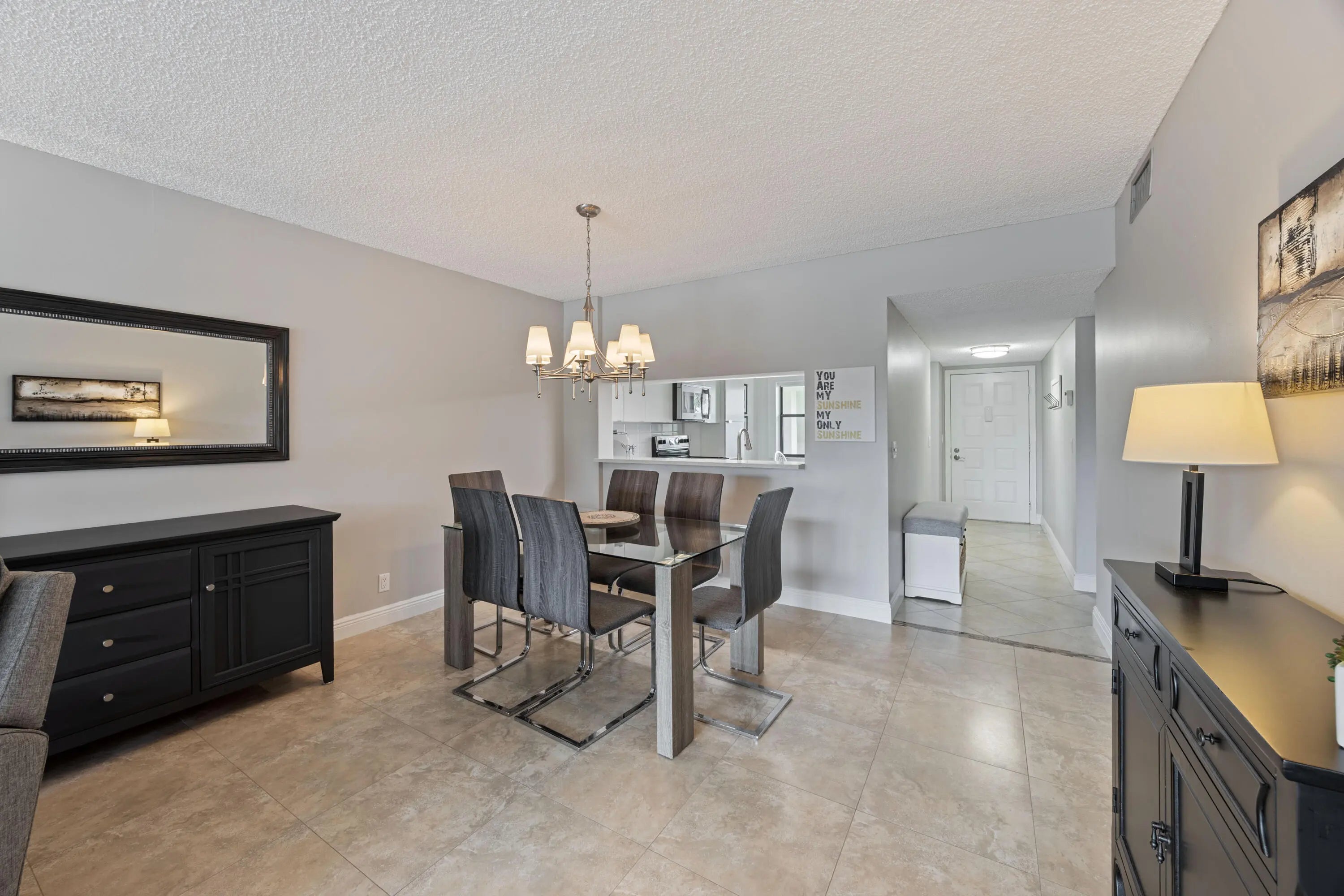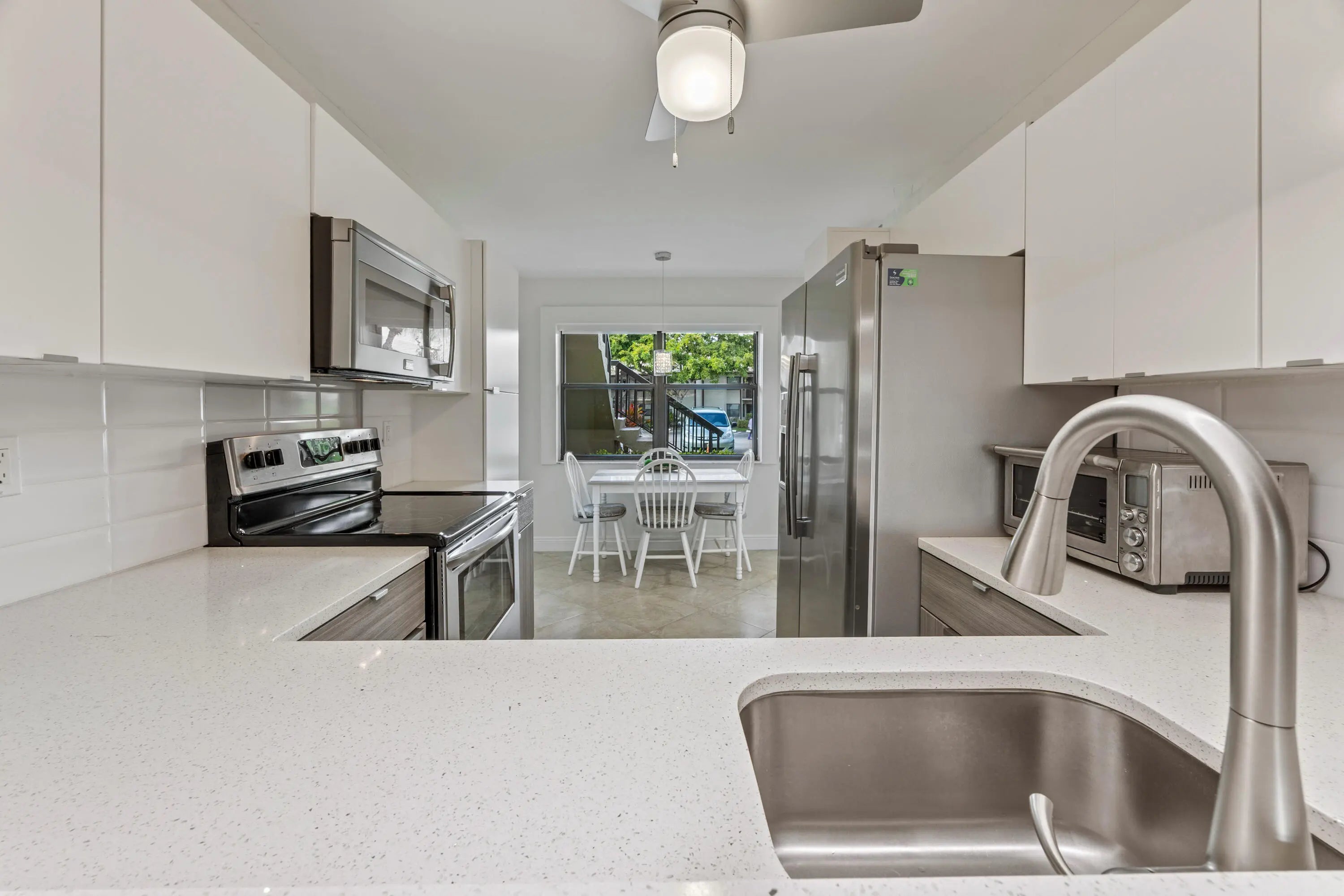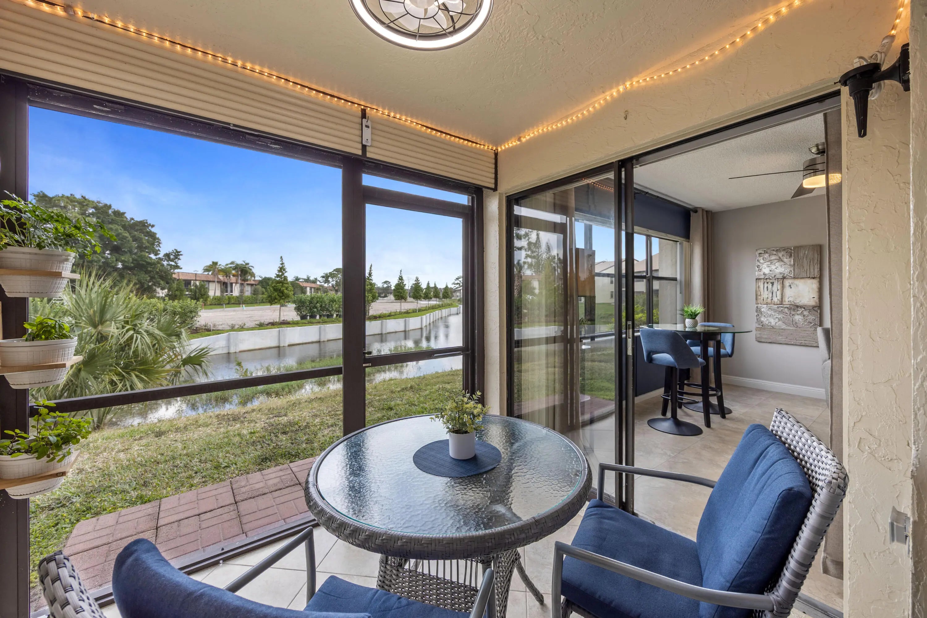 Welcome to this exceptional, fully furnished 1ST FLOOR 2 bedroom 2 bath condo. Beautiful view of a pretty canal and nice landscaping from your back porch and back windows. Immaculate, beautifully renovated and decorated. Very spacious living and dining room. Large neutral tile in living areas. Updated eat-in kitchen with two-tone cabinets, quartz counters, backsplash, self-closing drawers and cabinets, and 2 pantries. Updated bathrooms with new vanities and quartz counters. New paint, new lighting fixtures and fans. Large storage closet on your lanai. Parking space just in front of your door. Located in Lucerne Pointe, an active 55+ community, with a nice clubhouse, pool, fitness center, tennis and within walking distance to the satellite pool. Water and cable included in the HOA dues.