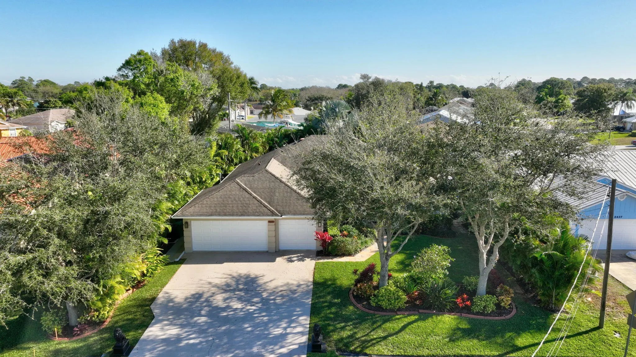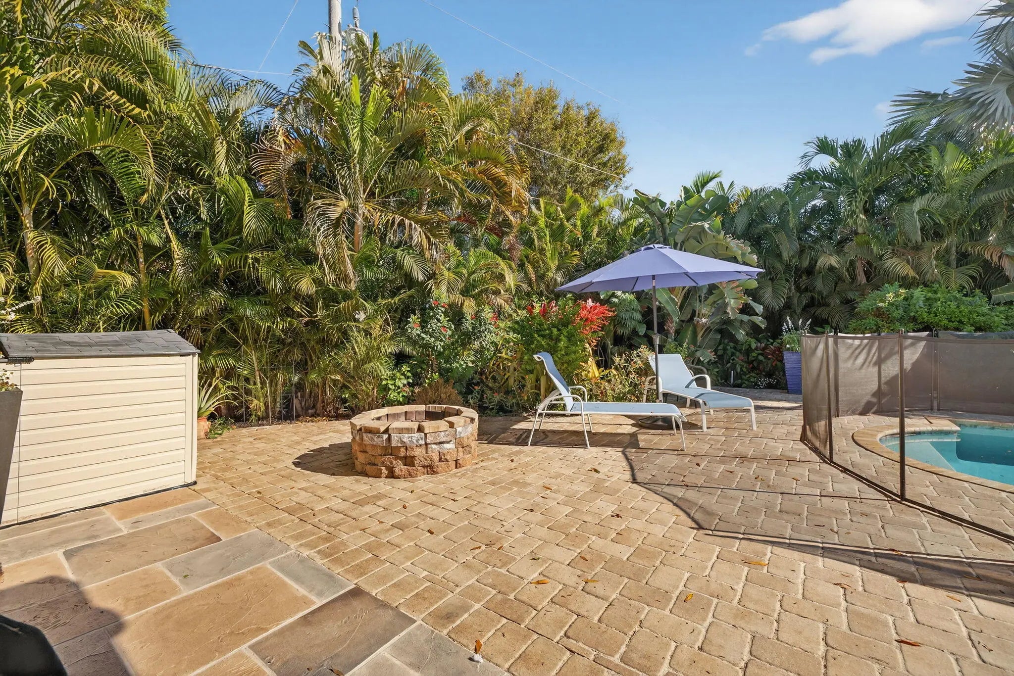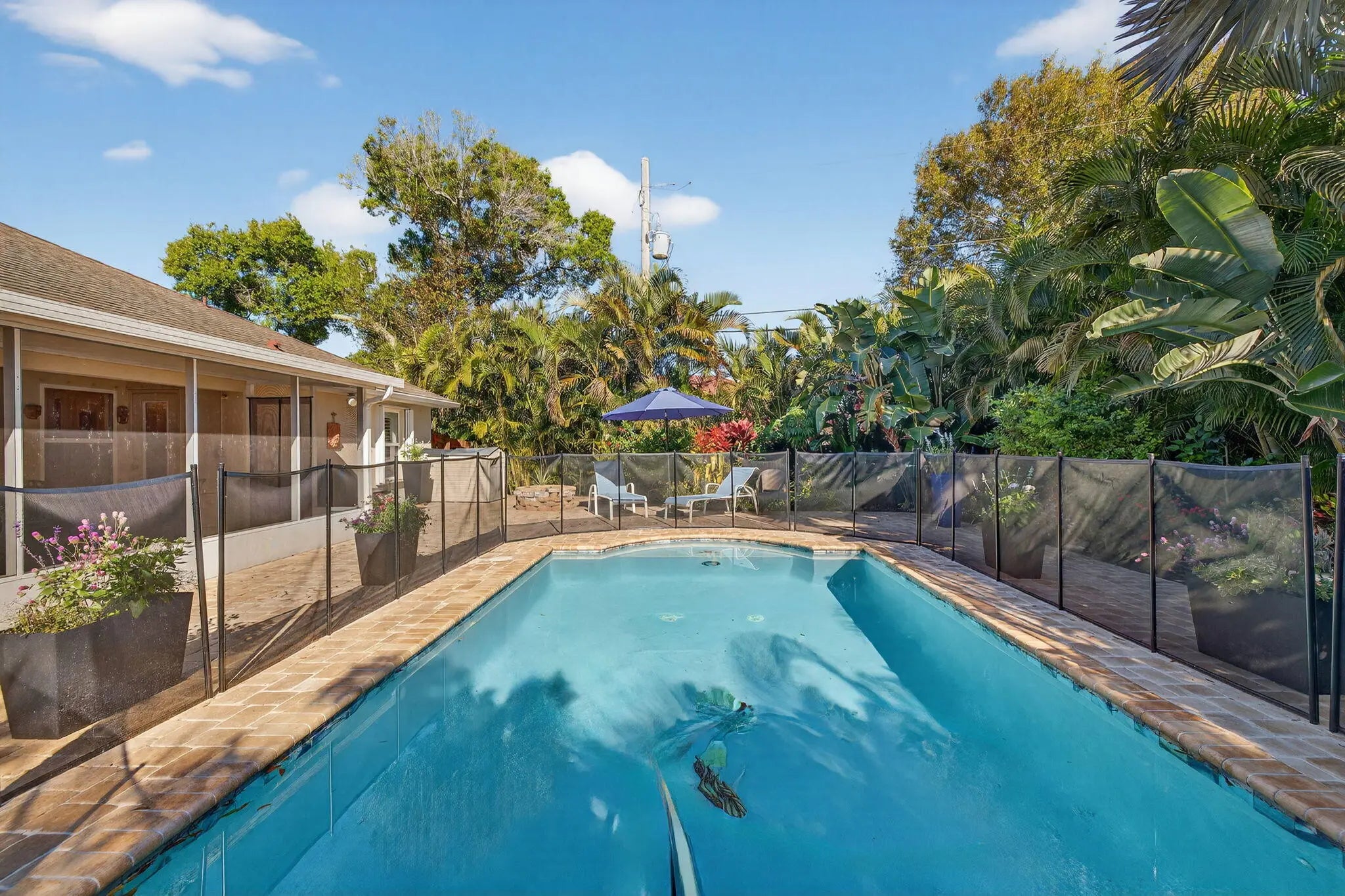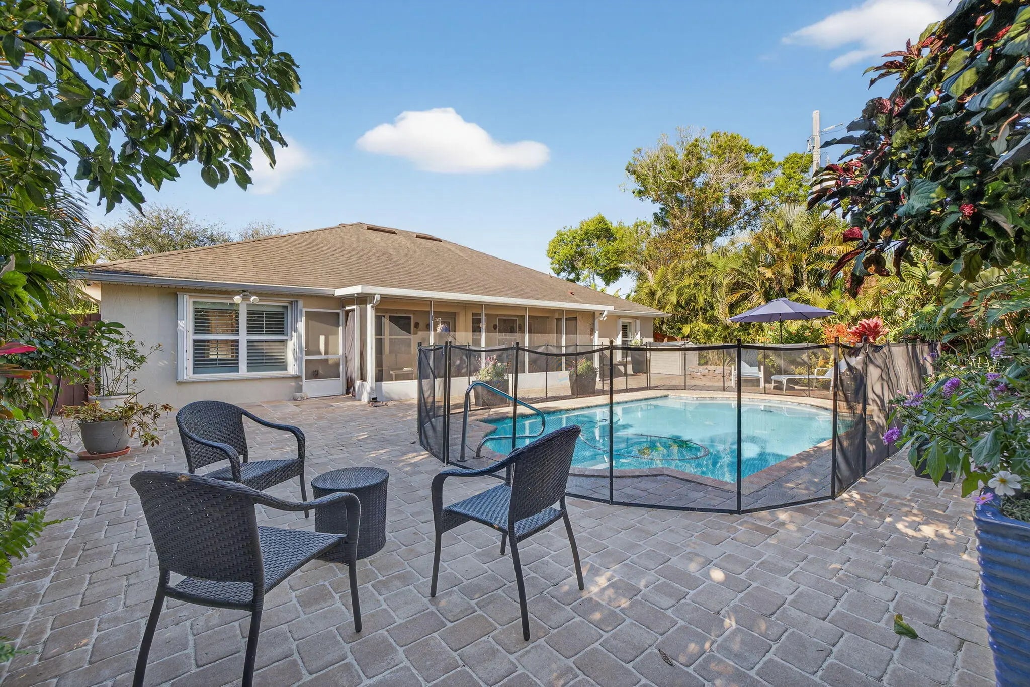 Tastefully updated 4-bedroom plus den, 3-bath, 3-car garage pool home located just minutes from Tradition and I-95. This spacious, open floor plan features new luxury high-end laminate flooring throughout. The beautifully remodeled eat-in kitchen offers quartz countertops, breakfast bar, pantry, and newer appliances. The primary suite includes two walk-in closets and a fully remodeled bath with oversized shower, dual vanities, and bidet. Guest bathrooms, including the cabana bath, have also been remodeled. Sliding glass doors from the living room open to a private tropical oasis featuring a pool, extended paver patio, fire pit, fencing, and lush landscaping for maximum privacy. Recent upgrades include a new A/C system and water heater (2025). Conveniently located near shopping, dining, 95