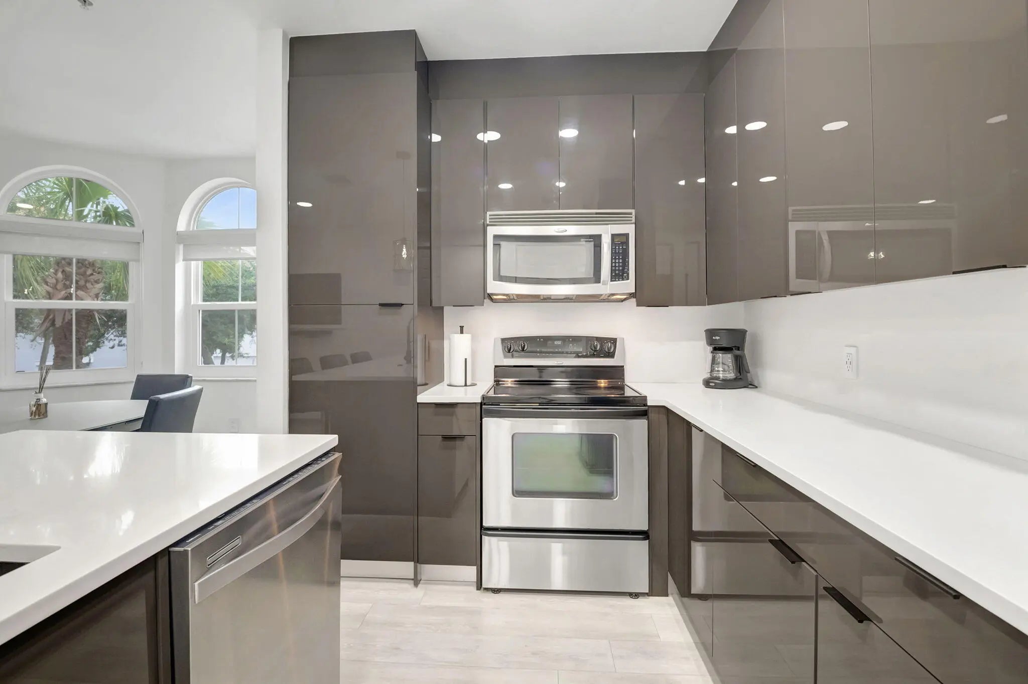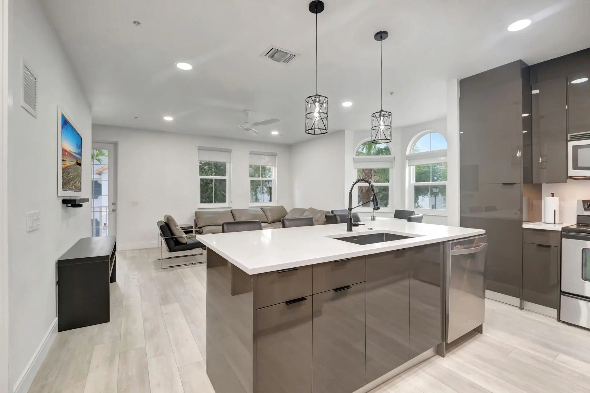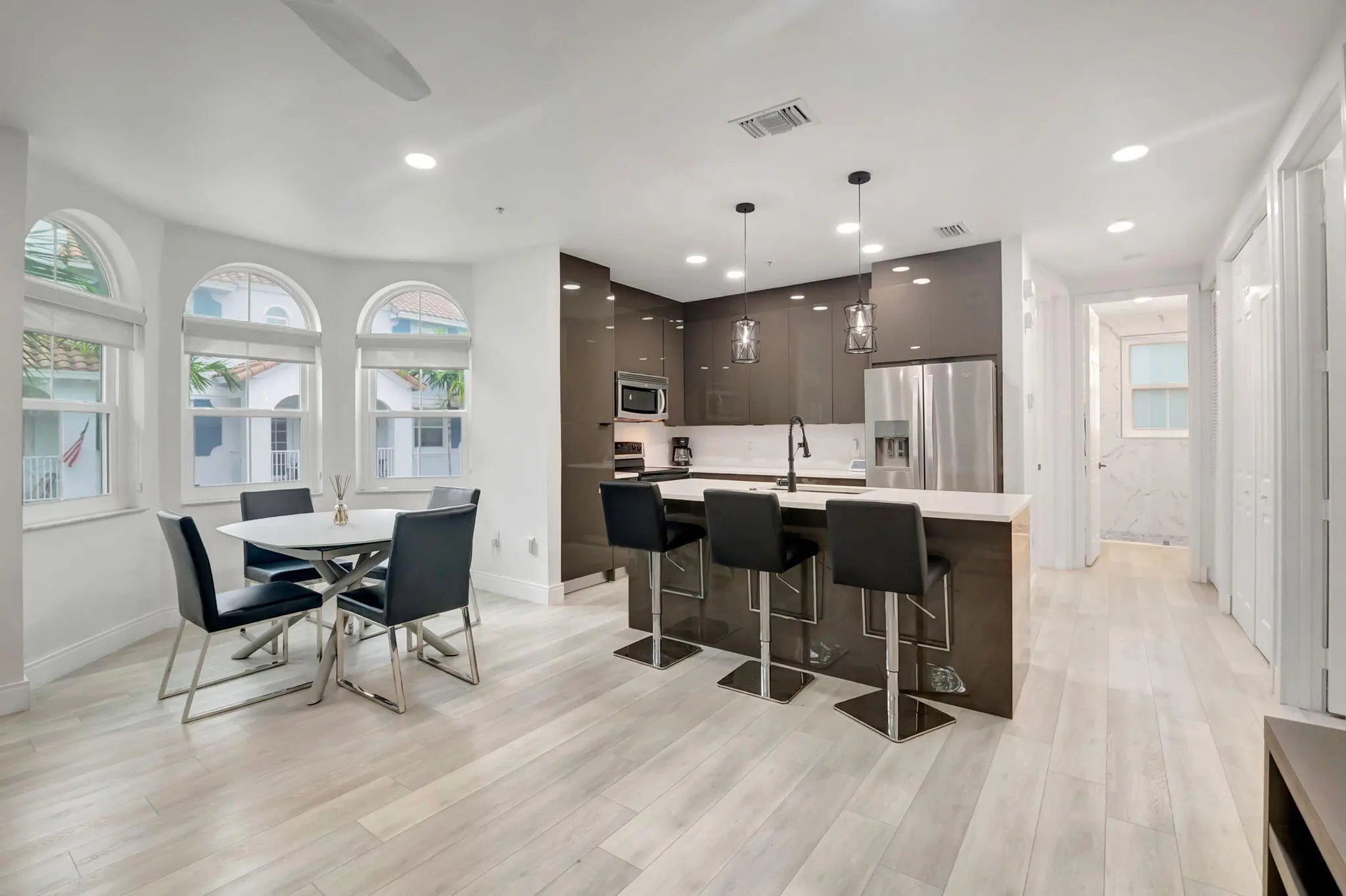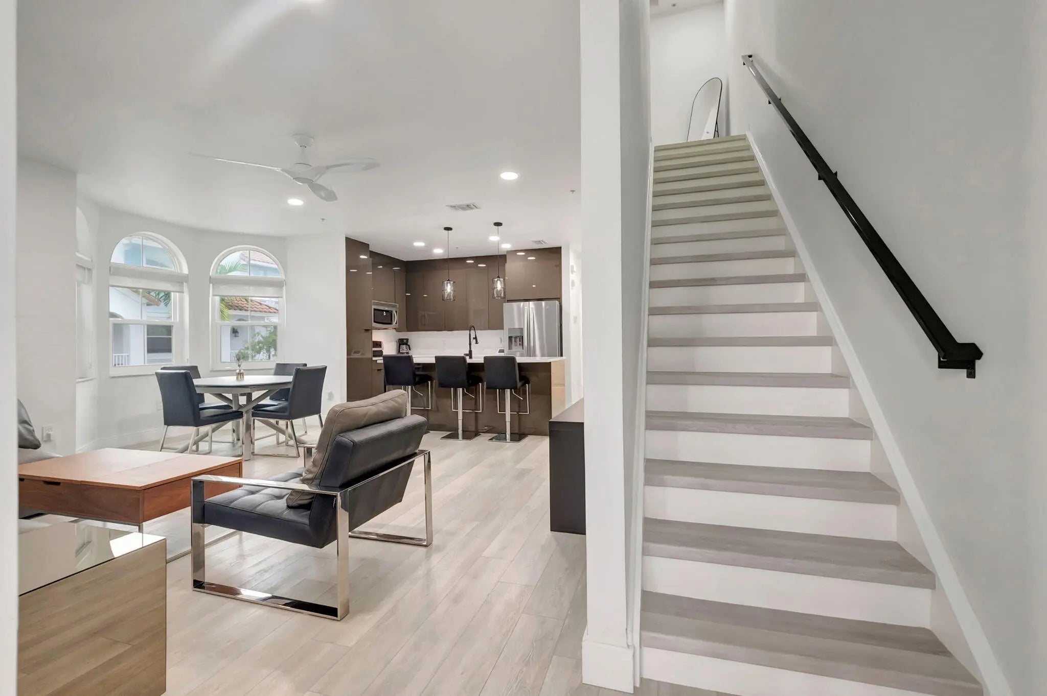 Internet and CLean Service is Included. Modern partially furnished or unfurnished. Internet and cleaning services included. Meticulously Renovated Corner Unit Discover this stunning corner unit, thoughtfully renovated and featuring impact glass windows. This expansive multilevel residence boasts three spacious bedrooms, two full baths, and two half baths, along with a double garage and driveway--offering plenty of room for both relaxation and entertainment. On the first floor, a versatile flex space awaits, complete with a convenient half bath--ideal for a home office, an extra bedroom, or a lively game room. The possibilities are endless! Step outside and enjoy a wealth of community amenities, including a playground, a sparkling pool, and a fully equipped fitness center. The vibrant local scene offers excellent walkability to a variety of shops, delightful restaurants, and cozy coffee houses. Plus, you're just a short drive away from stunning beaches, allowing you to soak up the sun just steps from your front door. Conveniently located near I-95, this home provides quick access to downtown Delray Beach and three international airports, making it perfect for both work and leisure. Don't miss your chance to experience the best of modern living!