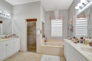 ONE OF THE NEWEST ISOLA BELLA HOMES BUILT IN 2012! Pretty 4 bedroom, 3 bath home has been immaculately maintained by the original owner. So many upgrades! As you enter the home take note of the front doors which have been customized to include etched glass inserts. Three way bedroom split. One guest room has an ensuite bath. Accordion shutters for storm protection. Plantation shutters on every window and sliding doors. AC replaced in 2022.(4 ton unit). Tile thruout with wood planking in the bedrooms. Designer lighting and custom closet built ins. Gutters have been installed and microwave was replaced in 2020. Side garage door entry which adds to the attractive curb appeal of this home. Isola Bella Estates is a manned gated community with full amenities in an 'A' rated school zone.