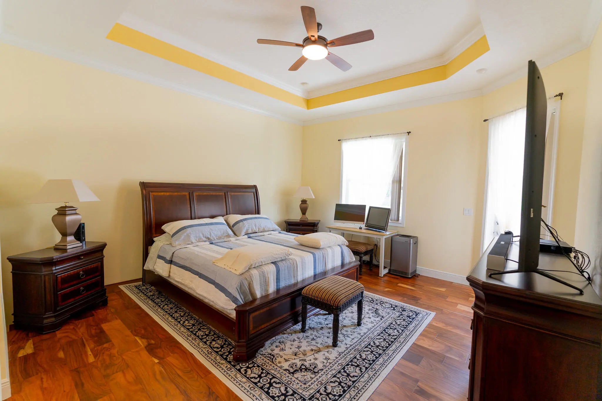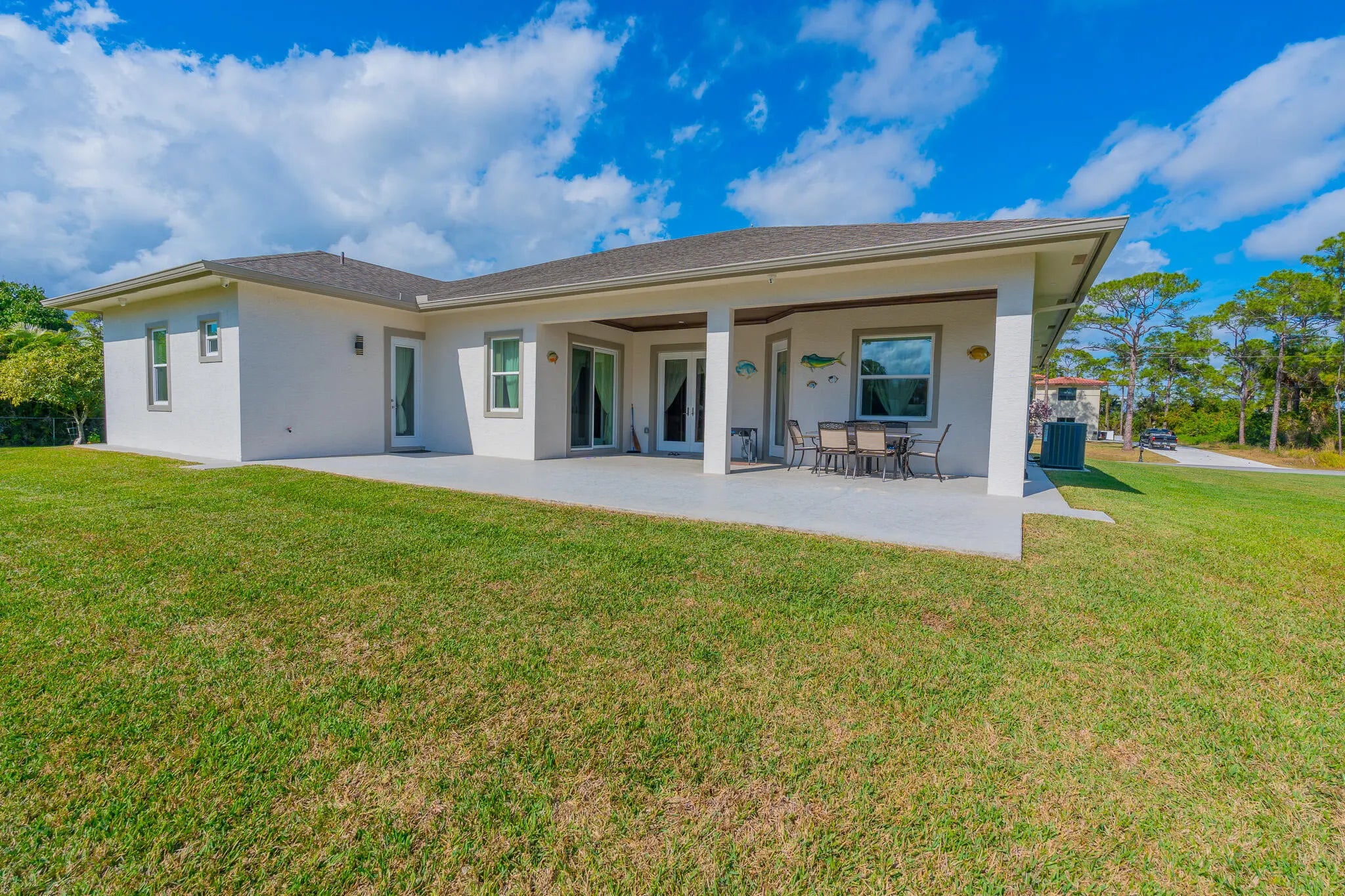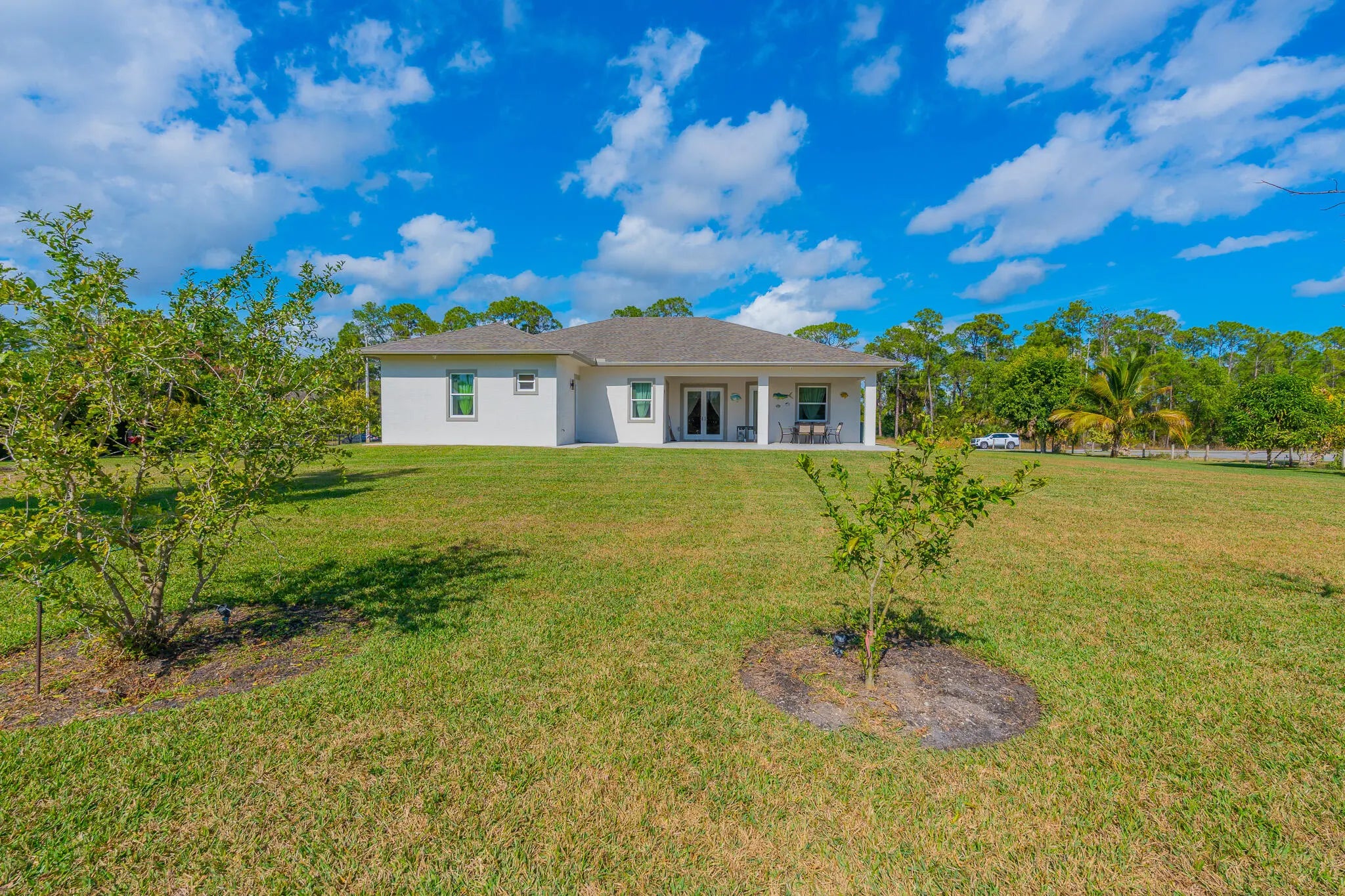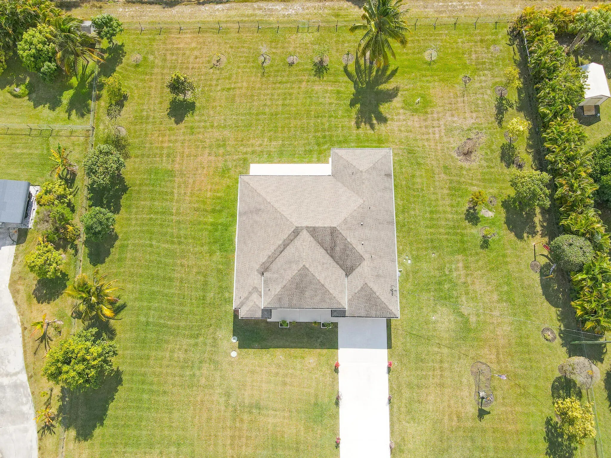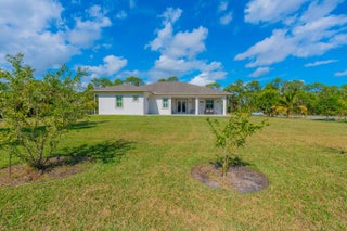 This 2015 constructed Synergy Home is perfectly Located on the North end of The Acreage down a paved road on a 1.3 Acre Estate offering the perfect blend of security, privacy, and functionality. No HOA. This beautiful Home comes equipped with Full Impact Windows and a Fully upgraded Water Softening System, it was just recently painted inside and outside with a new Trane AC unit just installed in 2025. This stunning residence boasts a Split floor plan with the Master bedroom and office/den to one side, 2 other guest bedrooms and a bathroom to the other side with an additional In-Law bedroom and bathroom with its own separate private entry. A wealth of natural light highlights this thoughtfully designed home with coffered ceilings throughout, Indoor laundry room completes your comfortable living space. Enjoy the oversized, covered Patio overlooking an abundance of different trees that include Coconut, Mango, Guava, Jamoon, Maranga, Forbidden Fruit, Cashew, Plum and Cherry. Create your own private oasis with an expansive yard for endless possibilities, whether you envision a tranquil retreat or an entertainer's paradise! Plenty of space for a pool. Minutes away from the new Avenir Town Center and Coconut Crossing. Enjoy world-class golf at Sandhill Crane Golf Club, shopping at The Gardens Mall, and dining along the Jupiter inlet, this private property combines country living and all the perks of a coastal luxury lifestyle. Don't miss this rare opportunity to own a piece of paradise in one of Palm Beach County's most coveted locations, with just a short 30 minute drive to PBI, the beautiful beaches of Singer Island and the desirable towns of Jupiter and Palm Beach Gardens. Concluding having the best of both worlds with the newly constructed Avenir Town Center and the luxury of living on a 1.3 Acre lot!