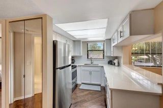 Spacious 2-bed, 2-bath corner unit filled with natural light from extra windows! The remodeled primary shower features sleek white tile and new flooring, while the 2nd bath has been fully updated. The kitchen shines with beautiful quartz countertops, and ceramic tile flooring extends throughout the main areas and vinyl in the bedrooms. Relax on the large screened balcony overlooking the peaceful lagoon. This gated community offers two pools, jacuzzies, a fitness center, and a picnic area with grills. Conveniently located just minutes from beaches, boating, golf, shopping, and dining! Come Home to Paradise! Owner will entertain an annual lease term.
