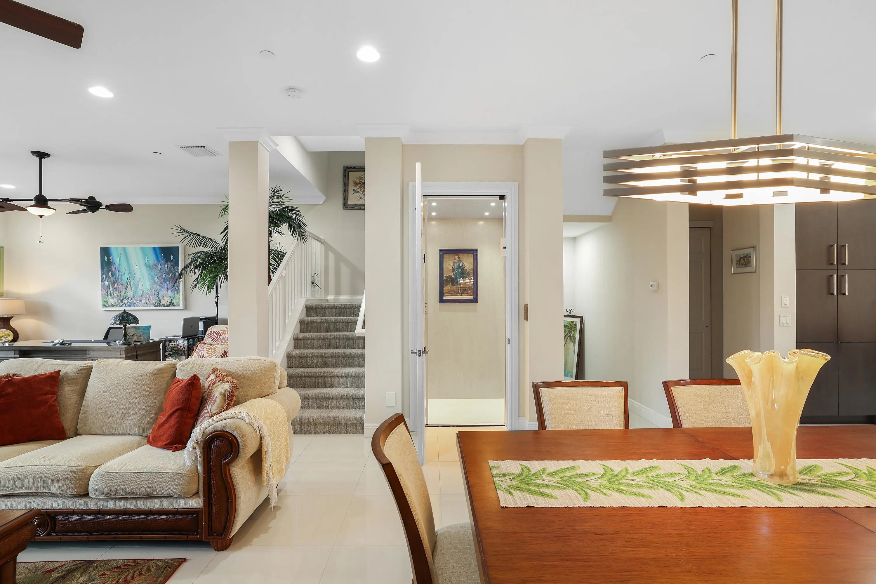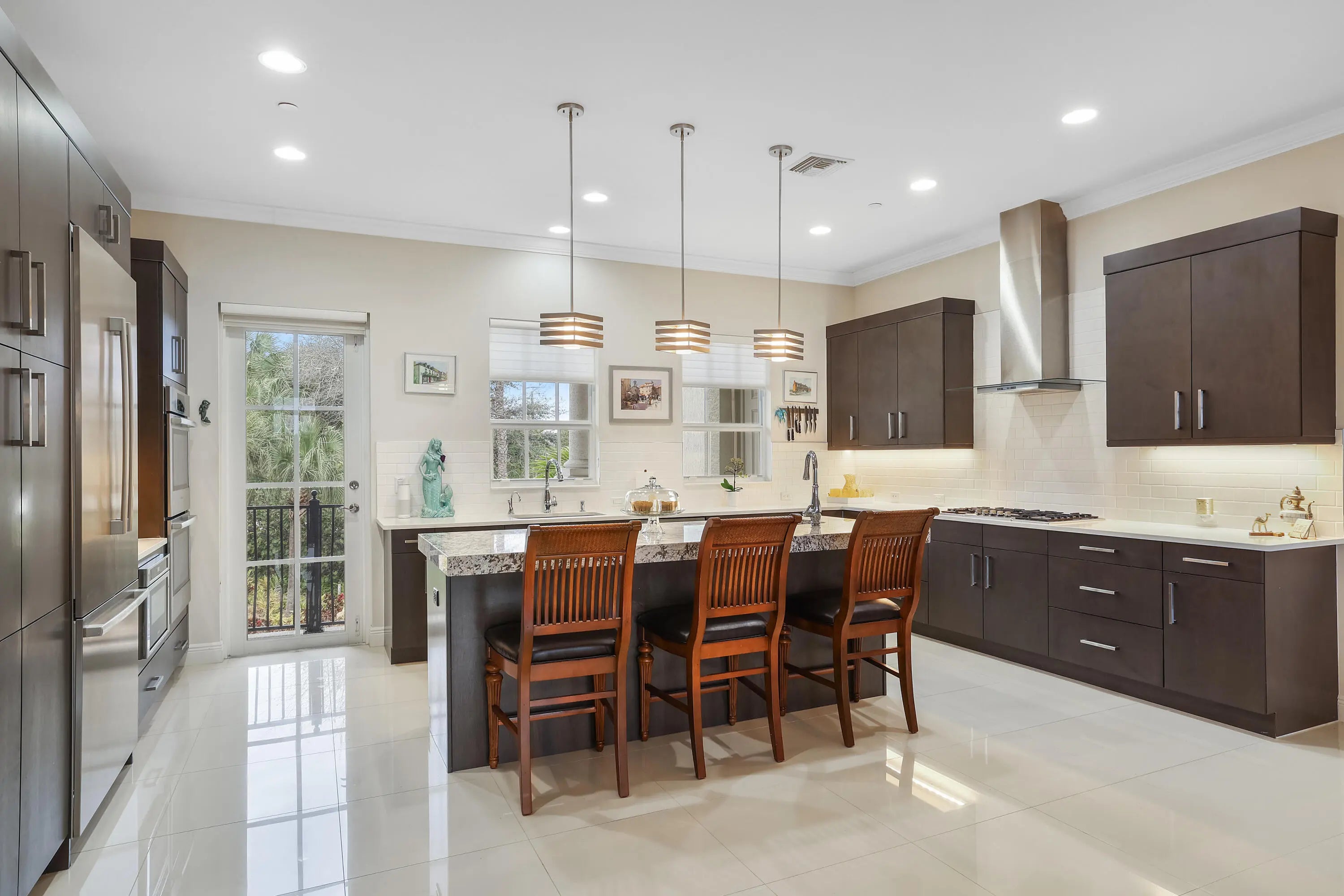 One-of-a-kind luxury residence in Tierra Del Sol, an exclusive non-manned gated enclave of just 20 townhomes in the heart of Jupiter. Perfectly positioned minutes from the ocean with direct access to Jupiter's scenic Riverwalk, this rare offering delivers the ultimate coastal lifestyle framed by tranquil preserve views, breathtaking sunrises, and unforgettable sunsets. Designed with ideal north/south exposure, this expansive 3-bedroom + flex space, 3.5-bath townhouse spans 3,444 square feet across three levels, complete with a private elevator for effortless access. The open-concept interior is highlighted by soaring ceilings—9 feet on the first level, 10 feet on the second, and an impressive 12 feet on the third—creating a light-filled, airy ambiance throughout. Elegant porcelain flooring, custom crown molding and baseboards, impact windows and doors, and Hunter Douglas motorized shades reflect thoughtful craftsmanship at every turn. Multiple balconies on each floor invite seamless indoor-outdoor living, offering front-row views of space shuttle launches, fireworks, and the natural beauty that defines Jupiter living. The chef's kitchen is both stylish and functional, featuring Bosch appliances, natural gas cooking, an oversized island, custom pull-out pantry drawers, built-in lazy Susan, and dual sinksideal for entertaining or everyday living. Occupying the entire third floor, the primary suite is a private retreat with its own balcony overlooking the Riverwalk and preserve, a custom walk-in closet, and a spa-inspired bath with a deep soaking tub. A second en-suite bedroom on the same level offers a Juliet balcony and functions beautifully as an additional primary suite. The laundry room is conveniently located on this floor as well. Notable upgrades include a tankless water heater, fire sprinkler system, blue-light UV A/C whole-home air purifier, security system, and central vacuum. The first floor provides flexible living spaceperfect for a mother-in-law suite, home office, or the option to create a fourth bedroom. Additional highlights include a spacious two-car garage and an outdoor natural gas hookup for grilling. Tierra Del Sol residents enjoy a heated community pool and spa, beautifully maintained grounds, and an unbeatable locationminutes from world-famous beaches, the #1 dog beach, Jupiter Inlet, premier golf clubs, parks, A-rated schools, and walkable access to Harborside Place with its dining, shopping, and entertainment. Convenient proximity to US-1, I-95, and the Florida Turnpike completes the offering. This is a rare opportunity to own a truly special home in one of Jupiter's most exclusive coastal communities. An exceptional residence not to be overlooked.