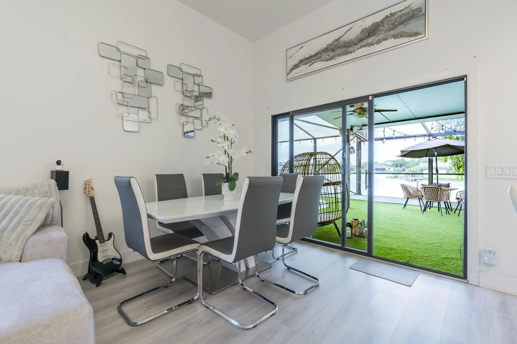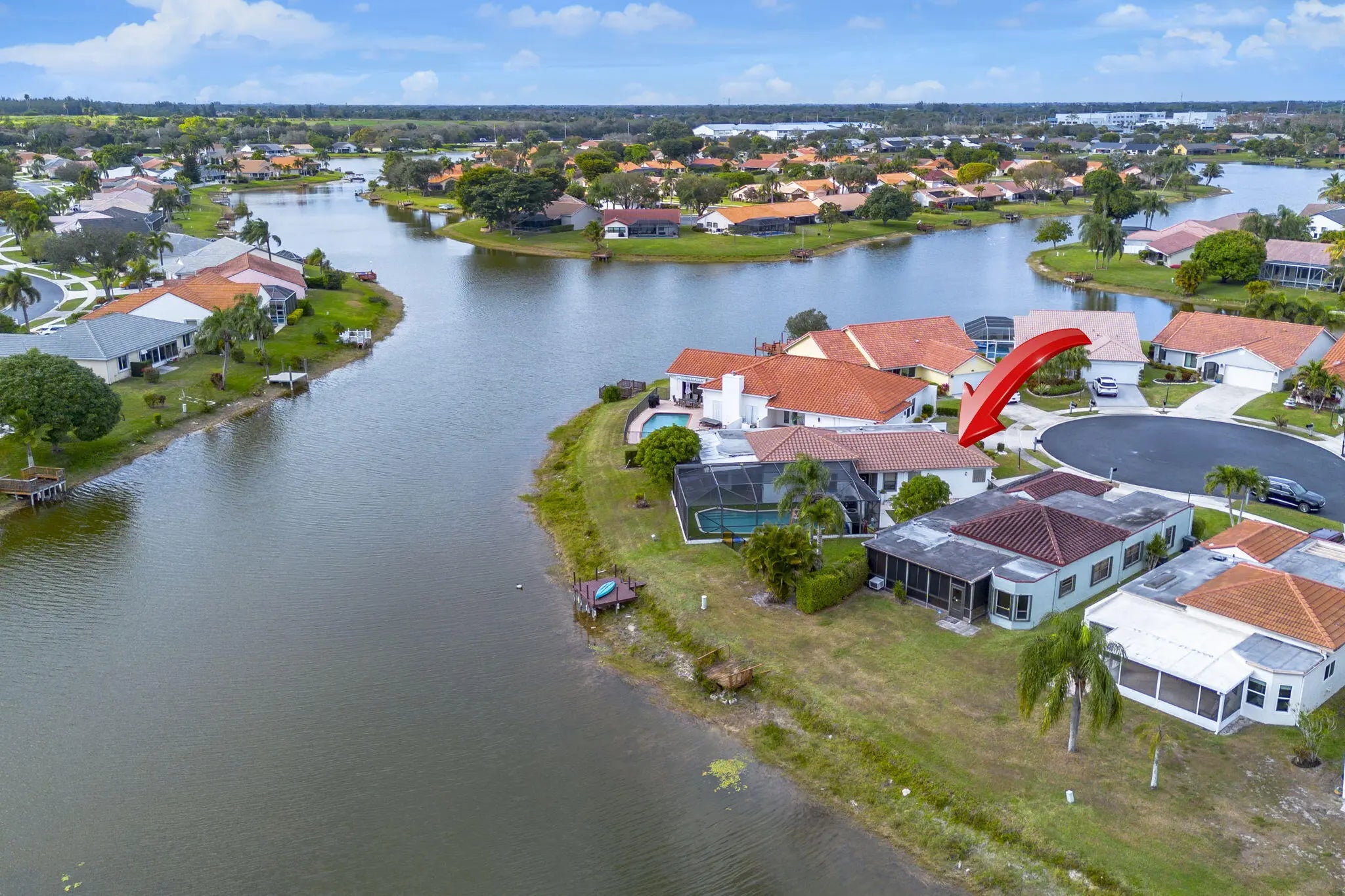 Luxury lakefront living in the gated community of Bonita Isle at Lakes of Sherbrooke. This turn-key 3BR, 2½BA home with private office sits on a quiet cul-de-sac and features a smart, spacious layout with some of the widest lake views. Enjoy a private dock (electric boats allowed), screened heated pool, and lake-fed irrigation for low water costs. Updates: flat roof (2023), main roof (2016), AC (2026), pool heater (1 yr), water heater (2 yrs), impact windows.