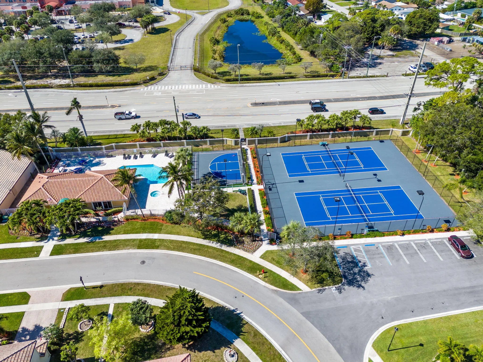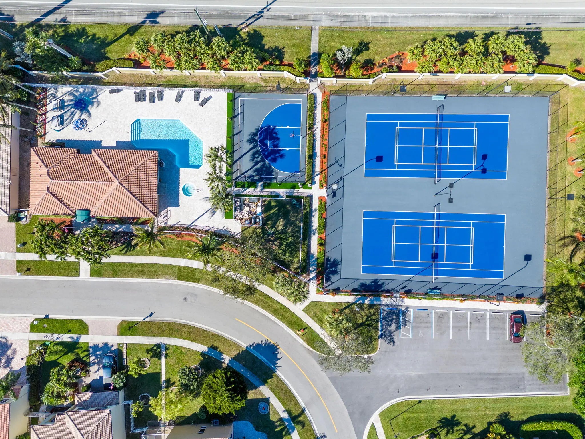 Basketball Court, Clubhouse, Fitness Center, Pool, Spa/Hot Tub, Tennis Court(s), Pickleball Court(s), Street Lights