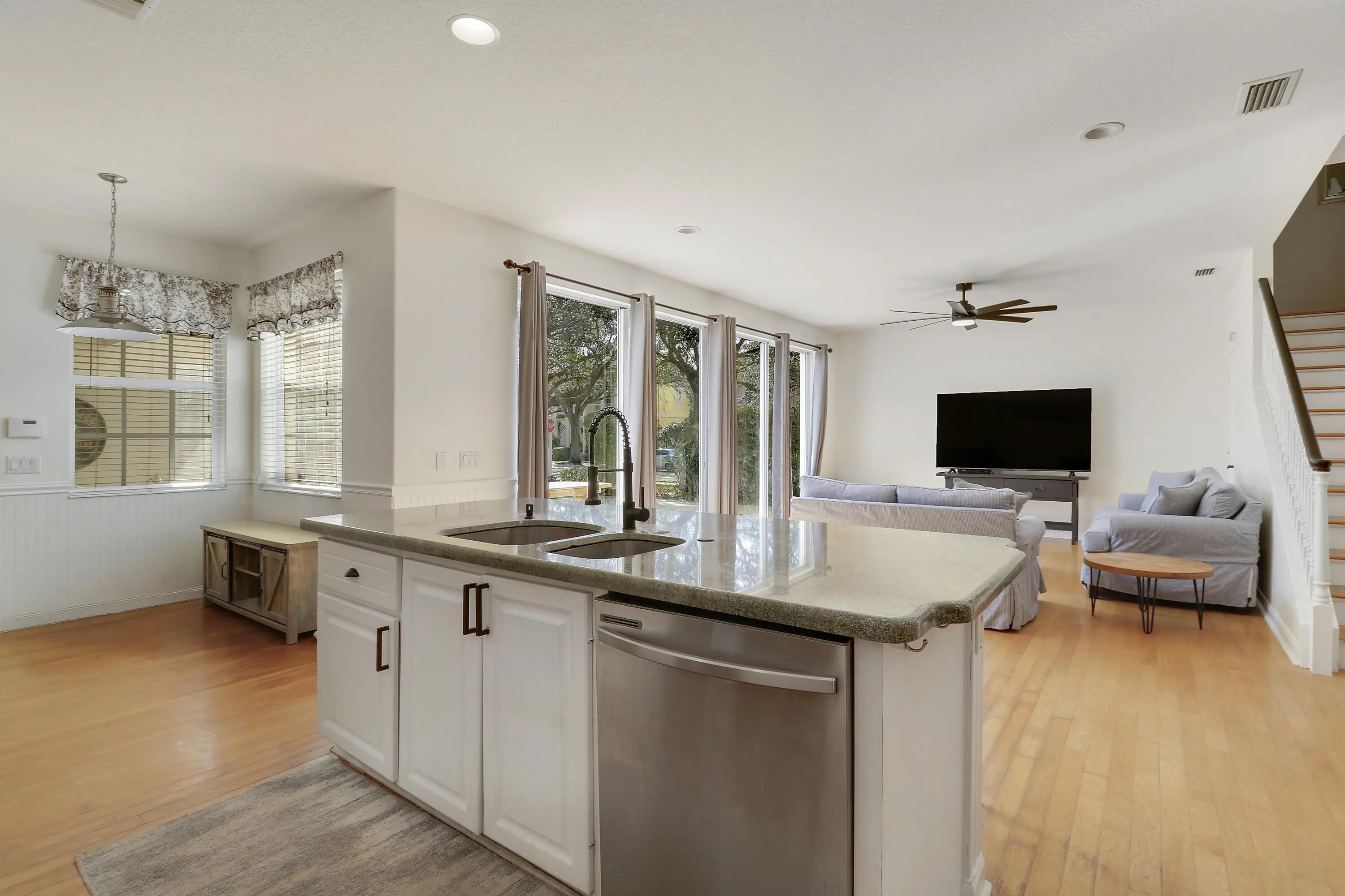 BRAND NEW ROOF December 2025. Come see this spacious 4 bedroom plus den/office, 3 bathroom home situated on a corner lot across from the park and playground area in the lovely community of Cambridge at Abacoa with plenty of room for a swimming pool. Features & upgrades include top of the line Lennox Central heating and air conditioning unit (2023), hot water heater (2023), washer and dryer (2023), new dishwasher (2026), granite kitchen countertops, stainless steel appliances, wood floors throughout both upper and lower levels, a spacious second floor primary bedroom with .. 2 walk in closets, en suite with dual sinks, separate tub and separate shower. The Hoa fee includes lawn and landscape maintenance to the home (not replacement), irrigation, cable & internet, common area pool, playground, clubhouse rentals available, exterior painting of the homes which will be starting in the next few months per the HOA.
