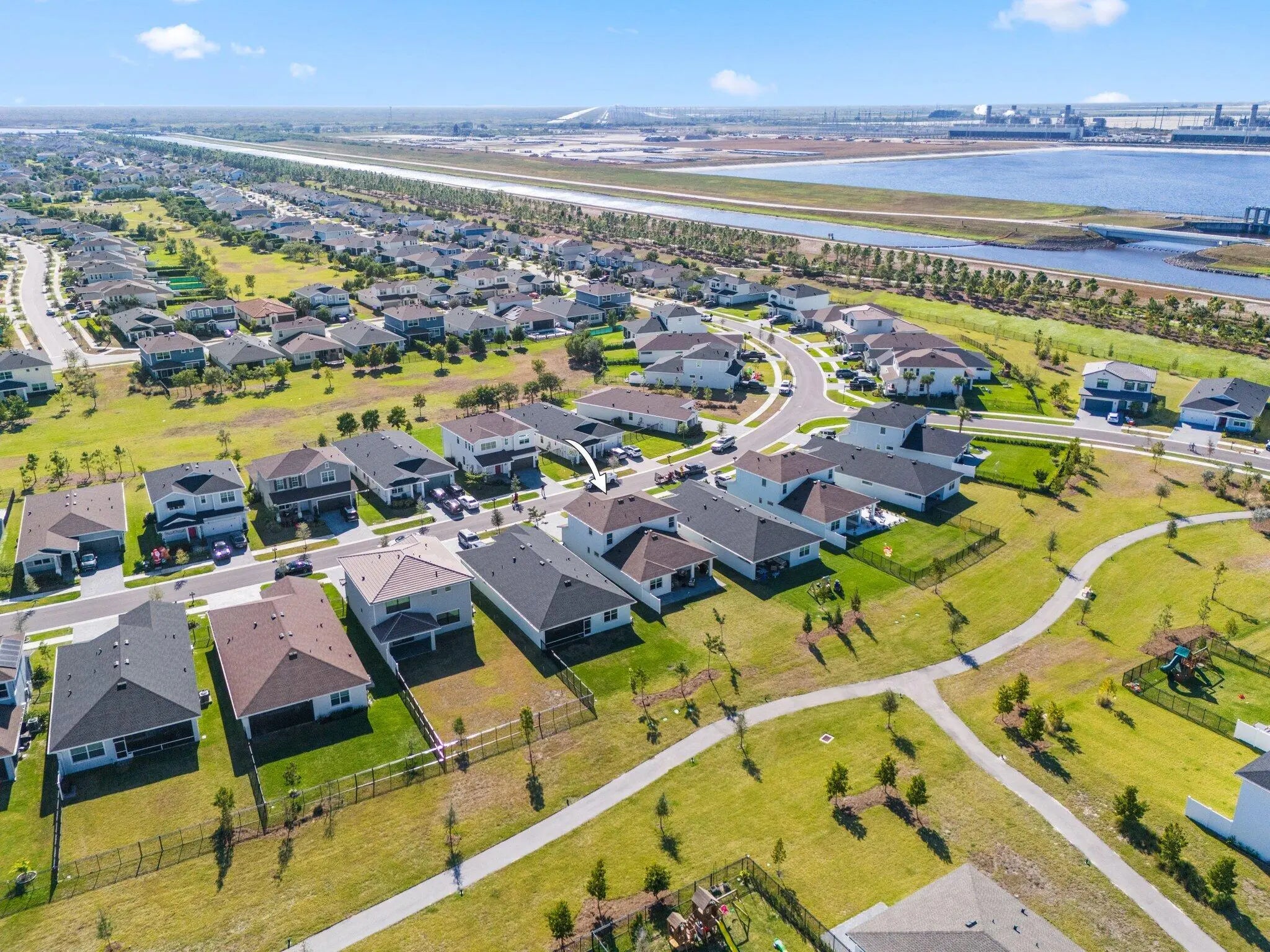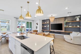 Experience elevated living in the Periwinkle model, a beautifully designed 5 bedroom, 3.5 bath home in the highly desirable Arden community. This residence offers a bright open layout where the gourmet kitchen flows seamlessly into the dining and family areas. Enjoy indoor outdoor living with a covered lanai and extended pavers, perfect for relaxing or entertaining. A stylish study along with custom built ins and accent walls adds both function and charm. Upstairs features a spacious loft and four bedrooms, including a stunning owner's suite with dual walk in closets and a spa inspired bath. Residents enjoy resort style amenities, a clubhouse, scenic trails, and a working farm.
