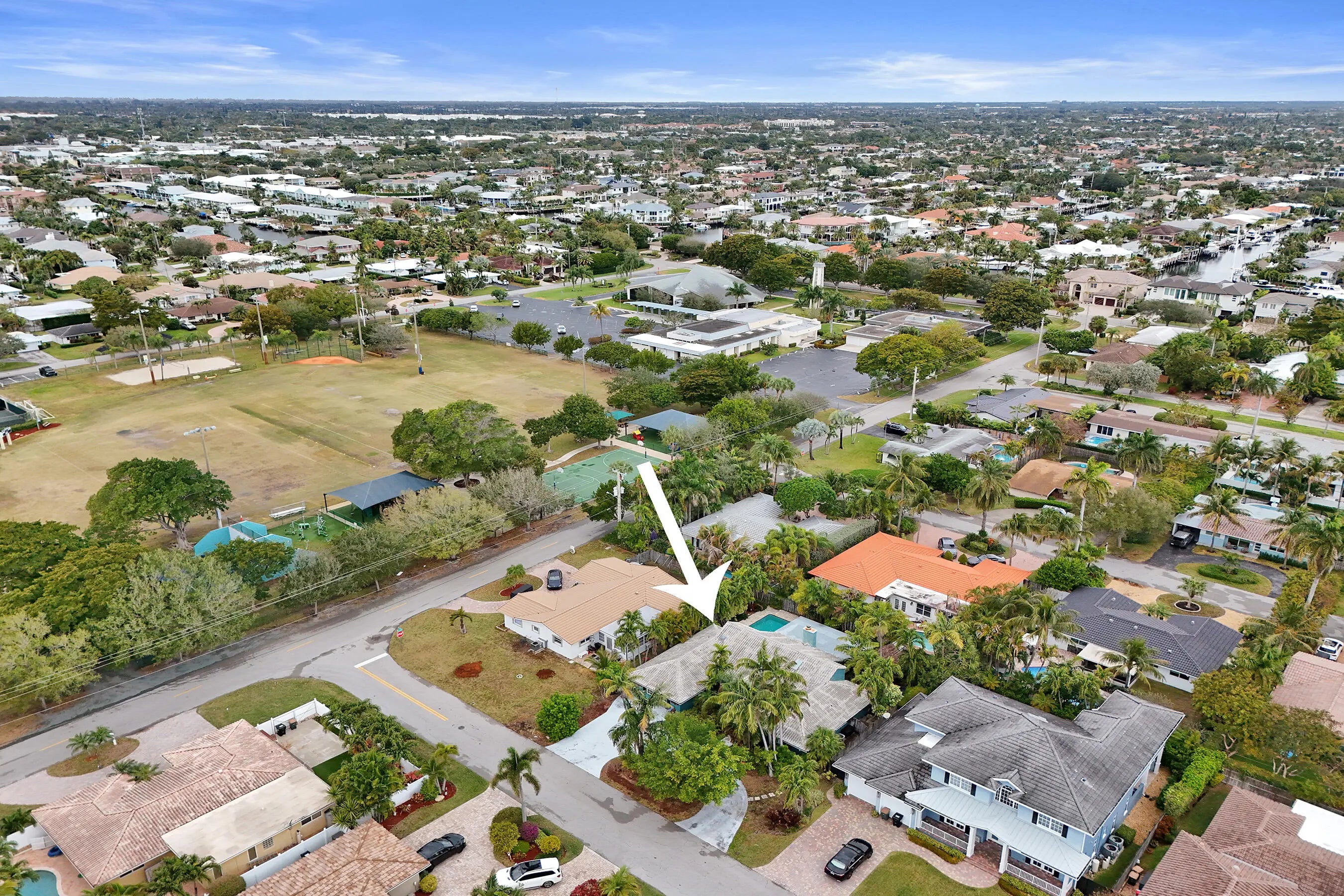Tucked away on a quiet street in the highly sought-after Lighthouse Point neighborhood, this 3BR/2.5BA home offers a rare chance to create your dream home in an exceptional location. Just steps from Lake Placid Park and close to the water, the home features stacked bedrooms, a spacious living area with fireplace, circular driveway, and a versatile game room that can be converted back to a garage. The screened-in lanai opens to a large pool with sundeck and tiki hut, perfect for relaxed coastal living. With great bones and endless potential, this is an opportunity to customize a home in one of the area's most desirable neighborhoods.