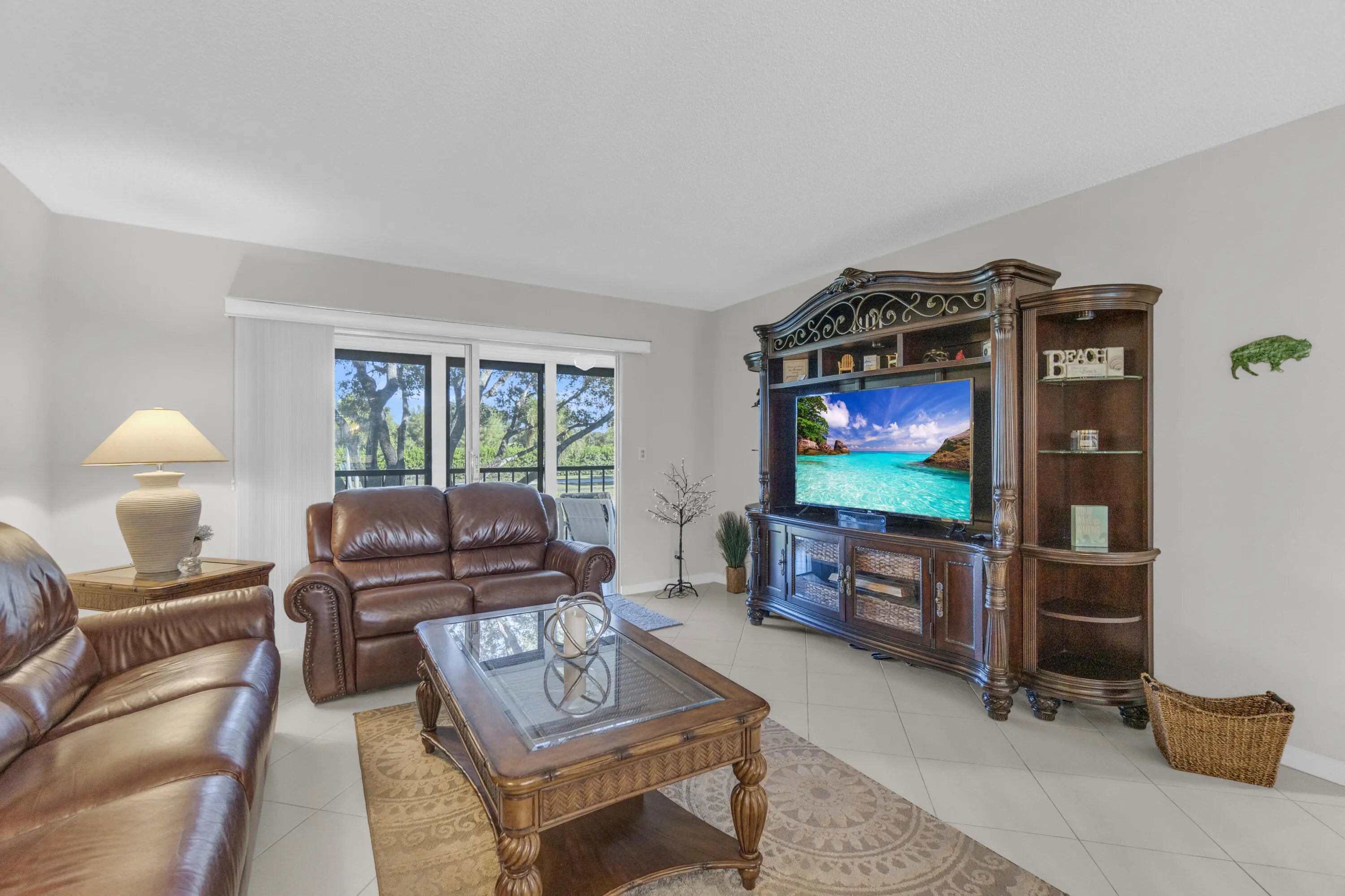 Welcome to this bright and pristine condo. Stunning open kitchen w/ white shaker cabinets, Quartz countertops, Stainless appliances, 2 pantries, and plenty of counter space. Lovely white ceramic tile throughout. Large living-dining area with access to the great enclosed balcony with nice, serene views. Makes for added living space. tastefully decorated main bedroom w/private bathroom. Another nice guest bedroom w/ bathroom. The condo is centrally located in the community. Pool right across the street. Clubhouse is down the street. Section 3 is a great place to live in. Roof is 3 years old. NO SPECIAL ASSESSMENT!!! Don't miss out on the Magnificent renovated clubhouse and sports facilities.. 610 seat theater, 350 seat banquet room, 2 card rooms, billiard room, aerobic and weight rooms, indoor pool, 9 pickleball, 4 Har Tru tennis courts, 3 paddle tennis courts, and clubs galore. Welcome to paradise!!! VERY ACTIVE 55+ COMMUNITY!!!