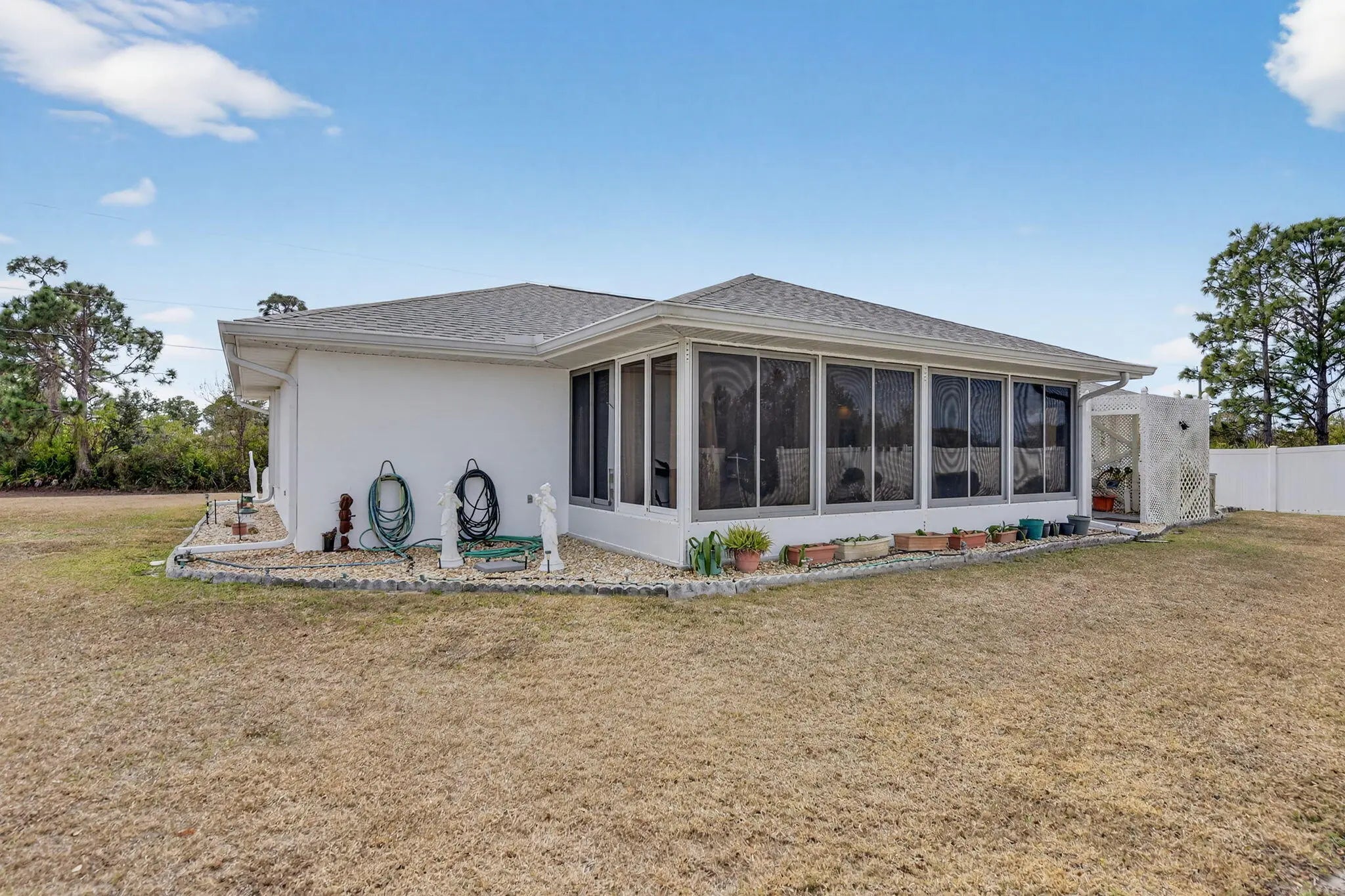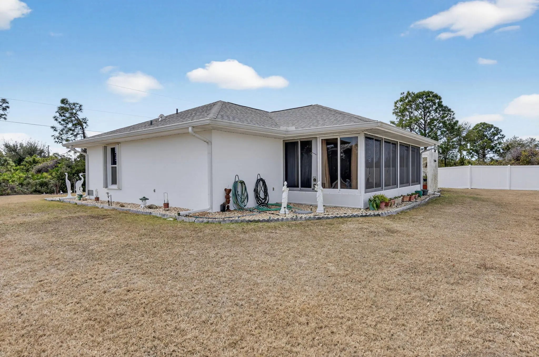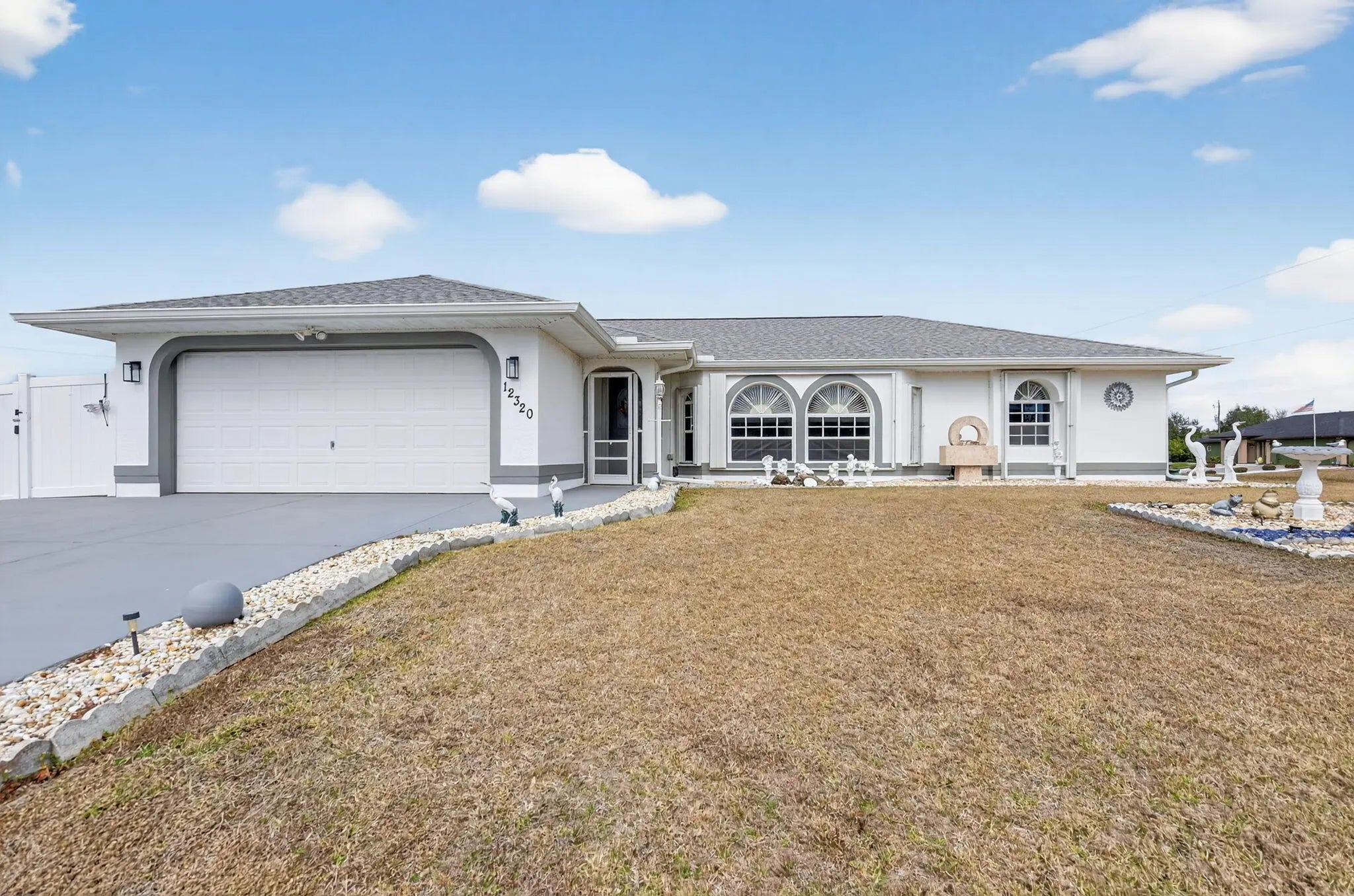 Spacious 3-bedroom, 2-bathroom home with a 2-car garage, ideally located in Port Charlotte with no HOA. Situated on a desirable oversized corner lot, this property offers privacy and plenty of outdoor space. Enjoy tile flooring throughout, vaulted ceilings, and a newer kitchen designed for both style and functionality. Additional features include a brand-new roof, accordion hurricane shutters, an enclosed patio, and a private backyard perfect for relaxing or entertaining. Conveniently located just minutes from local beaches, this well-maintained home offers both comfort and location with no association restrictions.