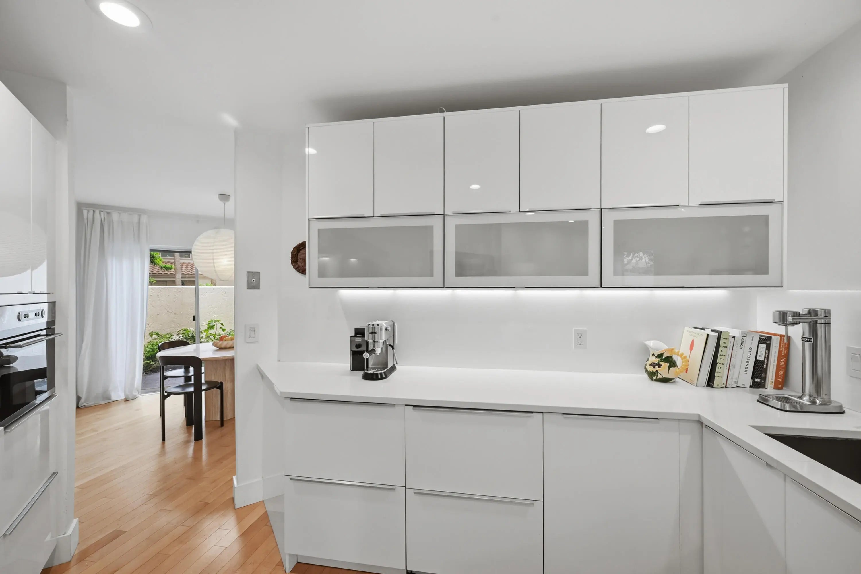Experience modern luxury in the heart of Boca Raton. This stunning 2-bedroom, 2.5-bathroom townhouse in the gated Majorca community has been meticulously renovated w/high-end contemporary finishes, including Mirage wood floors & bright, smooth-finished walls. Main level features an open-concept kitchen w/sleek quartz countertops, stainless steel appliances, & a breakfast bar, flowing seamlessly into a light-filled family room. Expansive windows & vaulted ceilings in the living & dining areas create an airy, voluminous feel. Upstairs, both oversized bedrooms serve as private retreats with en suite bathrooms featuring floating vanities and frameless glass showers. Embrace the South Florida lifestyle in your private backyard or the screened lanai. Majorca offers heated pool & spa on the lake Location: Walking distance to Boca Town Mall, Walgreens and all the conveniences. Minutes to I-95 Protection: Full accordion hurricane shutters and panels Key Updates: Interior (2015), Roof (2006), AC (2024), Water Heater (2024)