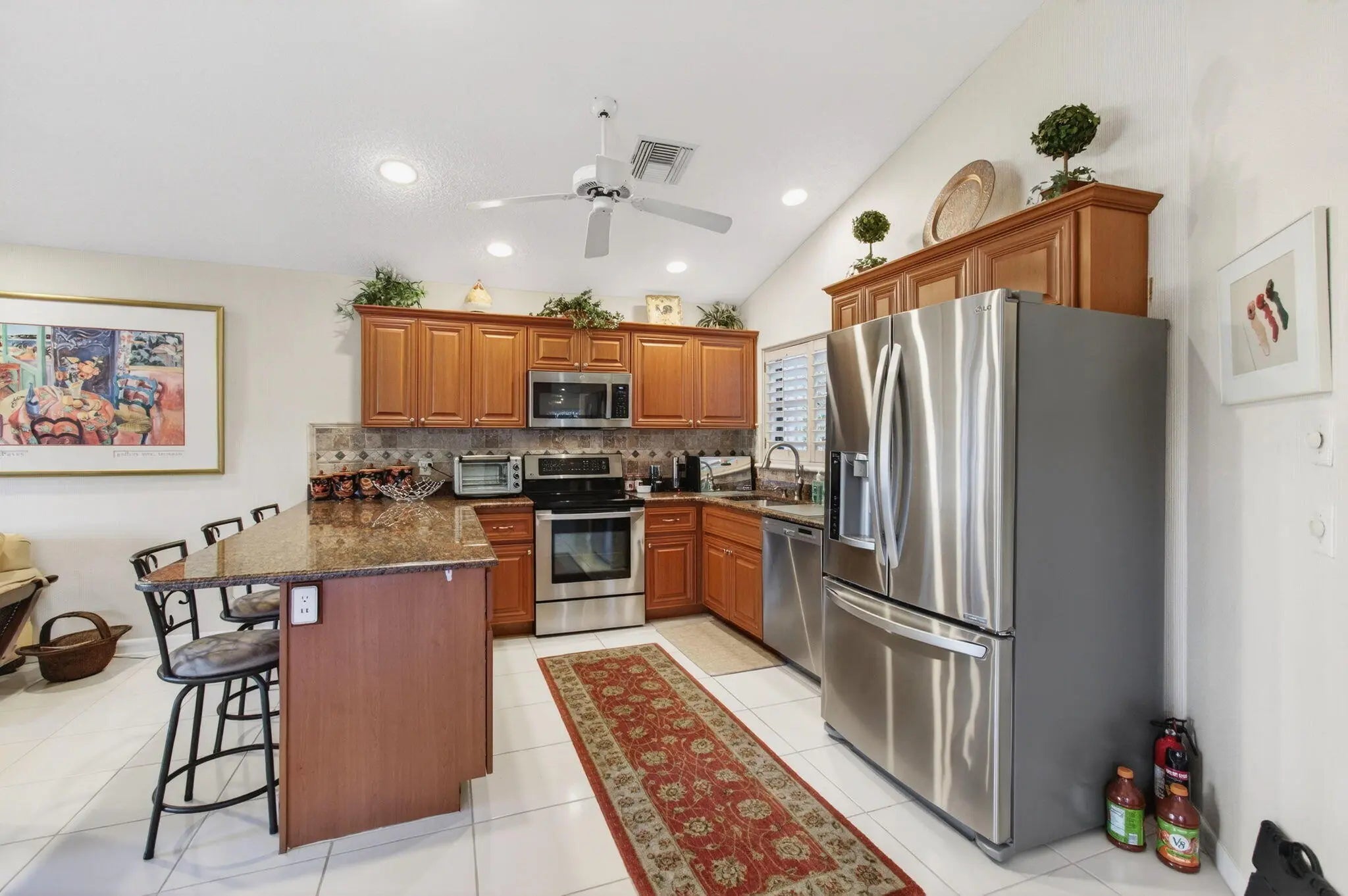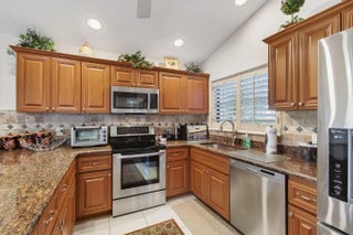 This stunning home was the builders model home. Open floorplan, light and bright with a beautiful golf course view. The large living-dining room has accent mirrors and decorating banding on the wall with slider to the large patio. The kitchen and breakfast area is open to the family room and also has sliders to the patio. The kitchen features wood cabinets, granite counter tops and stainless steel appliances. Huge master bedroom and features a 13 x 6 walk in closet. The guest bedroom is large plus an ensuite updated bathroom. Accordion hurricane shutters, AC 2019, Water heater 2014, Roof 2011. WALK TO HOUSES OF WORSHIP. Laurelwood has a clubroom for social gatherings & community pool. Membership is also available at the Indian Spring Country Club. Seller requests a middle of May closing