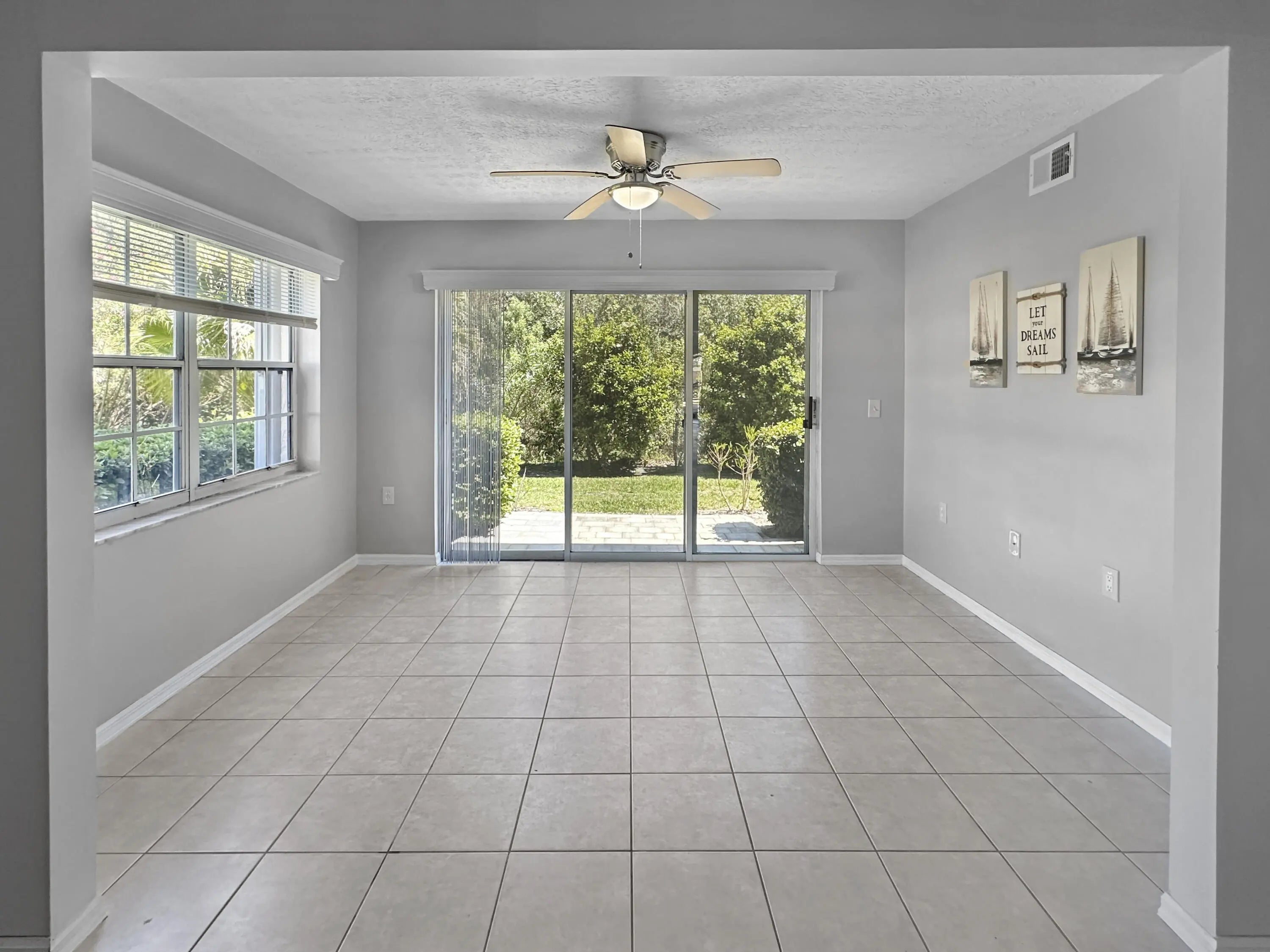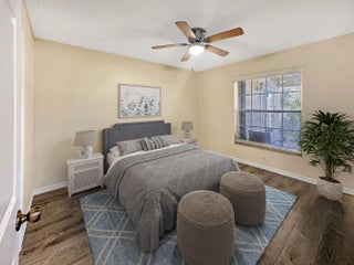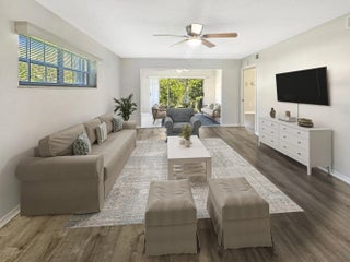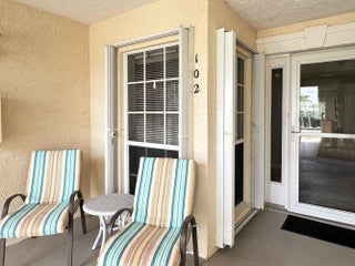 Discover the epitome of comfort and serenity in this elegantly appointed two-bedroom, two-bath condo, tailored to provide the perfect blend of luxury and tranquility. Nestled in a vibrant 55+ gated community, this first-floor unit offers an unparalleled living experience with a backdrop of lush mangroves leading to the Indian River. With recent painted interior, newer laminate flooring and ceramic tile flooring, it sets the stage for a life of ease. An inviting foyer unfolds into a spacious living room, an elegant canvas for your personal touch. The dining room is conveniently located off the updated kitchen, which boasts granite countertops, a tiled backsplash, refaced cabinets, and a brand-new refrigerator. Sleep in peace in spacious master suite, featuring walk-in closet, fully updated bathroom including a granite vanity and custom-tiled walk-in shower. The guest bedroom also offers a generous walk-in closet and updated guest bath, which can be closed off to create an ensuite. The enclosed Florida room, an ideal spot for entertaining or solitude, leads to a private backyard with a brick paver patio, the perfect nook for morning coffee and wildlife enjoyment. Additional appointments include an oversized laundry closet and additional storage room, newer A/C, hot water heater, and the added security of accordion shutters and the elegance of wood window valances. Grove Isle offers unmatched amenities such as a kayak launching ramp, a 46-acre nature preserve, with Nature Trail that leads to an observation deck and picnic area with the beautiful Indian River as back drop. Grove Isle is a community rich with activities and social opportunities. Convenience is at your fingertips, with shopping, dining, parks, beaches, the Vero Beach Regional Airport, and major roadways all within easy reach. Embrace this rare opportunity to live in a haven of elegance and charm, where every day feels like a tranquil retreat.
