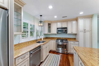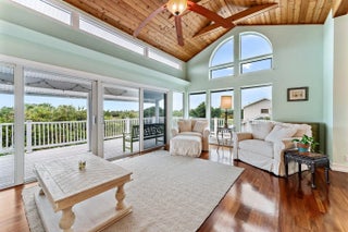 Nestled within the exclusive gated Jupiter Beach community of Xanadu by the Sea, this rare three-bedroom plus den home sits on one of the most desirable lots in the neighborhood, overlooking Carlin Park and the preserve beyond. Imagine walking to your favorite beach anytime you please & dog lovers enjoy a walk on the Jupiter Dog Beach. The open-concept kitchen and living area flow effortlessly to a covered wraparound balcony with peaceful park views--perfect for morning coffee or evening dinners. Vaulted tongue-and-groove ceilings, walls of sliders, and expansive windows fill the living space with natural light and showcase the surrounding greenery. The kitchen offers a large island, solid wood cabinetry, and generous storage. A private walkway provides direct access to Carlin Park, offering pickleball and tennis courts, an amphitheater, and a fitness trail. Jupiter's best restaurants and shops are just minutes away, and dog-friendly Jupiter Beach is an easy five-minute stroll. New Whole Foods is opening soon for pleasant shopping experience. This is coastal living at its best in one of Jupiter's most sought-after gated communities.The home features three bedrooms, a dedicated office or den, and three full bathrooms. The spacious primary suite includes dual sinks and a walk-in shower with frameless glass door. A private slider opens to the side yard, which is large enough to accommodate a pool. Pavers wrap around the rear of the home for easy maintenance. Wood flooring runs throughout, and the oversized laundry room includes a dog door and access to the fenced yard, ideal for pet owners. The finished garage features an epoxy floor and ample space for bikes, kayaks, and even a motorcycle. Additional highlights include impact-resistant windows, a new standing-seam metal roof, and fresh exterior paint completed in 2024.