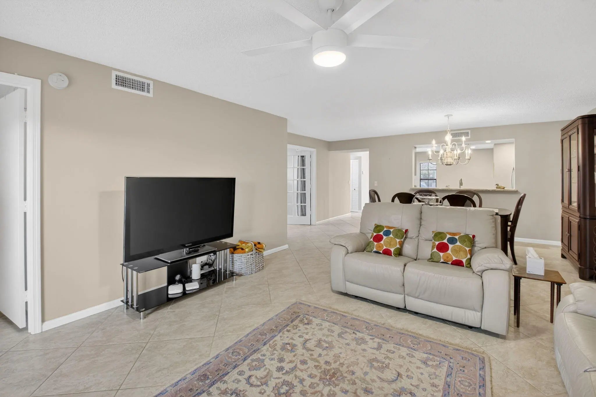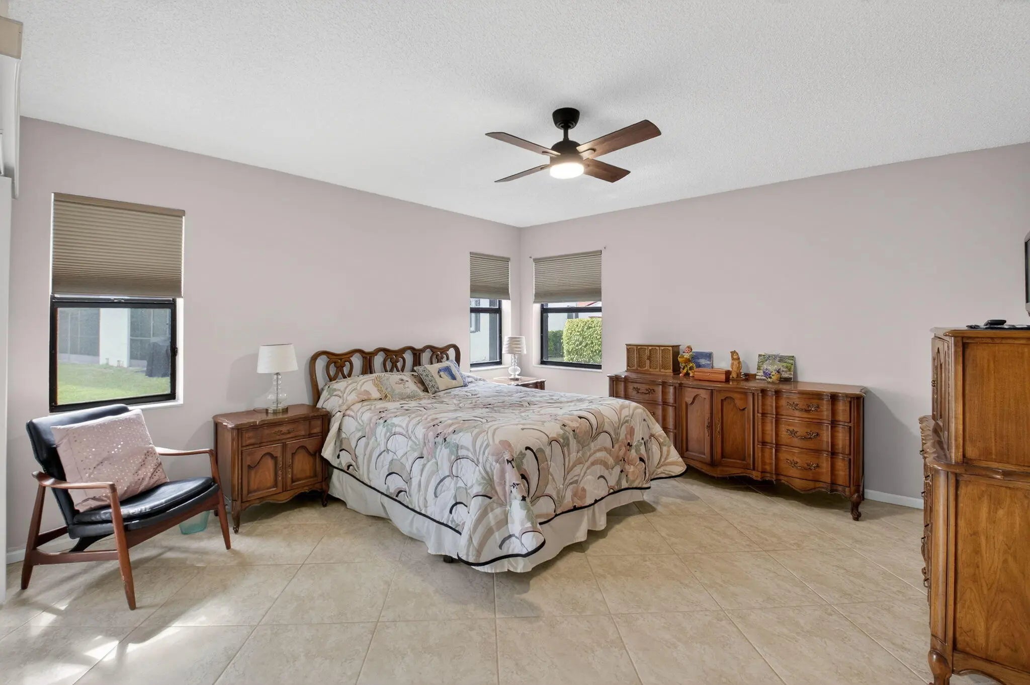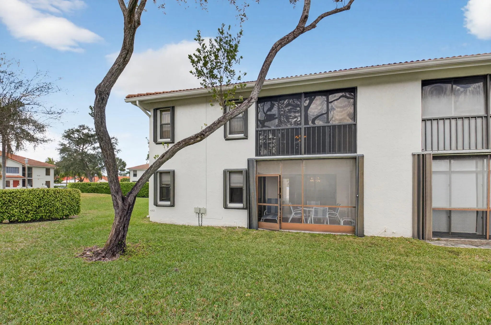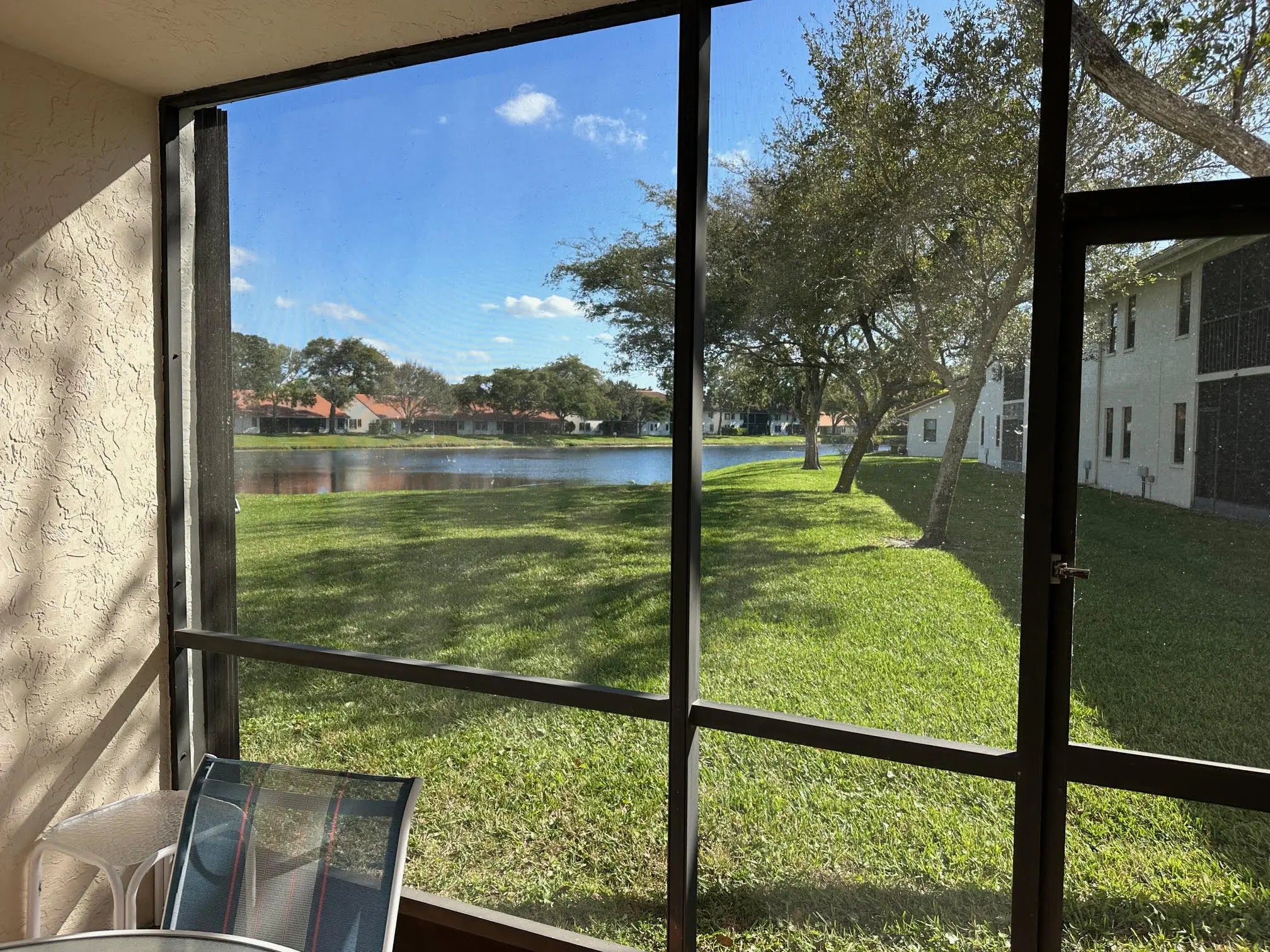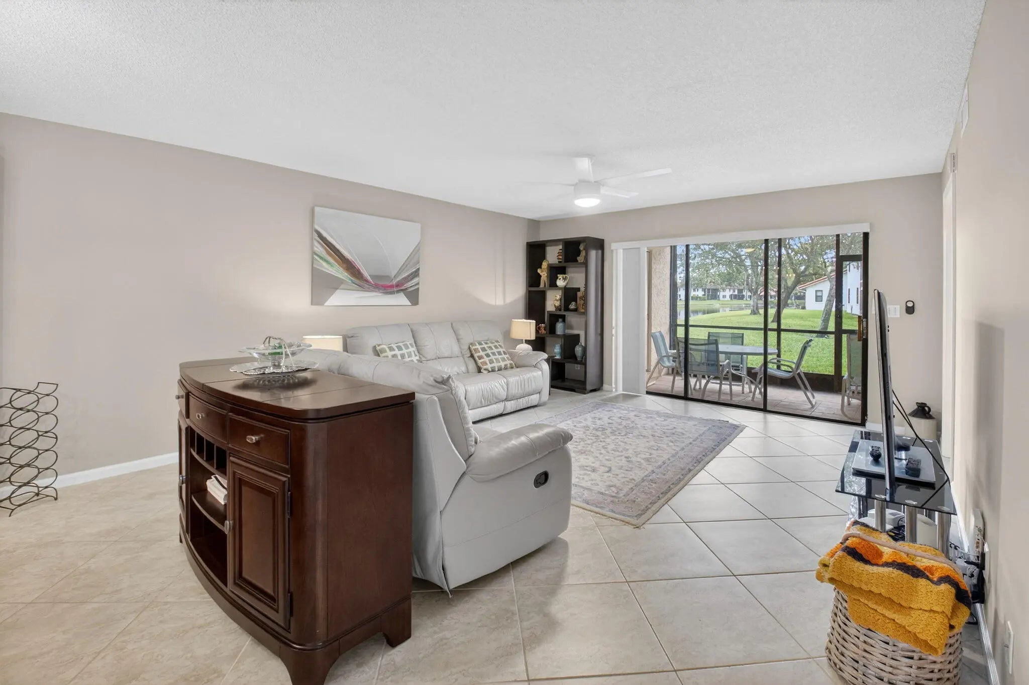 This beautiful updated 3-bedroom, 2-bathroom 1st floor condo is spotless move in ready. The location is perfectly situated on a corner lot, that overlooks lake views from the screened patio and green space from the front private courtyard. The split floor plan ensures privacy, with a walk in closet and private updated ensuite in the primary bedroom. Additional closet in the primary along with lots of storage. Furniture on site is negotiable Sun Valley East is an active 55+Community that offers a wealth of amenities, including a fitness center, pickleball and tennis courts, billiards, social events, water aerobics, and more. The HOA fee includes water, internet, cable, alarm, roof maintenance and more Don't miss out on this exceptional opportunity to own a slice of paradise