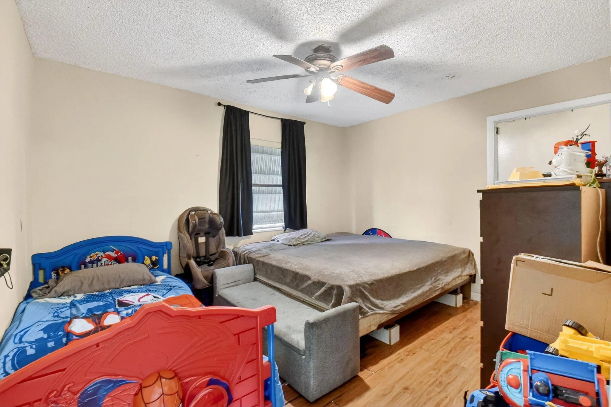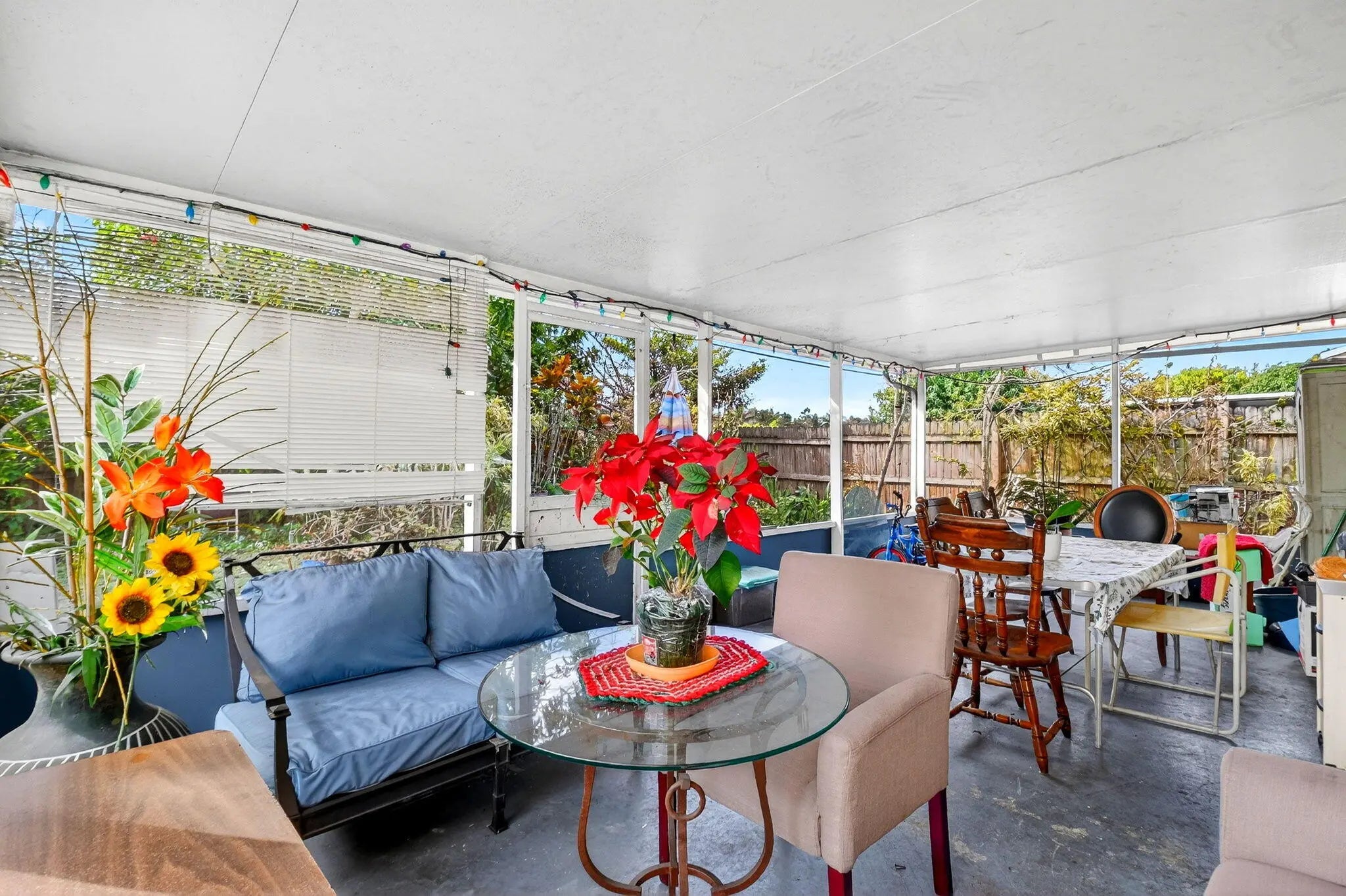 Welcome Home to this Spacious 4-bedroom, 2-bath single-family home featuring a 2023 roof and a 1-car garage. The flexible fourth bedroom (no closet) is ideal for a home office, guest room, or den. Enjoy outdoor living on the screened-in patio overlooking a fenced backyard—perfect for entertaining or relaxing. A large driveway provides ample parking, and the low HOA adds to the home's appeal. Located in a desirable area just minutes from local shopping, dining, beaches and everyday conveniences, with easy access to major highways for a smooth commute.