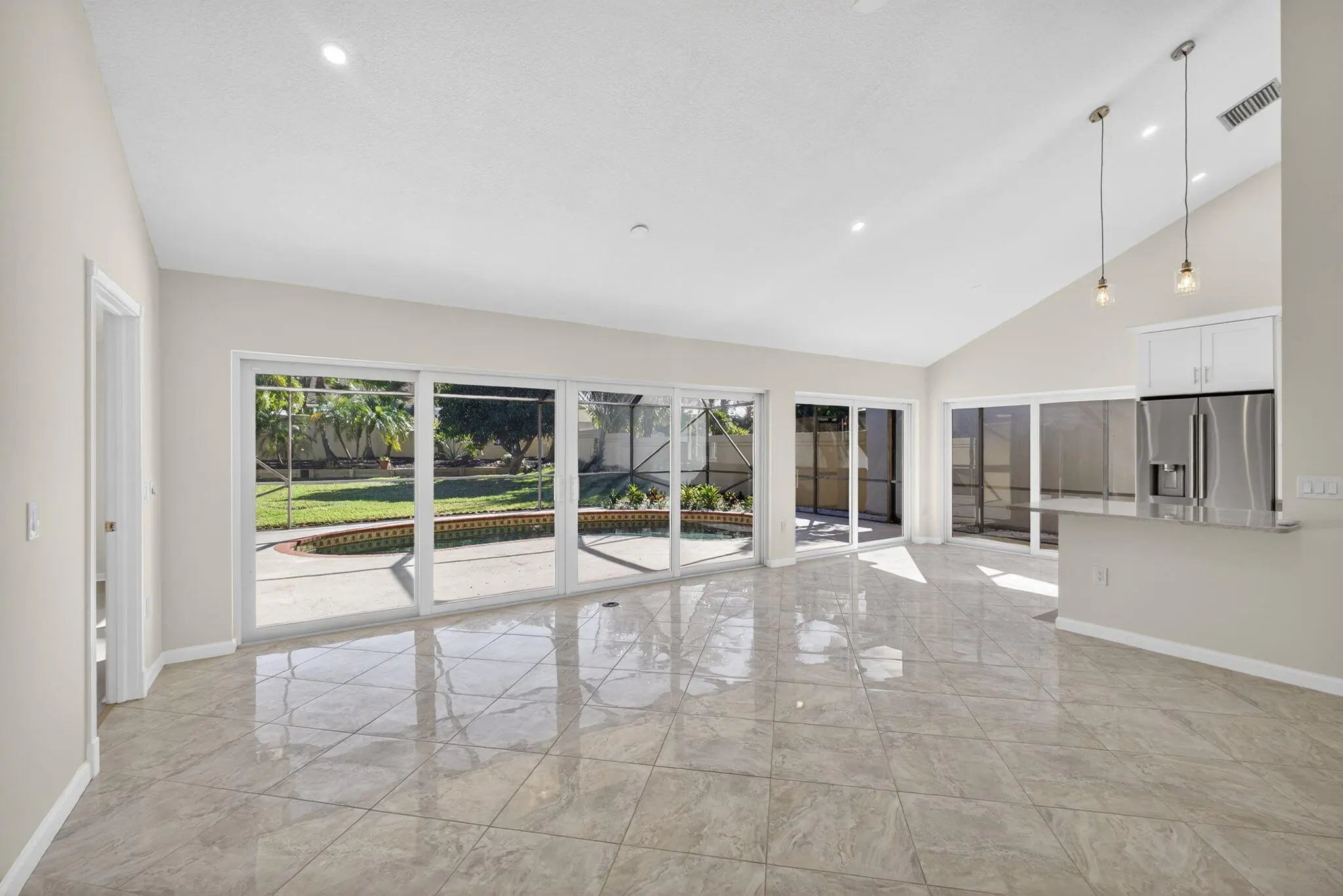 3/2/2 Bluffs Pool Home Renovated with Oversized Screen Enclosure on Large, Private Tropically Landscaped Yard. The Extended Den/3rd bedroom with Hardwood Floors & Stairs to Loft w/Large Window. Diagonal Tile Throughout Living Area. Kitchen has New SS appliances, Cathedral Ceilings in Living Room. Close to Community Pool, Tennis, Basketball & Easy Walk to Beach, Juno Pier and Park, Shopping & Restaurants. Pool and Lawn Service Included in Rent. NO SMOKERS!