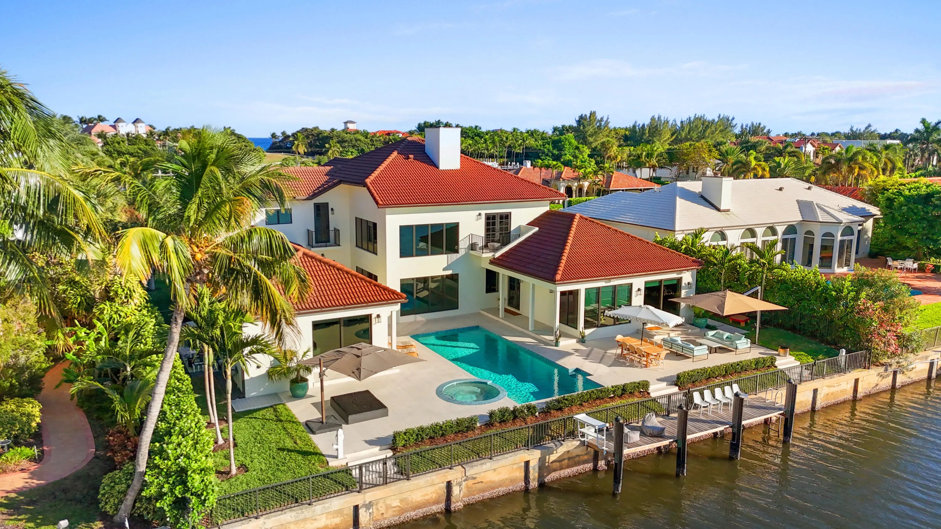 A RARE OFFERING IN POINT MANALAPAN! RENOVATED WATERFRONT MASTERPIECE! This home has been reimagined with uncompromising quality and design. Gorgeous new kitchen with oversized marble island, Miele appliances, full house water system, new dock and seawall, heated pool, three car garage, 100 feet of water frontage and so much more! Tucked away on a quiet, private Culdesac, this exceptional property blends luxury, privacy and premier waterfront living. Ownership at Point Manalapan has privileges including access to La Coquille, the members only beach club within nearby Eau Palm Beach Resort & Spa that offers everything from oceanfront cabana service to world class dining.