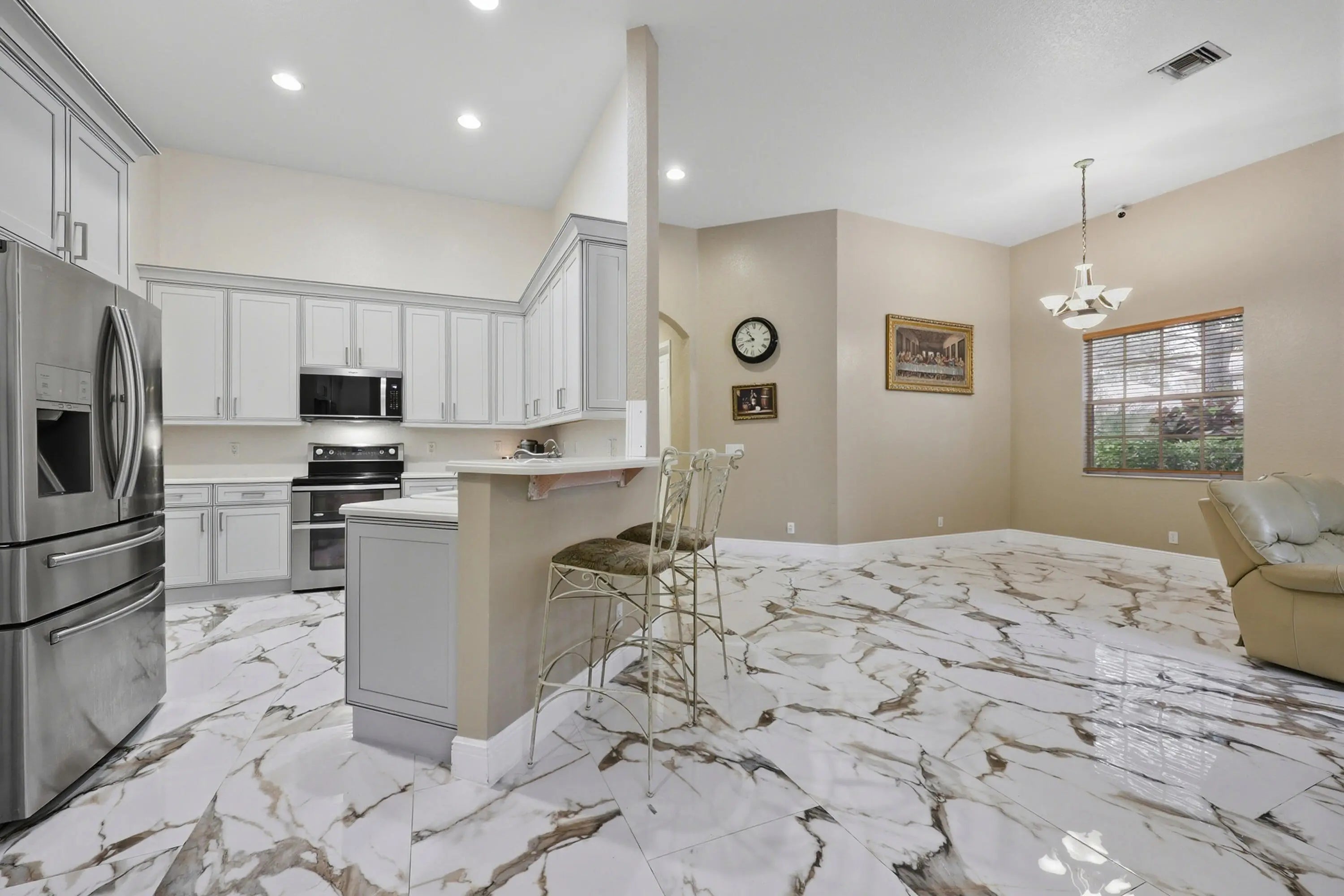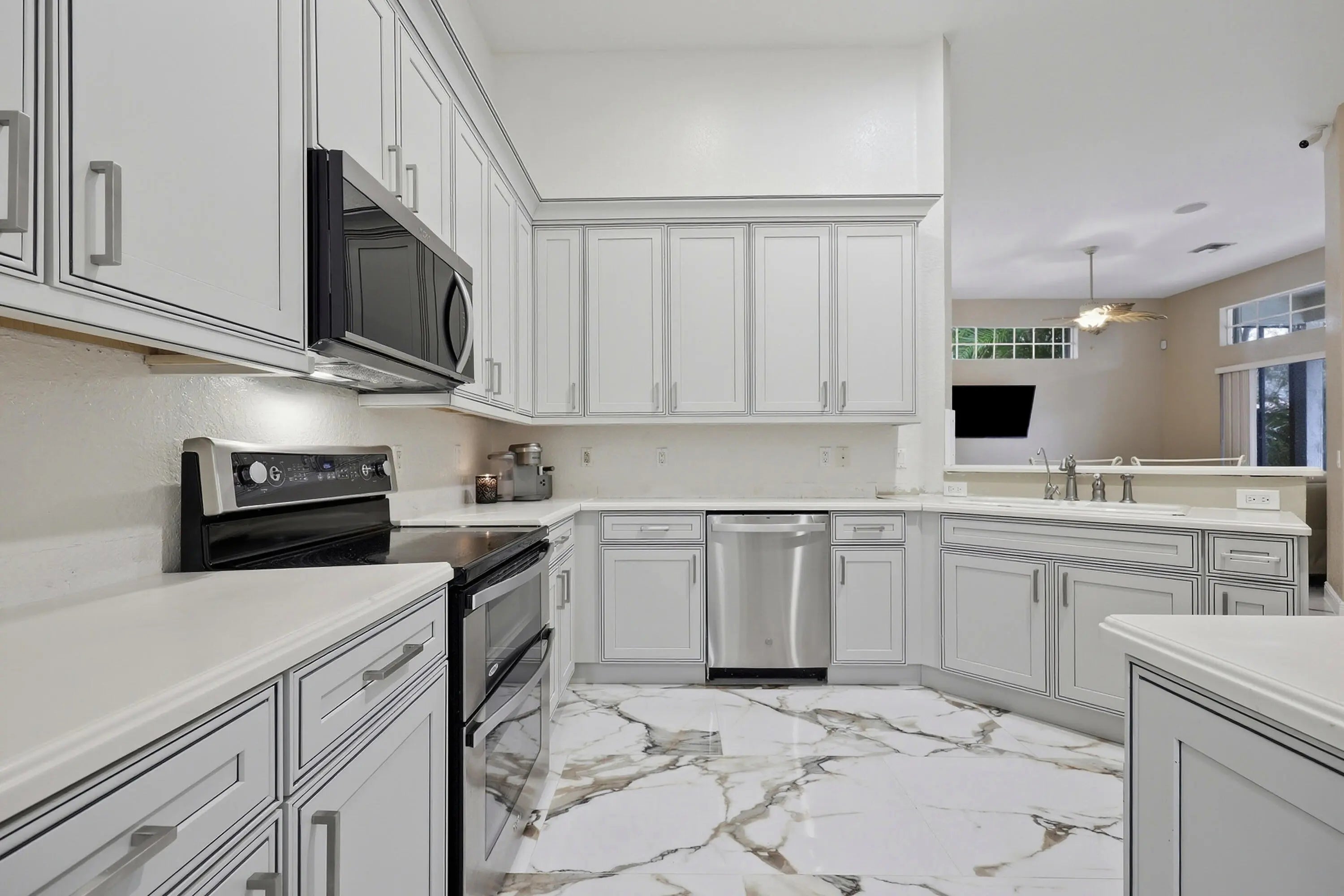 Move right into this spacious, open floor plan 4 bedroom, 2.5 bath home located in the heart of Abacoa. Freshly painted throughout, this home features brand new kitchen cabinets, fresh landscaping, and a screened patio with a pool - perfect for relaxing or entertaining yearn round. Enjoy the charming curb appeal with a quaint wrap around front porch, tree lined streets, and the added bonus of being directly across from the park. A rare combination of comfort, style, and location in one of Jupiter's most desirable neighborhoods.