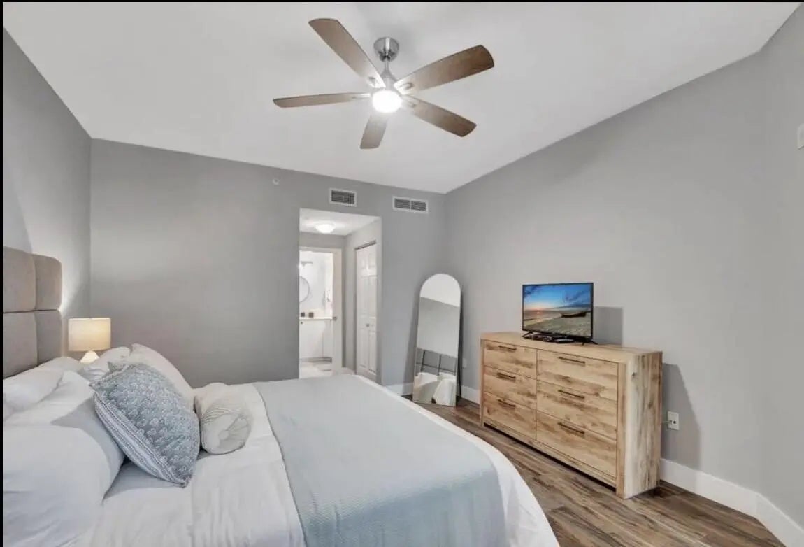 This clean comfortable coastal modern condo is located minutes from the beach and is waiting for you to experience the resort style community of The Moorings! Fresh paint, new floors, new furniture along with new towels and anything you need is fully equipped. Enjoy the option of 2 sparkling pools for the nice sunny days. Community also has a business room with 2 desks and a conference table, billiards, club room, library and fitness center, 24 hour security! Available for short term or mid term rental. Book your stay today!