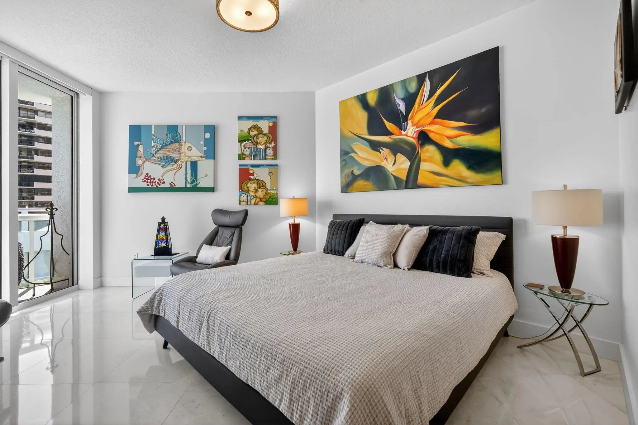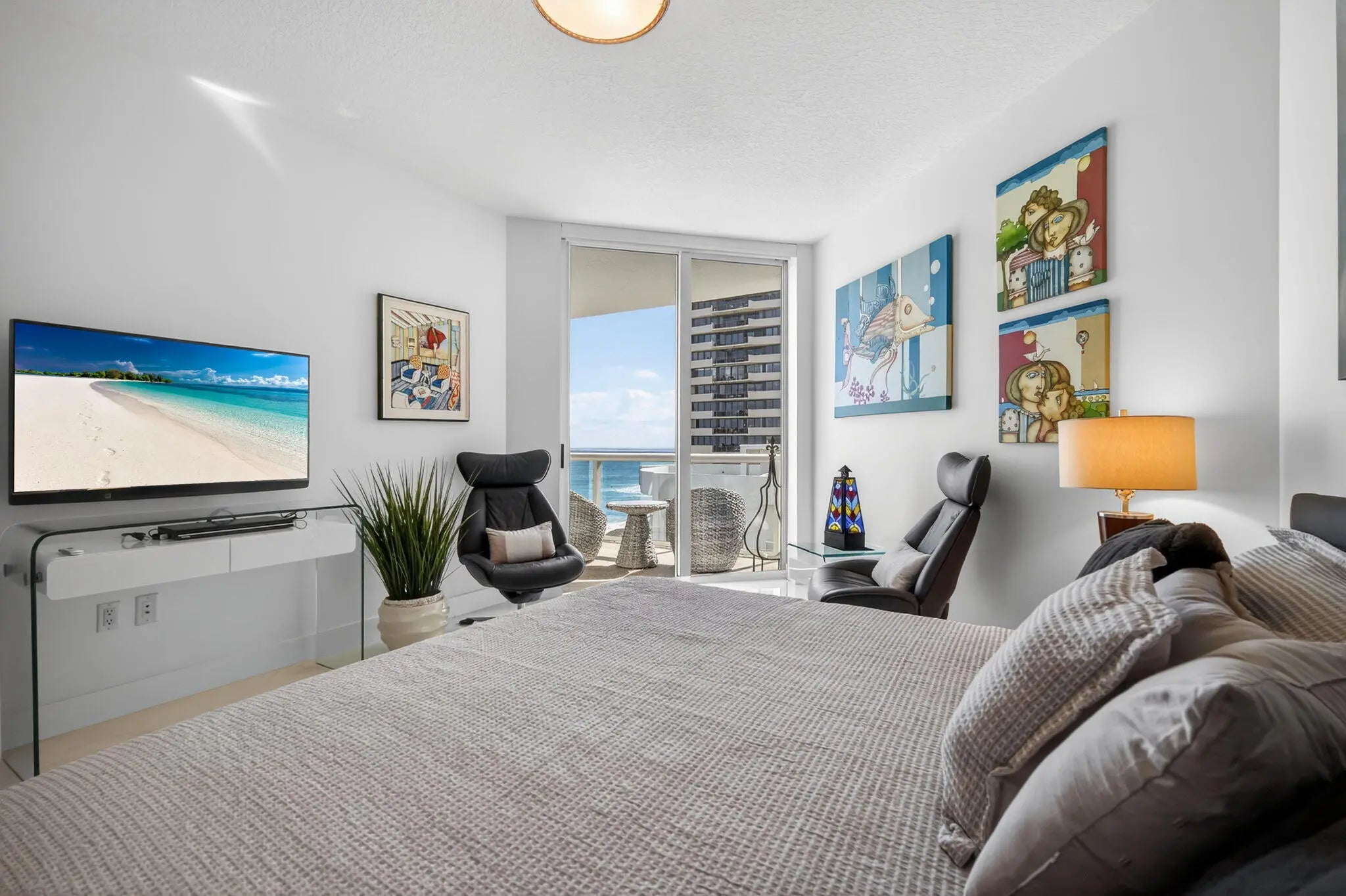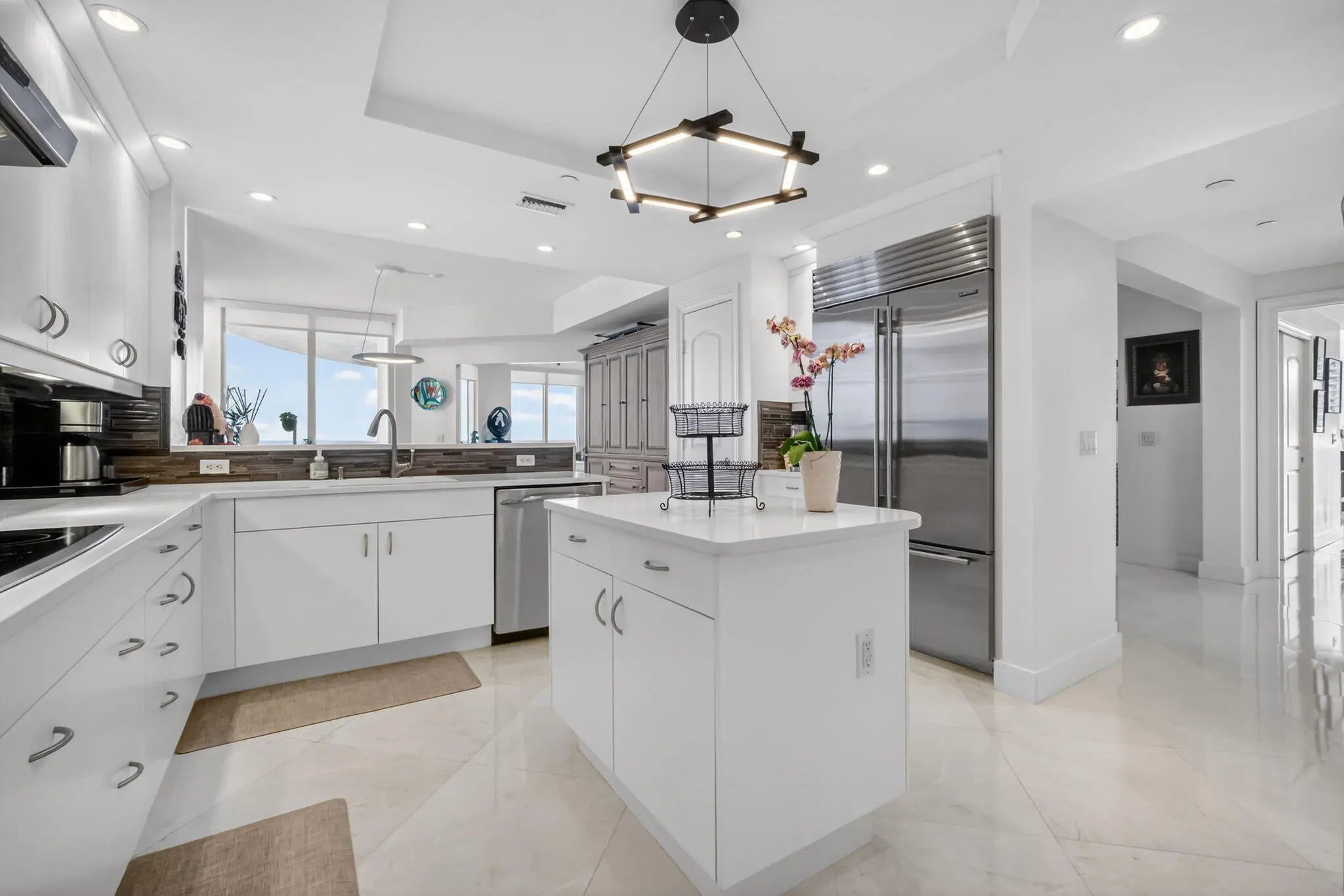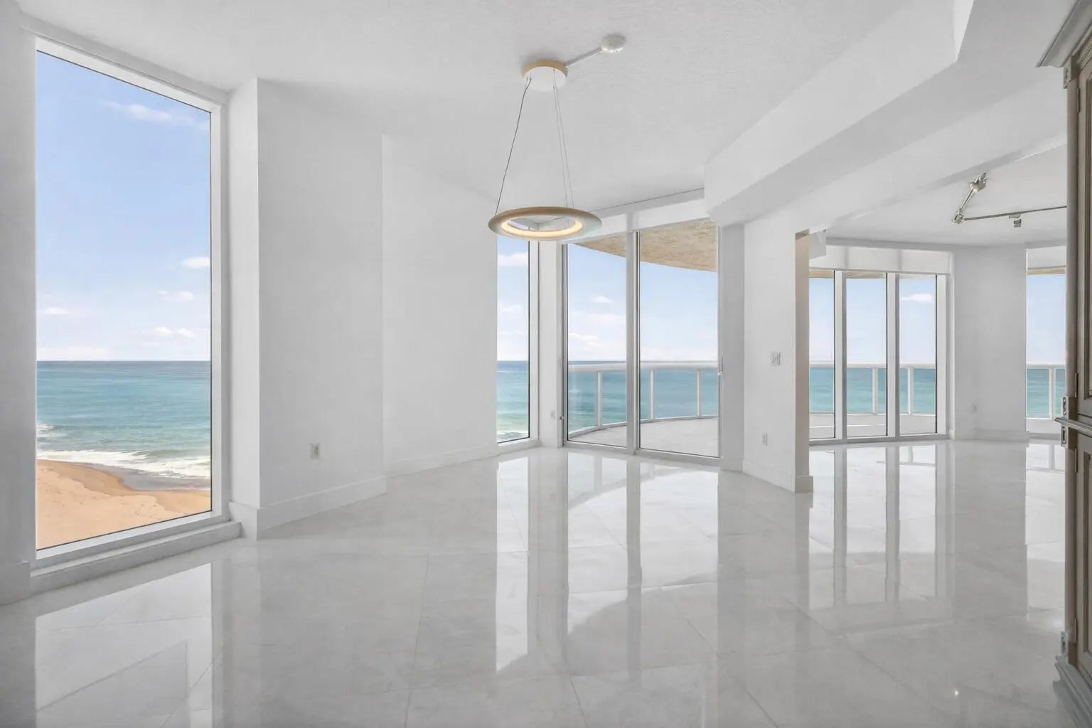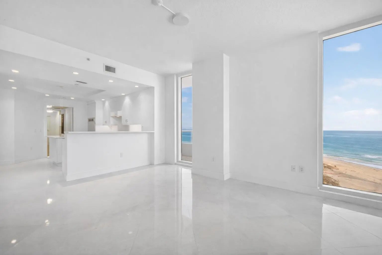 Now vacant and ready for you to furnish in your own style. Beautiful direct oceanfront 3BR, 3.5BA residence with unobstructed ocean views. Over $150,000 in renovations including 24-inch marble flooring throughout the interior and 24-inch porcelain tile on all balconies. Updated kitchen features Sub-Zero refrigerator, quartz countertops, tile backsplash, and tiled peninsula walls. 3 custom closets, upgraded designer lighting, and neutral paint create a clean interior ready to furnish to your taste. Boutique building with only 3 residences per floor, private elevator to foyer, newly redecorated common areas, manned gate, concierge, beach access, pools, fitness center with His and Her Saunas and changing rooms, theater, and social room. No assessments due. Recently replaced microwave/convection oven, HVAC units and Hot water heater and Living and Dining Room blinds. Private Trash shoot in Laundry Room. storage space 25 Parking spaces 114 (deeded) and 89 All sliding doors: rollers and locks replaced 2 cabinets remain in LR and Breakfast room and all TV's remain.