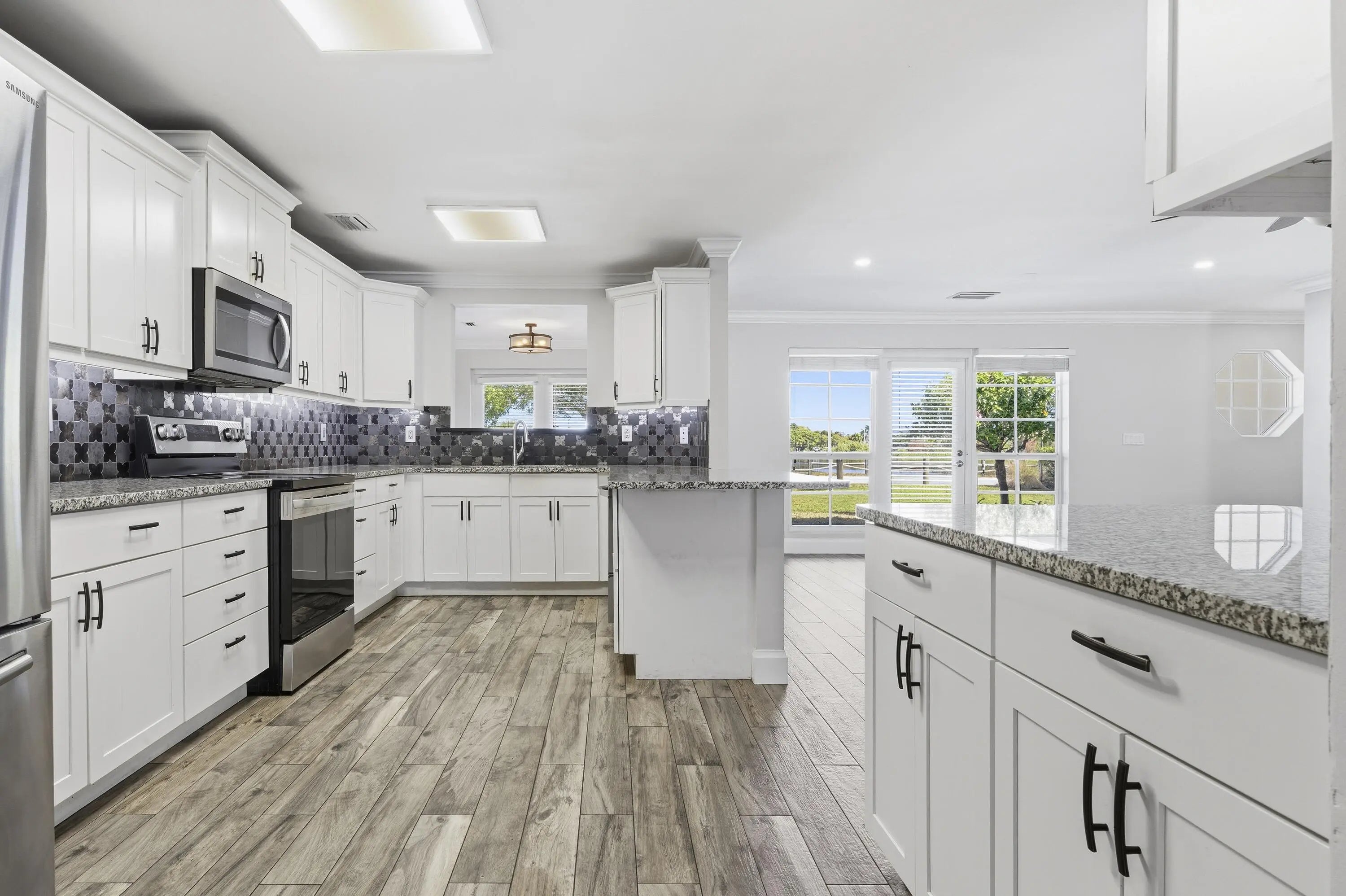 Fabulous direct lake views set the stage for this beautifully updated mid-century modern masterpiece! This spacious 5-bedroom, 4-bath residence offers a versatile layout, including a 4BD/3BA main living area plus a private 1BD/1BA mother-in-law suite with its own entrance—perfect for guests, extended family. Completely renovated down to the studs in 2017, the home features a contemporary open-concept floor plan with new plumbing and electrical. The stunning kitchen is designed for both style and function, showcasing white shaker cabinetry with under-cabinet lighting, granite countertops, and a generous bar counter ideal for entertaining. Situated on an oversized corner lot, the property offers two driveways and ample space for a pool, RV, and boat parking—an exceptional find! Prime location offering the ultimate in convenience and lifestyle! Ideally situated with easy access to I-95, this property is just minutes from premier shopping centers, world-class restaurants, and some of the area's most pristine beaches. Enjoy the perfect blend of accessibility and coastal livingwhether commuting, dining out, or spending the day by the ocean, everything you need is right at your fingertips