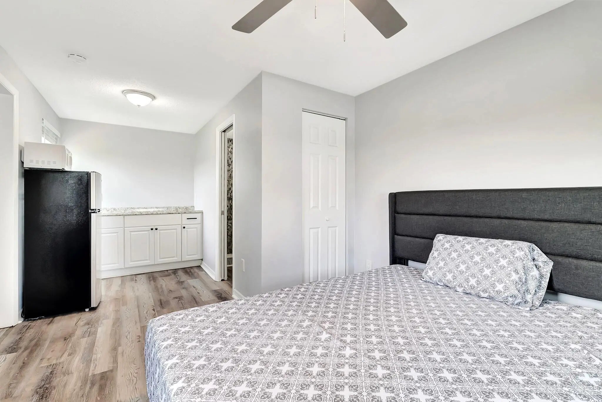 This 3-bed, 3-bath single-family home features an open floor plan, a breakfast bar, luxury laminate flooring, floor-to-ceiling cabinets in the garage, and an efficiency. The bathrooms are equipped with an 8-jet shower panel system. The AC system and windows were installed in 2020, and the roof is 14 years old. NOTE: The efficiency in the back is currently rented for $1,100 per month with a great tenant in place. This property can be purchased with the tenant for immediate rental income or delivered vacant, depending on what best suits your plans.