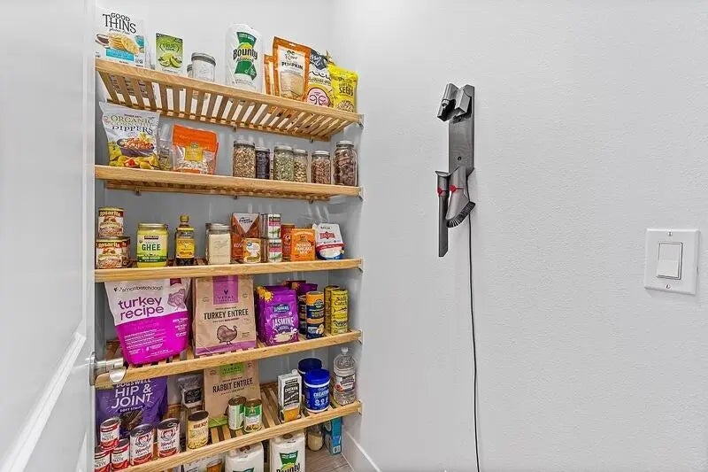 Built-in Features, High Ceilings, Pantry, Walk-In Closet(s), Bedroom Layout - Split, Pull Down Stairs