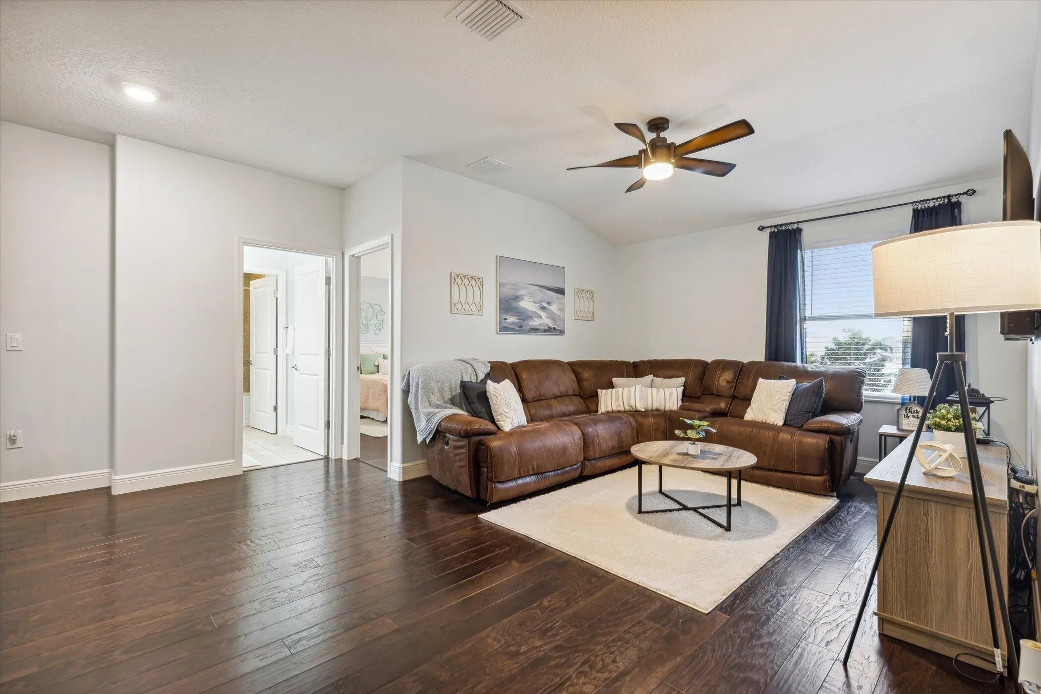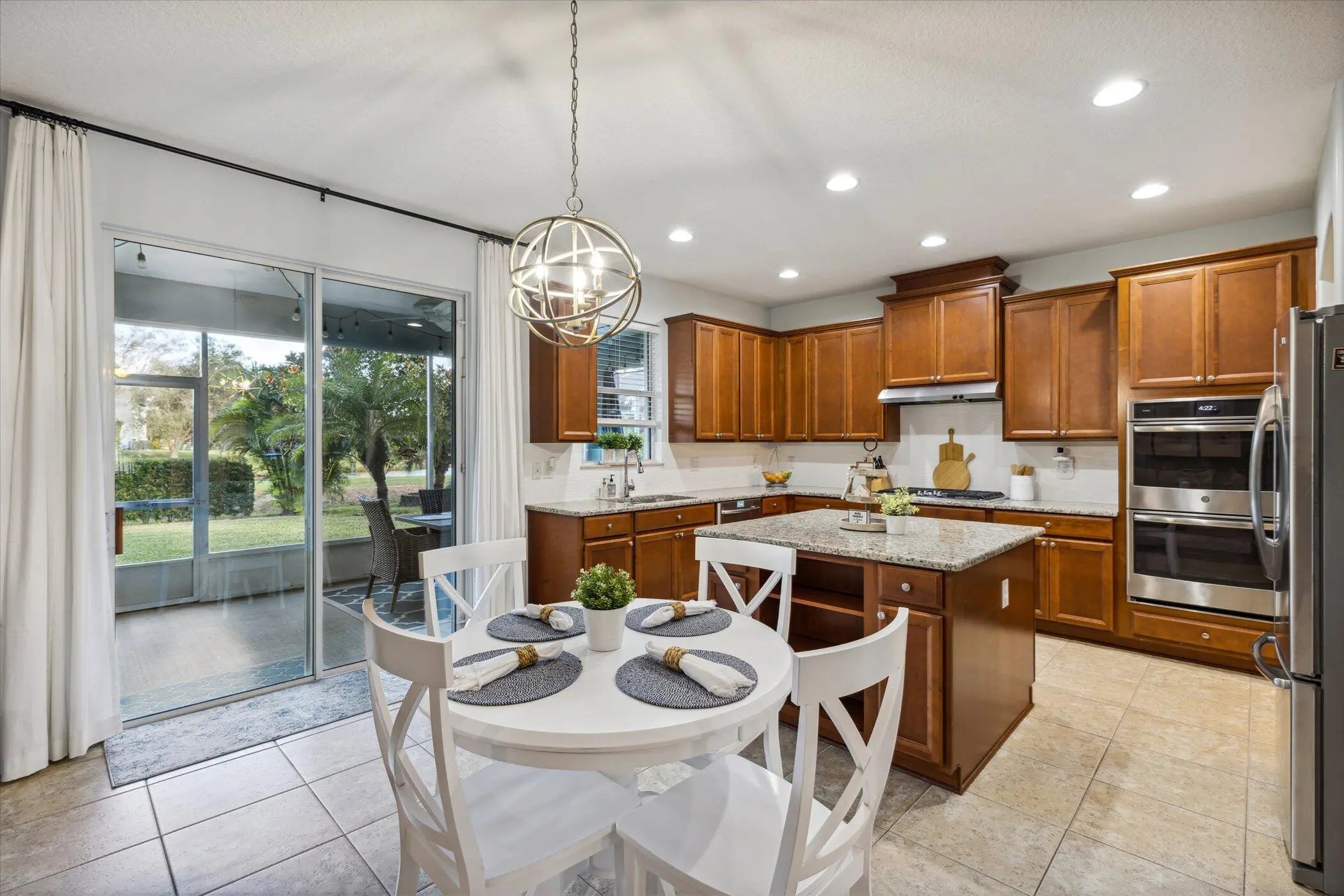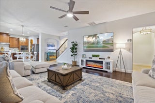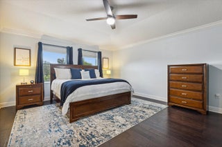 Welcome to luxury living in the gated Sawgrass Key community of Suntree/Viera. This move-in ready 4BR, 5BA home features an open floor plan ideal for entertaining. The gourmet kitchen offers double wall ovens, gas cooktop, 42-inch cabinets, granite counters, and a large walk-in pantry. Hand-scraped hardwood floors and fresh 2023 interior paint add warmth and style. Upstairs boasts a bonus room and a spacious primary suite with soaking tub and dual vanities. Each bedroom has its own bath. Enjoy a 10x40 trussed lanai, no rear neighbors, 40-year metal roof, oversized garage, porte cochere, and maintenance-free HOA. Tenant occupied until May 30, 2026.